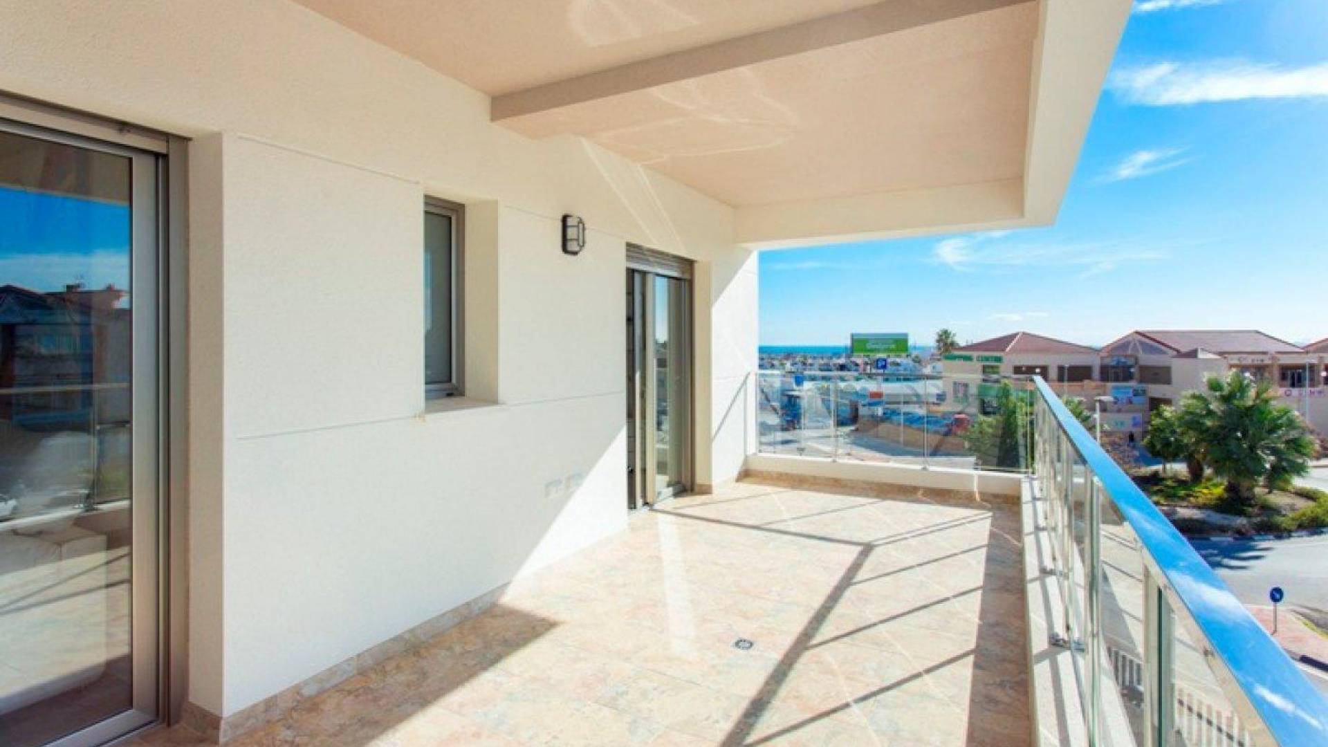 BOLIG MED BASSENG, SAUNA OG GYM Moderne kompleks med 2,3 soverom, 2 bad leiligheter med store terrasser og fantastiske solarier. Boligen er designet for å nyte stranden, solen og stillheten, nær alle tjenester. Designet for å nyte vårt fantastiske middelhavsklima. Du kan slappe av hele året i spa-området med oppvarmet basseng, badstue og treningsstudio. Nyt den spektakulære utsikten over det naturlige og beskyttede grøntområdet fra de store balkongene eller fra den store flytende plattformen som ligger i bassengområdet. For de mer atletiske har komplekset et semi-olympisk basseng. Barn kan kose seg på lekeområdet eller i det strandlignende bassenget. Boligen ligger i et privilegert område, kun 2 kilometer fra La Zenia-stranden, en av de beste strendene på Costa Blanca. I et konsolidert område og med alle tjenester for hånden som supermarkeder, apotek, offentlig transport, banker, med gode forbindelser og kun 500 meter fra inngangen til motorveien AP-7. Kjøpesenteret Zenia Boulevard, et av de største i regionen med mer enn 80 000 kvadratmeter, ligger bare 1 kilometer unna. Tre av de beste 18-hulls golfbanene som Real Club de Golf de Campoamor, Golf Villamartín og Las Ramblas de Campoamor ligger kun 2 kilometer fra komplekset. En underjordisk parkeringsplass er inkludert i prisen.