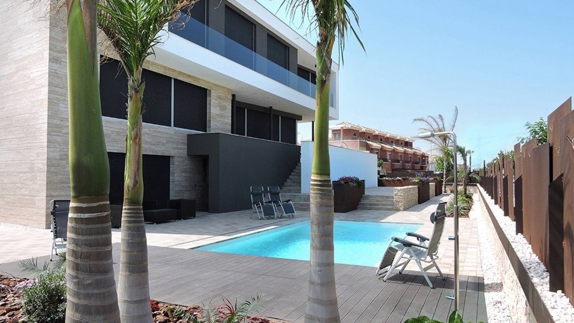 MODERN VILLA PÅ STRANDENS FØRSTE LINJE (LAS HIGUERICAS) Bare 100 meter fra Las Higuericas-stranden, i Torre de la Horadada, på første linje og med panoramautsikt over Middelhavet. Villaen, bygget på en tomt på 874 m2, består av 7 soverom, hvorav 4 med panoramautsikt over Middelhavet, 3 komplette bad, 2 toaletter (toalett og vask), et lite SPA med 2 dusjer, kjøkken fullt utstyrt med hvitevarer, stue med vinkjeller og store vinduer med utsikt over Ytre. Det har også, blant annet, luft med gulvvarme (fan-coil system) condition, heis med fem stopp, sikkerhetsdør med adgangskode, detektorer av innendørs bevegelse med alarm og eksterne sikkerhetskameraer, svømmebasseng med beskyttende og oppvarmet deksel, en liten SPA med to dusjer, forskjellige terrasser på forskjellige nivåer for å oppnå forskjellige miljøer, en stor fullt ferdig hagemekaniserte inngangsporter, stor garasje med egen inngang, vaskerom og maskinrom. Privilegert sted å nyte promenaden, forfriskende bad i sjøen, trene vannsport, seiling, surfing, snorkling ... og 5 minutter fra marinaen i La Torre de la Horadada. 8 km fra den prestisjetunge Lo Romero golfbanen, med lett tilgang til motorveien og 30 minutter fra Murcia flyplass. Den nærmeste byen til området der kampanjen ligger, er Pilar de la Horadada, 1 km fra avstand, en rolig by som har alle slags tjenester, skoler, helsesentre, politi, apotek, etc. Det er også to shoppingområder i nærheten, Dos Mares kjøpesenter, i San Javier, 5 minutter med bil og La Zenia Boulevard, i Orihuela Costa, 15 minutter med bil.