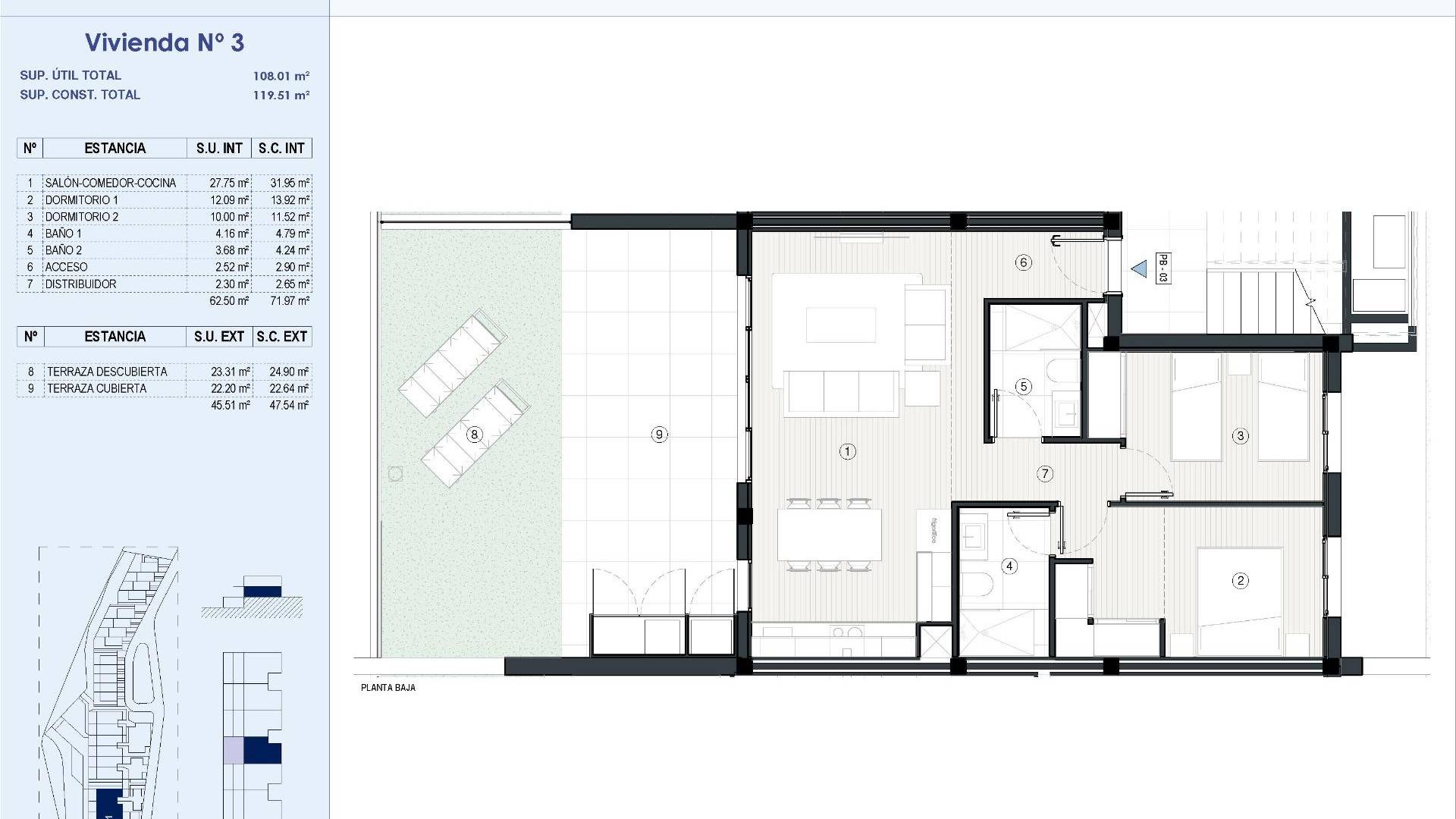 NYBYGG BOLIGKOMPLEKS I FINESTRAT Nybygget boligkompleks med leiligheter, toppleiligheter og rekkehus i Balcon de Finestrat. Vakre leiligheter i første etasje med private hager, leiligheter i mellometasjen med store terrasser og toppleiligheter med privat solarium. Eiendommer med 2 og 3 soverom, 2 bad, åpen kjøkkenløsning med stue, garderober, installasjon av kanalisert klimaanlegg (varm / kald). Boligkomplekset består av felles svømmebasseng for voksne med barnebasseng og solarium, parkeringsplass for sykler, lekeplass for barn flislagt med kontinuerlig sikkerhetsbelegg. Alle eiendommer har privat parkeringsplass med forhåndsinstallasjon for elektrisk lading av kjøretøy. Boligkomplekset ligger perfekt i en naturlig enklave på Costa Blanca og tilbyr fantastisk utsikt over Benidorm skyline, Finestrat-bukten og El Puig Campana. Benidorm ligger bare en fem minutters kjøretur fra eiendommene og tilbyr alle tjenestene du trenger, inkludert butikker, barer, restauranter, supermarkeder, banker, apotek og flere private internasjonale skoler. Nær strendene Levante, Poniente og Cala de Finestrat, med mer enn 6 km lengde som er blant de beste i Europa tildelt av EU med blått flagg. Alle fritidstjenester som temaparkene Aqua Natura, Terra Mítica, Terra Natura, Aqualandia og Mundomar, golfbanene Sierra Cortina og Villaitana, fotturer og klatring i Puig Campana, en enestående natur eller vannsport. Avstand til sjøen 4 km, til flyplassen 26 km og til golf 1 km. Komplekset ligger 40 minutter fra Alicante flyplass.
