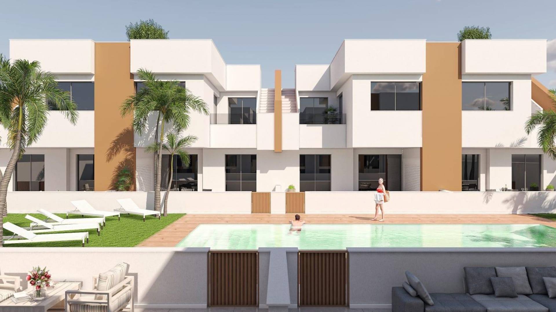NYBYGDE BUNGALOWLEILIGHETER I SAN PEDRO DEL PINATAR Nybygget boligkompleks med moderne bungalowleiligheter i San Pedro Del Pinatar. Bungalowen i første etasje med 2 soverom har en terrasse med privat hage. Bungalowen i toppetasjen med 3 soverom har et stort solarium. Alle bungalowene har parkeringsplass. Leiligheten har et felles hageområde med svømmebasseng. San Pedro del Pinatars privilegerte beliggenhet ved Mar Menor og Middelhavskysten tiltrekker seg de som er interessert i seiling og vannsport, og tilbyr båthavn og seilklubber, mens strendene og de naturlige gjørmebadene tiltrekker seg de som søker trygg sol, sjø og sand. San Pedro del Pinatar har et veletablert lokalsamfunn og tilbyr et utmerket utvalg av aktiviteter, inkludert overbygd svømmebasseng og idrettsanlegg, i tillegg til et helårsprogram med sosiale aktiviteter i det behagelige vinterværet. Fordelene med gjørmebadene, som er typiske for regionen, og det rolige vannet i Mar Menor har bidratt til veksten av Lo Pagán, som i dag har alle slags fasiliteter. I tillegg har det en utmerket beliggenhet, bare 5 minutter fra handelssenteret Dos Mares. Flyplassen i Murcia/Corvera ligger 30 minutter unna, mens flyplassen i Alicante ligger en times kjøring unna.