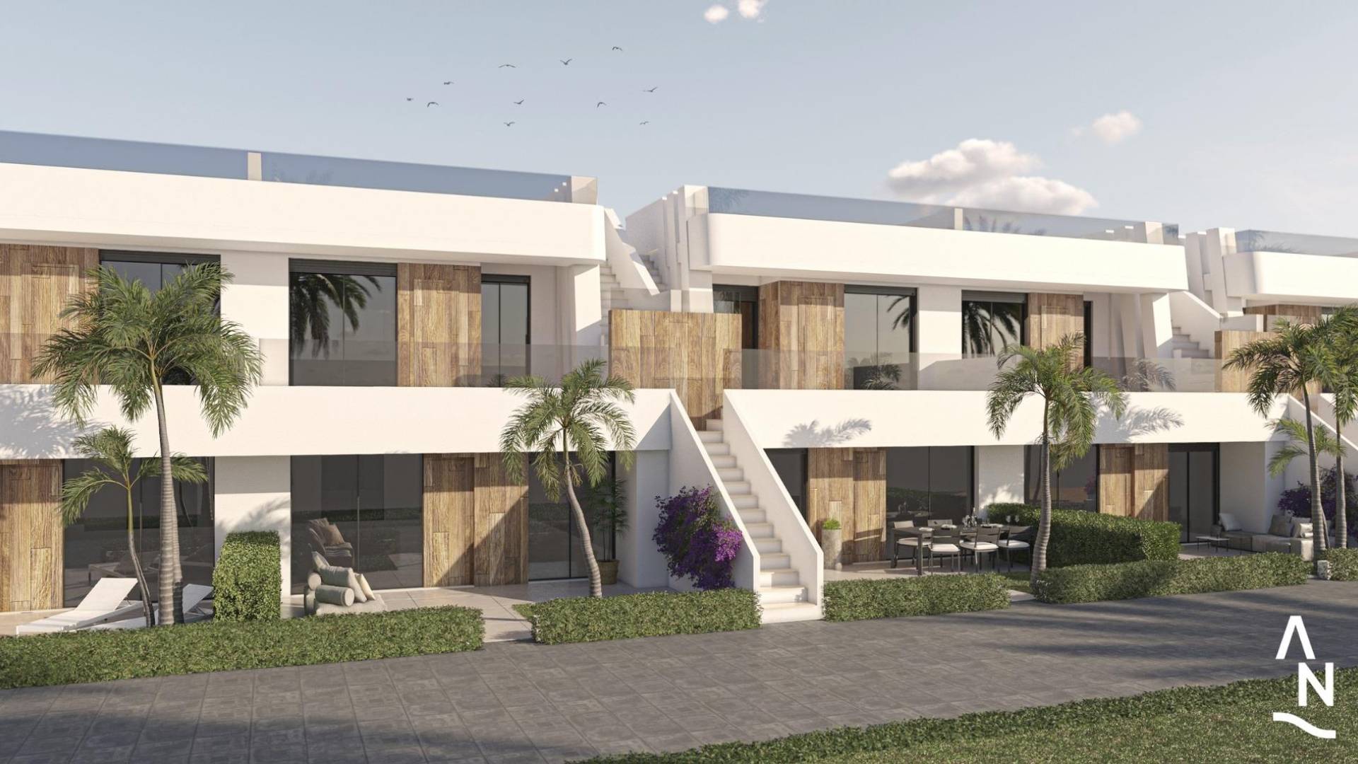 NYBYGG BUNGALOW LEILIGHETER I CONDADO DE ALHAMA GOLFBANE Nybygg eksklusivt kompleks med 18 bungalowleiligheter i Condado de Alhama. Vakre bungalower med 2 eller 3 soverom og 2 bad, designet med tanke på innbyggernes velvære og livskvalitet. Residential tilbyr romslige fellesarealer, inkludert flere felles svømmebassenger, hvorav ett er oppvarmet, hvor du kan nyte øyeblikk av avslapning og moro. I tillegg har komplekset anlagte områder for å spasere og nyte omgivelsene, samt parkeringsområder designet for beboernes bekvemmelighet. Bungalowene i første etasje har 3 soverom og sjenerøse hager, ideelle for å tilbringe tid utendørs og organisere sammenkomster med familie og venner. De øverste etasjene har derimot 2 soverom og et romslig solarium som lar deg få mest mulig ut av sollyset og utsikten over de naturlige omgivelsene. Condado de Alhama Golf Resort er et fantastisk golfanlegg med mange fasiliteter og tjenester. Et kjøpesenter, et sportssenter, en rekke barer og restauranter, supermarkeder og over 25 felles svømmebassenger og hager. Condado de Alhama Golf Resort har sin egen Jack Nicklaus-designede golfbane og ligger bare 15 minutter fra de vakre strendene i Bolnuevo og Mazarron. Mazarron har over 35 km kystlinje, hvorav mye er uberørt kystlinje. Mange strender i Mazarron-bukten har blitt tildelt det blå flagget for sin kvalitet. Condado de Alhama Golf Resort ligger bare 20 minutter fra den nye internasjonale flyplassen Corvera.