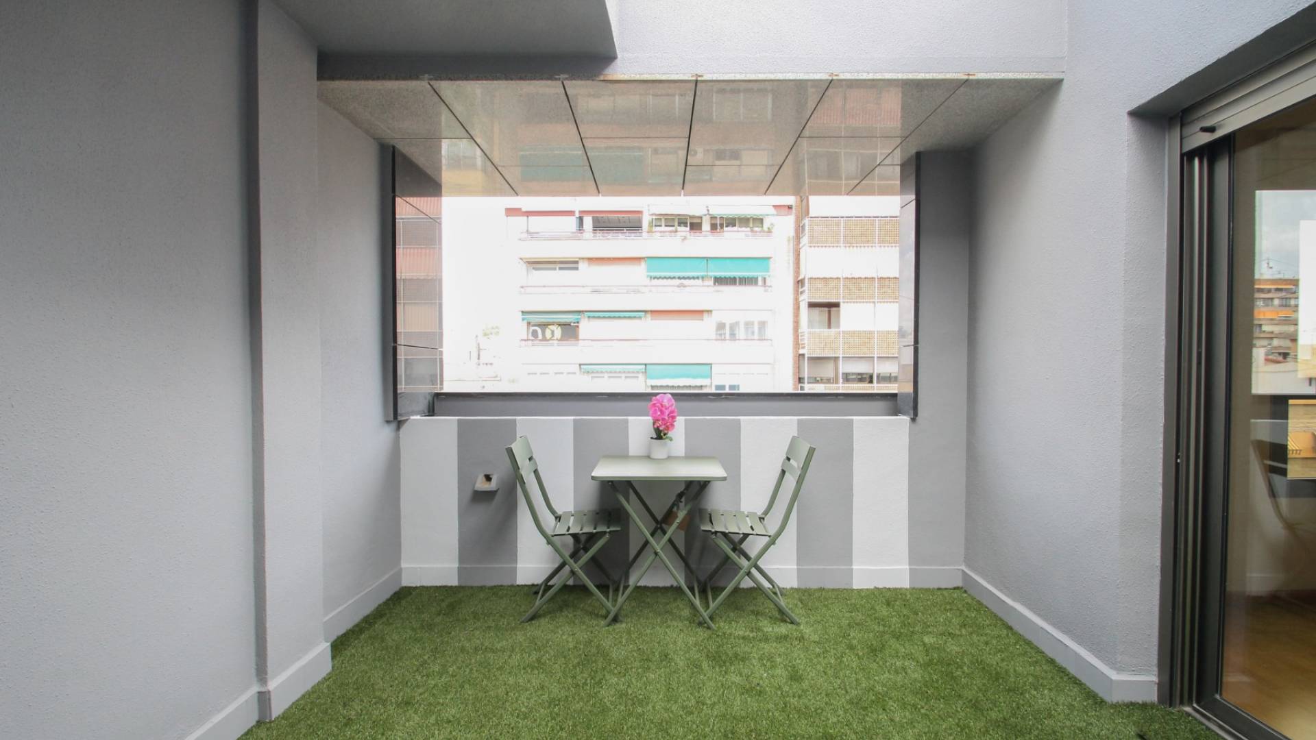 Privat takterrasse, mye større, ideell som solarium, chill‑out‑område, uteservering eller urban hage med utsikt over Alicante sentrum.
