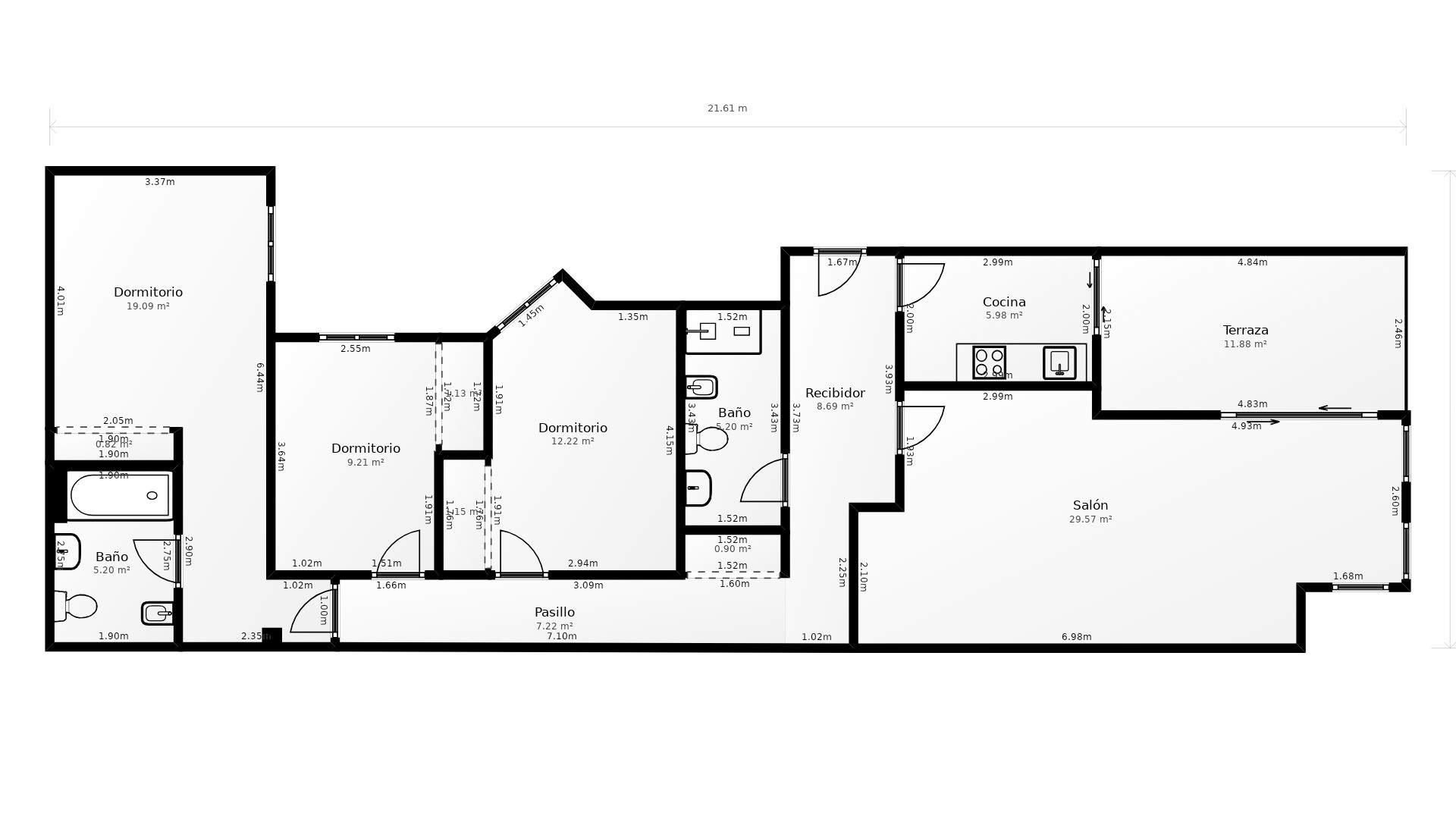Toppleilighet til leie med terrasse og privat takterrasse i Alfonso el Sabio, Alicante sentrum
