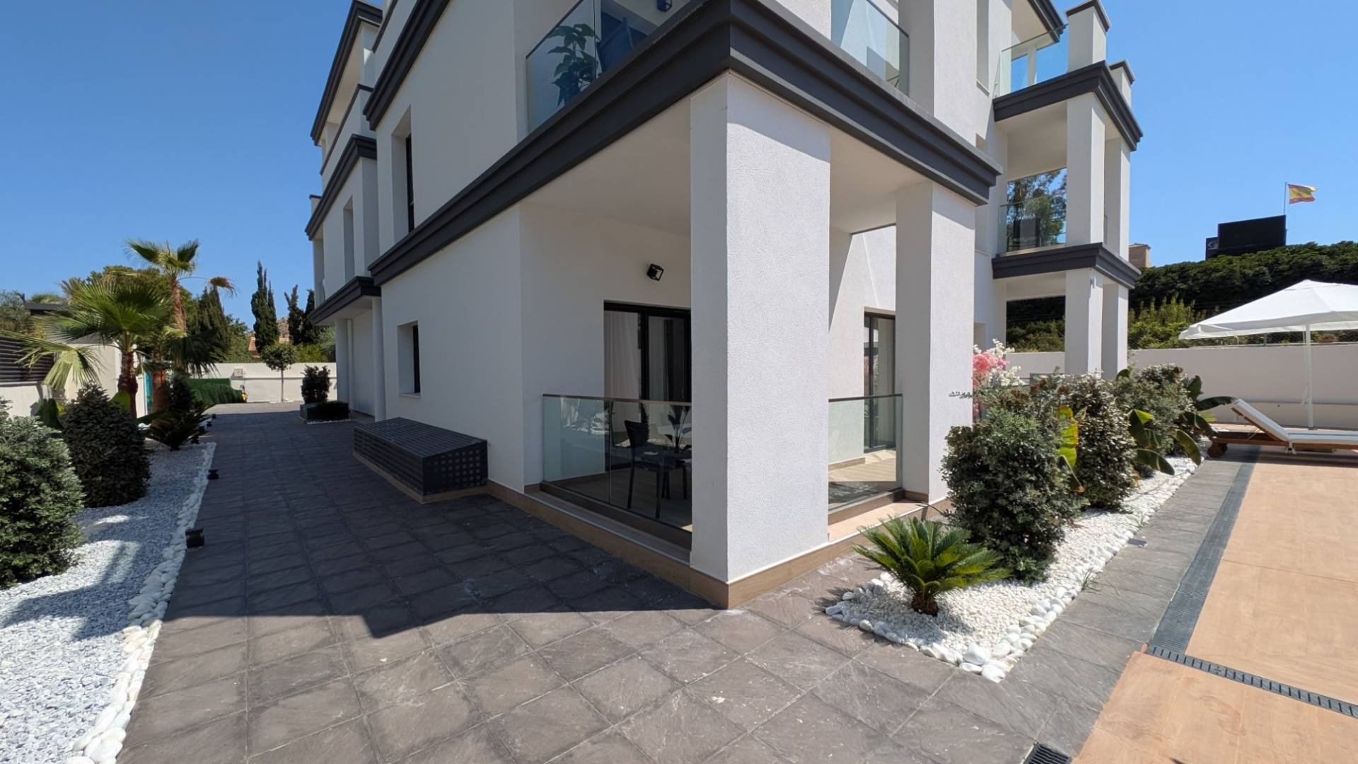 Private terrasser i alle enheter, fullstendig møblert og utstyrt med moderne finish og energieffektive klimaanlegg.