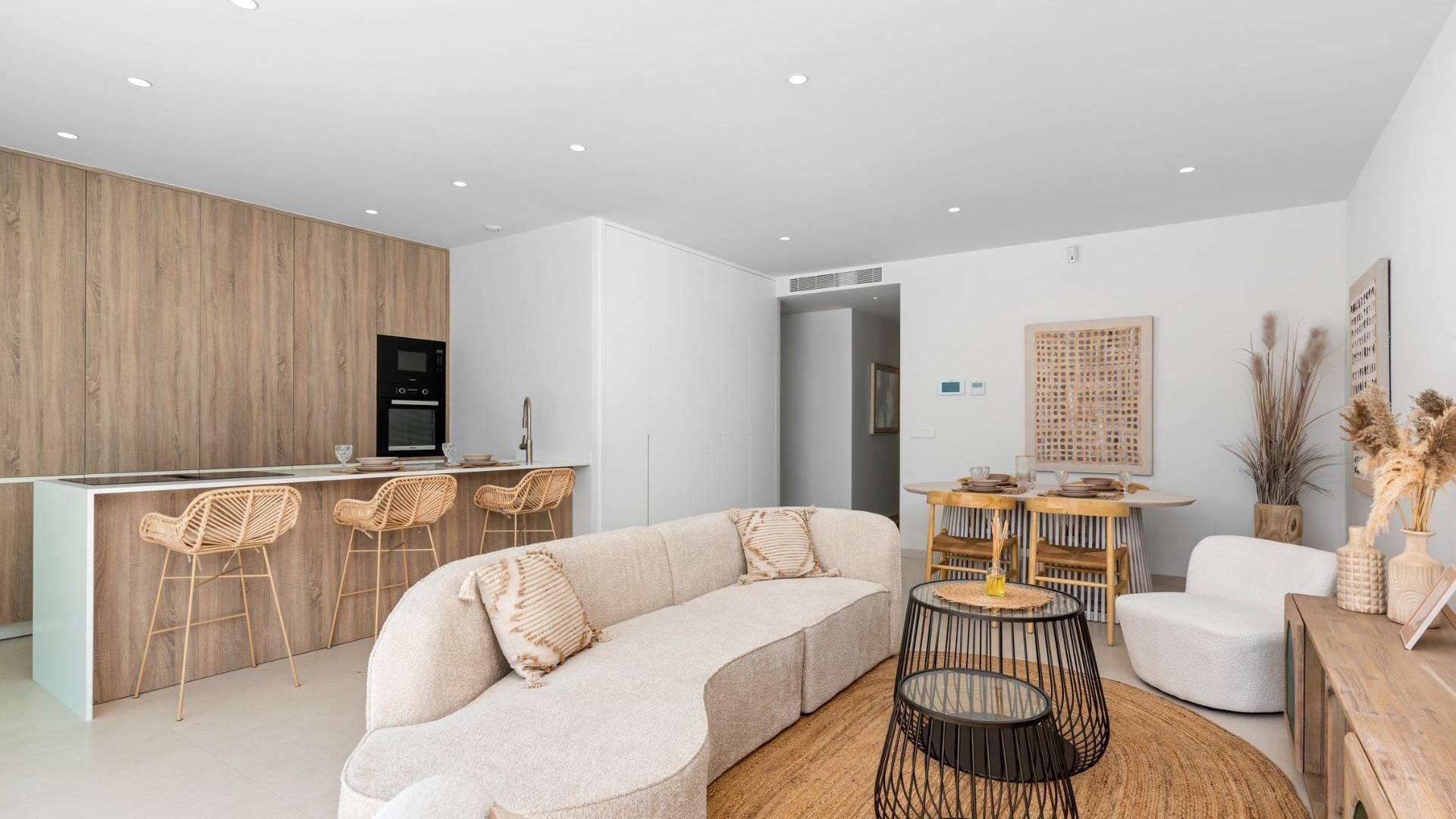 Nybyggede villaer nær Serena Golf i Los Alcazares Moderne villaer i en førsteklasses beliggenhet ved kysten og golfbanen Dette eksklusive nybyggprosjektet tilbyr moderne villaer i Los Alcazares, like ved den prestisjetunge Serena Golf og bare 1,2 km fra sandstrendene ved Mar Menor. Disse boligene ligger i et av de mest attraktive områdene i Murcia-regionen og kombinerer moderne design, komfort og en utmerket beliggenhet nær sjøen, golfbanen og alle daglige tjenester. Los Alcazares er en veletablert kystby kjent for sin avslappede livsstil, lange promenade, vannsport og milde klima gjennom hele året. Enetasjes design med private uteområder Utbyggingen består av stilige villaer med 3 soverom og 2 bad, tilgjengelig i to forskjellige størrelser på henholdsvis ca. 106 kvm og 130 kvm. Den største modellen har også et ekstra gjestetoalett. Alle villaene er designet i én etasje, noe som gir praktisk og komfortabel boform. Det åpne kjøkkenet, spisestuen og stuen har direkte tilgang til en terrasse og privat hage med svømmebasseng, noe som skaper et ideelt rom for innendørs og utendørs opphold. Hver eiendom har også et privat solarium og parkering på tomten. Høy kvalitet og moderne utstyr Disse villaene er bygget med materialer av høy kvalitet og utstyrt med moderne funksjoner. De fullt utstyrte kjøkkenene er tilgjengelige i hvit høyglans eller trefinish og inkluderer benkeplater i kvarts, vask i rustfritt stål, induksjonstopp med integrert avtrekk, stekeovn, mikrobølgeovn, vaskemaskin, integrert kjøleskap og oppvaskmaskin. Badene er utstyrt med møbler, speil, belysning og elektriske håndklestørkere. Ytterligere funksjoner inkluderer elektriske persienner i soverommene, LED-belysning i hele eiendommen og et komplett kanalisert klimaanlegg fra Fujitsu. Privat basseng og energieffektiv komfort Hver villa har et privat svømmebasseng med blå keramiske fliser, integrerte trappetrinn og hvit LED-belysning. Bassenget er forberedt for installasjon av varmepumpe. Kombinasjonen av effektiv klimakontroll, moderne konstruksjon og gjennomtenkt design sikrer komfort hele året. Utmerket tilknytning og viktige avstander Villaene ligger i gangavstand fra sentrum av Los Alcazares og svært nær Serena Golf. Stranden ligger omtrent 1,2 km unna. Byen Cartagena ligger rundt 20 km unna og tilbyr et rikt kulturelt og gastronomisk miljø. Murcia Corvera internasjonale lufthavn ligger omtrent 22 km unna, og Alicante lufthavn ligger omtrent 90 km unna. Flere golfbaner og marinaer ligger også i nærheten, noe som gjør dette stedet ideelt både for permanent opphold og ferier. Ditt ideelle hjem ved sjøen og golfbanen Hvis du er på utkikk etter en moderne nybygget villa nær stranden og golfbanen i Los Alcazares, kan du kontakte oss i dag for mer informasjon eller for å avtale en privat visning.