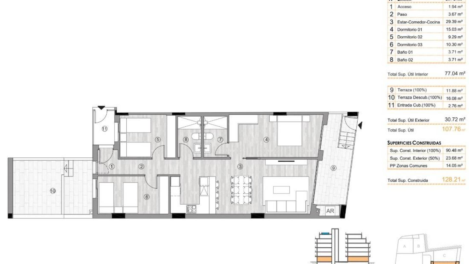 Nybyggede leiligheter i hjertet av Torrevieja Bare 400 m fra Playa del Cura Førsteklasses beliggenhet i sentrum av Torrevieja Dette nye boligbygget har en uovertruffen beliggenhet i sentrum av Torrevieja, bare 400 m fra Playa del Cura. Omgitt av butikker, supermarkeder, restauranter og daglige tjenester, tilbyr det alt du trenger innen gangavstand. Området gir også tilgang til parker, fritidssoner og grønne områder, og skaper en perfekt balanse mellom urbane bekvemmeligheter og øyeblikk av avslapning. Moderne boliger med 2 og 3 soverom Prosjektet tilbyr et utvalg av leiligheter med 2 og 3 soverom, inkludert penthouse-leiligheter, noen av dem med private solterrasser. Hver bolig er designet i moderne stil, med åpen planløsning, store terrasser og integrerte kjøkken i amerikansk stil. Badene er fullt utstyrt med møbler, dusjvegger og gulvvarme. Kjøkkenene inkluderer hvitevarer, og hver leilighet har forhåndsinstallert kanalisert klimaanlegg. Valgfri underjordisk parkering og bod er tilgjengelig. Fasiliteter i resort-stil for velvære Beboerne kan nyte en rekke eksklusive fasiliteter. Første etasje har et fullt utstyrt treningsstudio, ideelt for daglige treningsøkter. Solariet på taket er en ekte oase for avslapning med solsenger, finsk sauna og et minibasseng. Både heisen og trappen går direkte til taket for maksimal bekvemmelighet og tilgjengelighet. Bo i et unikt natur- og kystmiljø Torrevieja er kjent for sitt varme middelhavsklima, med en gjennomsnittlig årstemperatur på 20 ºC, noe som gjør det til et perfekt sted å bo hele året. Byen er kjent for sine naturlige saltlaguner og den beskyttede naturparken La Mata og Torrevieja, som ligger bare 4 km fra boligkomplekset. De rosa og grønne innsjøene, de naturskjønne turstiene og den rike biologiske mangfoldigheten tilbyr en sunn og inspirerende livsstil. Avstander til viktige severdigheter Playa del Cura 0,4 km Torrevieja Marina 1 km La Mata naturpark 4 km Villamartin Golf 8 km Alicante lufthavn 45 km Murcia lufthavn 60 km Opplev middelhavslivsstilen Ikke gå glipp av muligheten til å eie et moderne hjem i en av Costa Blancas mest attraktive kystbyer. Kontakt oss i dag for å avtale et besøk og sikre deg en plass i dette eksepsjonelle nye boligprosjektet.