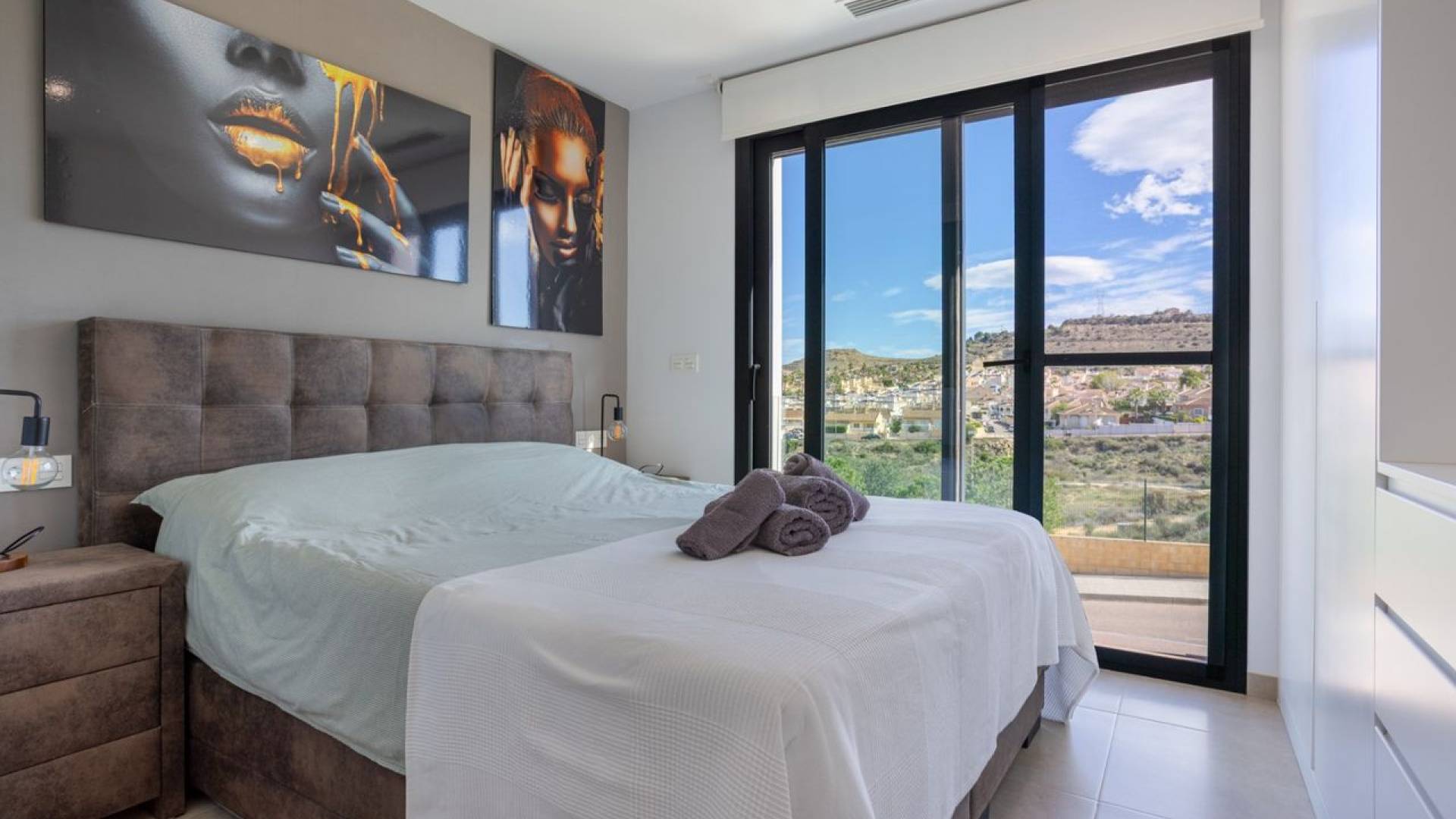 Rekkehus med 3 soverom og 3 bad i Benijofar, Alicante.Oppdag dette elegante rekkehuset i Benijofar, Alicante, som tilbyr tre soverom og tre bad i en førsteklasses beliggenhet på den sørlige Costa Blanca. Denne stilige eiendommen ble bygget i 2018 og drar nytte av sin beliggenhet rett overfor en beskyttet park, noe som sikrer uhindret utsikt, privatliv og ro, uten fremtidig utvikling planlagt i området. Boligen ligger i gangavstand fra sentrum, med en rekke restauranter, butikker og daglige fasiliteter.Innvendig har eiendommen en lys, åpen stue og spisestue som er sømløst forbundet med et moderne, fullt utstyrt kjøkken. Store vinduer oversvømmer rommet med naturlig lys og fører til en terrasse og et privat oppvarmet svømmebasseng med varmepumpe, perfekt for avslapning eller underholdning. De tre soverommene med eget bad har allsidige rom: ett fungerer som garderobe, et annet som kontor, med enkelt potensial for å gjøres om til fullverdige soverom, noe som gir fleksibilitet for familier eller gjester.Utendørslivet forbedres av et romslig takterrasse med panoramautsikt, samt en terrasse, balkong og en privat hage rundt det oppvarmede bassenget. Boligen har energieffektive oppgraderinger som solcellepaneler og ladepunkt for elbiler, som blander komfort med bærekraft. Denne eiendommen selges fullt møblert og innflyttingsklar, og kombinerer moderne bekvemmeligheter med naturskjønn fjellutsikt, noe som gjør den til et ideelt hjem for de som søker en stilig, nøkkelferdig bolig på et ettertraktet sted.Soverom: 3Bad: 3Byggestørrelse: 127 m2Tomt: 197 m2Orientering: ØstByggeår: 2018Nøkkelferdig eiendomKlimaanleggFullt møblertPrivat oppvarmet bassengSolcellepanelerFjellutsiktBalkongHageIntercomTerrasseBodrom