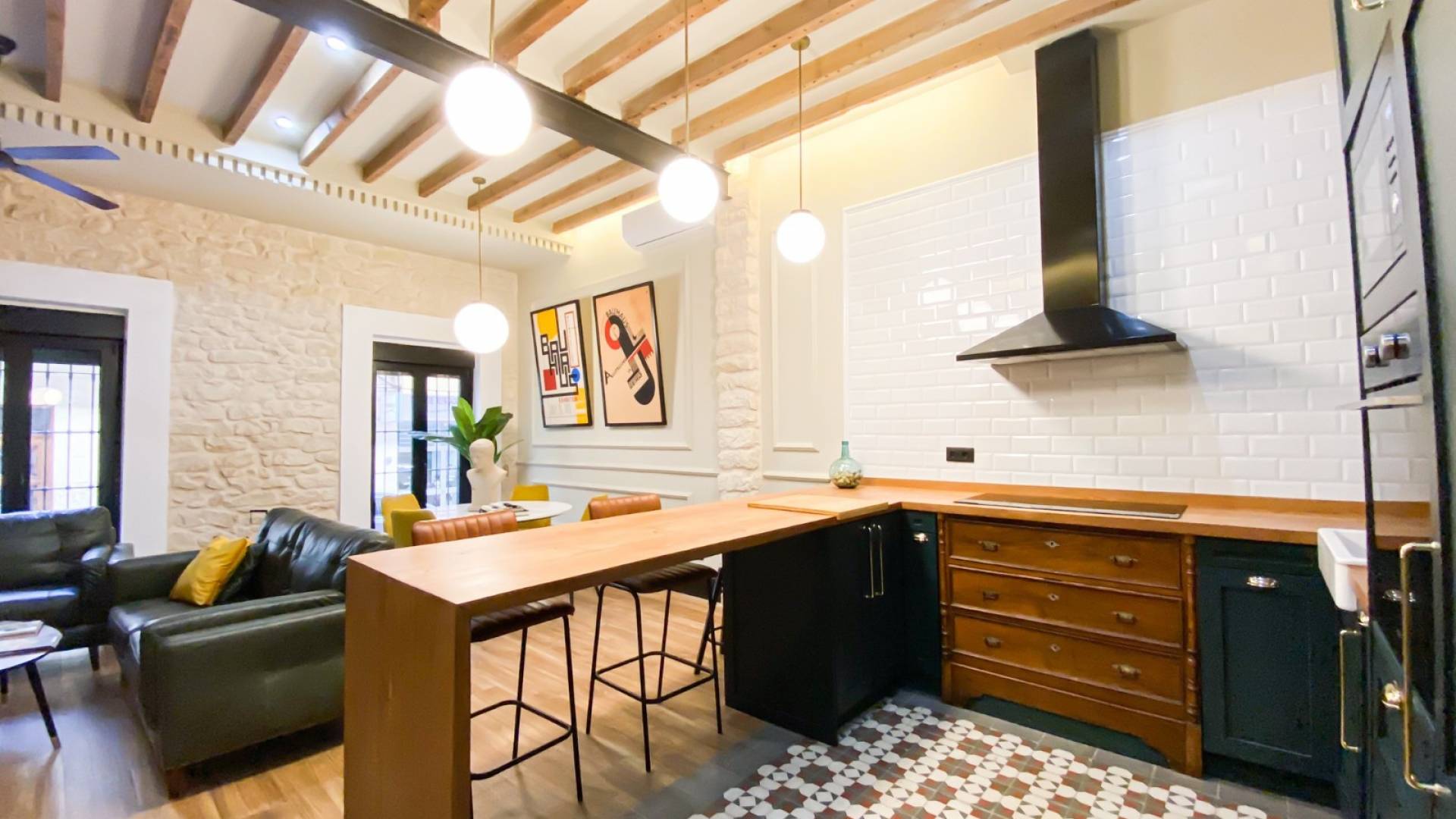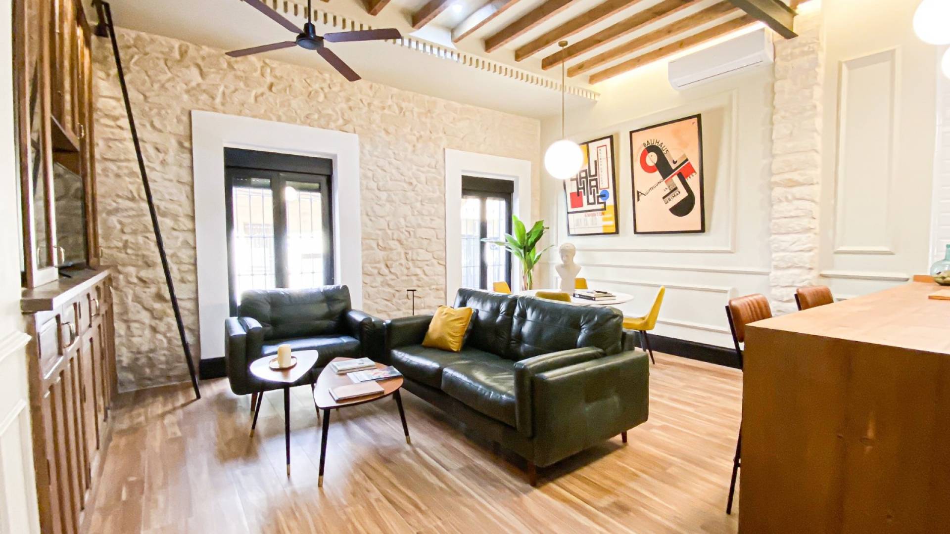 Huset ligger kun 5 minutters gange fra mathallen (Mercado Central de Alicante) hvor du finner kjøtt, fisk, frukt, lokale viner og grønnsaker av høy kvalitet. Du kan også gå ned til den berømte Postiguet-stranden og den travle handlegaten Maisonave på ti minutter. Denne leiligheten har 2 soverom, 2 bad, kjøkken med direkte utgang til stuen og stor uteplass med god plass til diverse utemøbler.