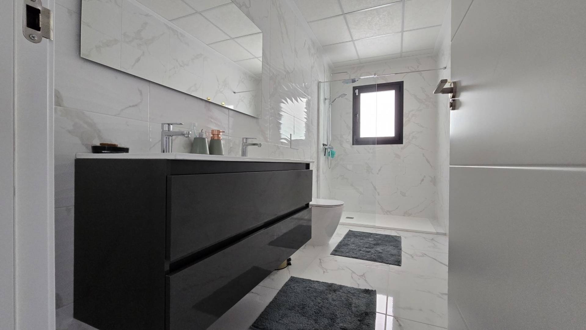 Ser du etter et nybygd, innflytningsklart hjem på Costa Blanca&8364; Denne moderne hjørnevillaen i ett plan, ferdigstilt i 2022, ligger i det populære boligområdet La Herrada i Los Montesinos, og tilbyr luksus, komfort og energieffektivitet. Bare 10 minutter fra strendene i Guardamar og Torrevieja.Som en del av et prestisjefylt boligprosjekt, bygget av en anerkjent utbygger med over 40 års erfaring, har denne villaen 3 soverom, 2 bad, en solrik terrasse og et privat basseng. Takket være hjørnetomten vil du nyte ekstra naturlig lys, mer privatliv og en mer romslig hageplan.Høykvalitets finish og gjennomtenkt designDette huset ble bygget i henhold til de nyeste byggestandardene og inkluderer:* Armert betongkonstruksjon* Dobbeltisolerte yttervegger med luftspalte* Mørke aluminiumsvinduer med doble glass og solskjermer* Elektriske rulleskodder på soverommene, innebygde gulv-til-tak-garderober med treverk innvendig* Gulvvarme på badene med digital termostat* Fullt integrert klimaanleggKjøkkenet har en Silestone-benkeplate, en integrert undermontert vask og en innebygd vinkjøler. Badene er utstyrt med elegante hvite armaturer, dusjkabinett med glassvegg og varmekabler for ekstra komfort.Nyt middelhavslivsstilen på din sørvendte terrasse, i det private bassenget, med uhindret utsikt over omgivelsene. Den lettstelte hagen har kunstgress og er fullstendig inngjerdet for maksimal privatliv.Beliggenheten er uslåelig:* Bare 4 minutters gange til supermarked, restauranter og apotek* 10 km fra strendene i Guardamar og Torrevieja* 6 km fra La Marquesa golfbane* 40 km fra Alicante internasjonale lufthavnLos Montesinos er omgitt av naturreservater, saltsjøer og sykkelstier, ideelt for de som elsker fotturer, fugletitting og en fredelig friluftslivsstil.