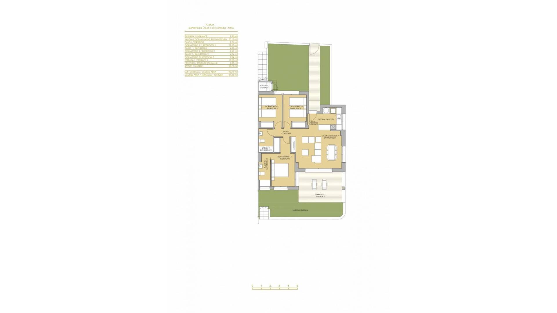 NYBYGG BOLIG AV BUNGALOW LEILIGHETER I VISTABELLA Nybygget boligkompleks på bungalowleiligheter i Vistabella nær golfbanen. Komplekset med fellesfasiliteter og svømmebasseng består av bungalower med 2 og 3 soverom, i første etasje med privat hage og toppetasje med privat solarium, åpen kjøkkenløsning med stue, innebygde garderober, terrasse. Hver leilighet har privat parkering. Tilvalgsbod mot ekstra kostnad. På Vistabella Golf er det plass til alle. Banen er laget slik at hver spiller kan nyte den fra start til slutt. Dens bølgende gater, strategiske bunkere eller innsjøer er noen av funksjonene som gjør den til en av de mest attraktive designene i området, hvor hvert slag er en utfordring og en nytelse for sansene. De 18 hullene i Vistabella Golf, par 72 og mer enn 6000 meter i lengde er designet etter retningslinjene til de moderne feltene med 4 tees med stor amplitude i hvert hull, brede fairways og hevet bunkers. Vistabella Golf klubbhus og restaurant og lokale barer og butikker ligger innen 5 minutters gange. Den travle byen San Miguel de Salinas og Los Montesinos ligger 5 minutters kjøring unna, og de vakre strendene med blått flagg ved Guardamar ligger bare 15 minutters kjøring unna. Alicante flyplass ligger 35 minutter unna, og den nye Corvera Murcia flyplass ligger 45 minutter unna.