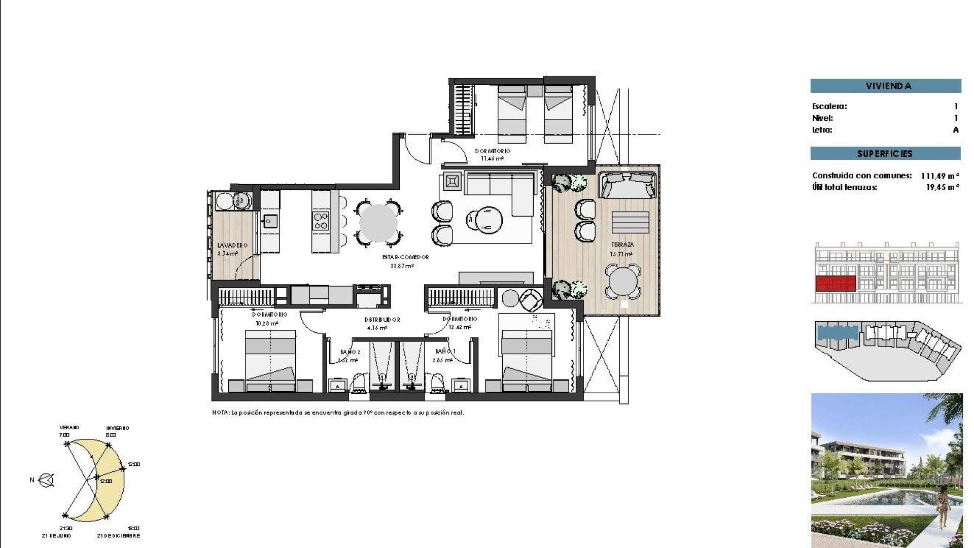 RYNEK PIERWOTNY KOMPLEKS MIESZKALNY W PRYWATNYM ZAMKNIĘTYM KURORCIE W PROWINCJI MURCJA Rynek Pierwotny kompleks mieszkalny składa się z 42 luksusowych apartamentów i penthouse'ów z 2 i 3 sypialniami, 2 łazienkami, kuchnią na otwartym planie z przestronnym salonem, wbudowanymi szafami i tarasami. Apartamenty na parterze mają prywatny ogród, apartamenty na środkowych piętrach taras, a penthousy duży prywatny taras. Ta ekskluzywna inwestycja ma zagospodarowany teren wspólny, który szczyci się wspaniałym współczesnym basenem, klubem towarzyskim i terenami zielonymi. Wszystkie apartamenty posiadają podziemny parking i komórkę lokatorską. Znajduje się w prywatnym ośrodku zamkniętym, z głównym wejściem i całodobową ochroną. Ośrodek został zaprojektowany wokół imponującego terenu zielonego o powierzchni 126 000 m2. Obejmuje ścieżki spacerowe i rowerowe, obiekty sportowe, korty do padla i korty tenisowe, pole do minigolfa, ogrody, parki dla psów, tereny rekreacyjne, klub.... Również w centralnej części znajduje się klejnot kurortu, krystalicznie czyste sztuczne jezioro o powierzchni prawie 17 000 m2, otoczone białymi piaszczystymi plażami i palmami, przynosząc kawałek Karaibów do regionu Murcji. Na jeziorze znajdują się 2 wyspy, z których jedna ma własny bar, a także "plażowe Chiringuitos" rozmieszczone wokół jeziora. Ośrodek jest strategicznie położony niecałe 4 km od plaży i miasta Los Alcázares, gdzie można uprawiać różne sporty wodne, w otoczeniu kilku pól golfowych i miasta Cartagena niecałe 15 minut jazdy samochodem i 22 km od lotniska w Murcji, dzięki czemu w zasięgu ręki znajduje się szeroka oferta kulturalna, gastronomiczna i sportowa.