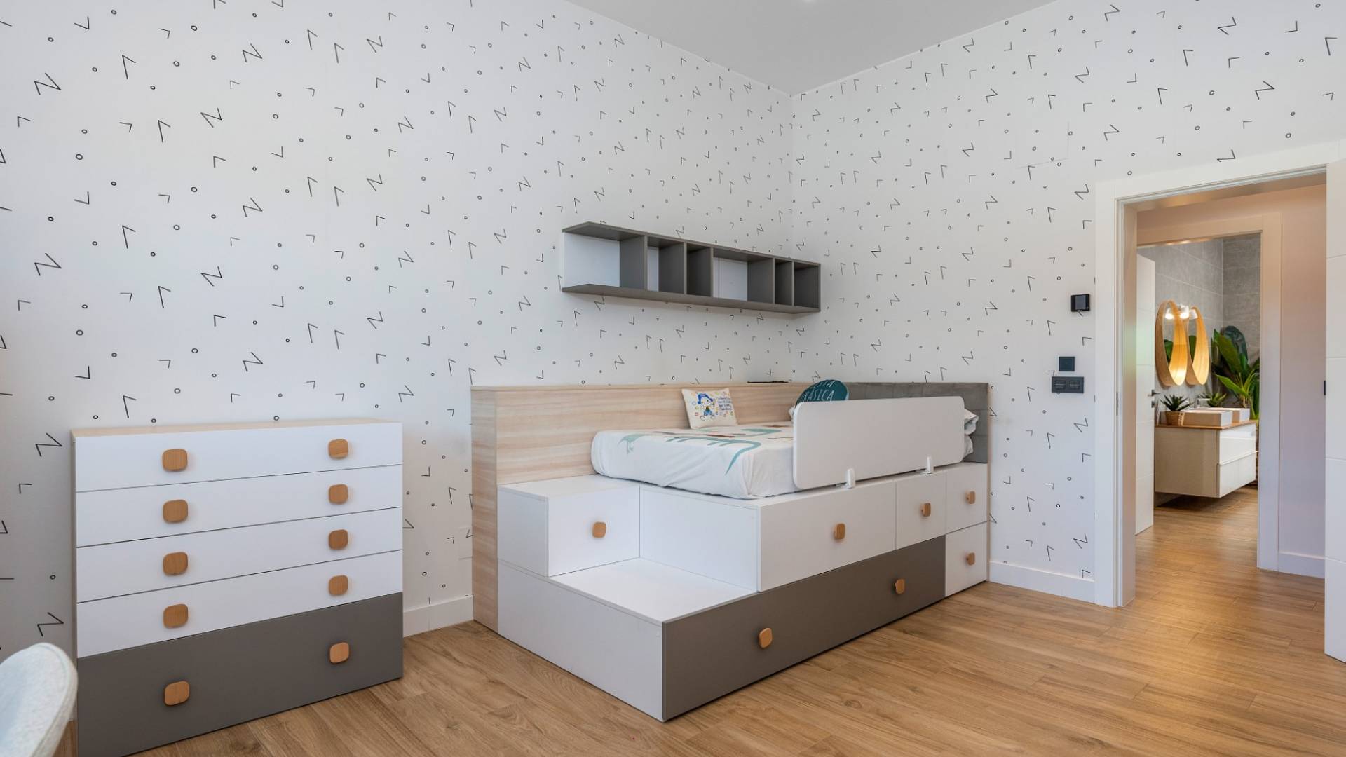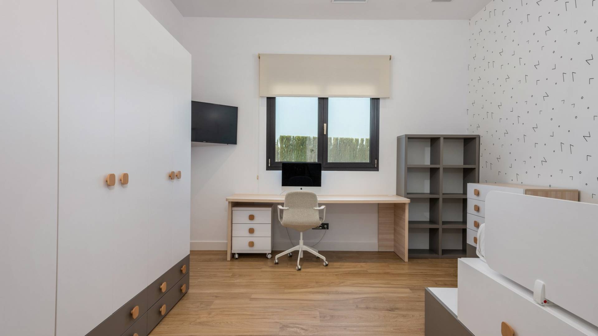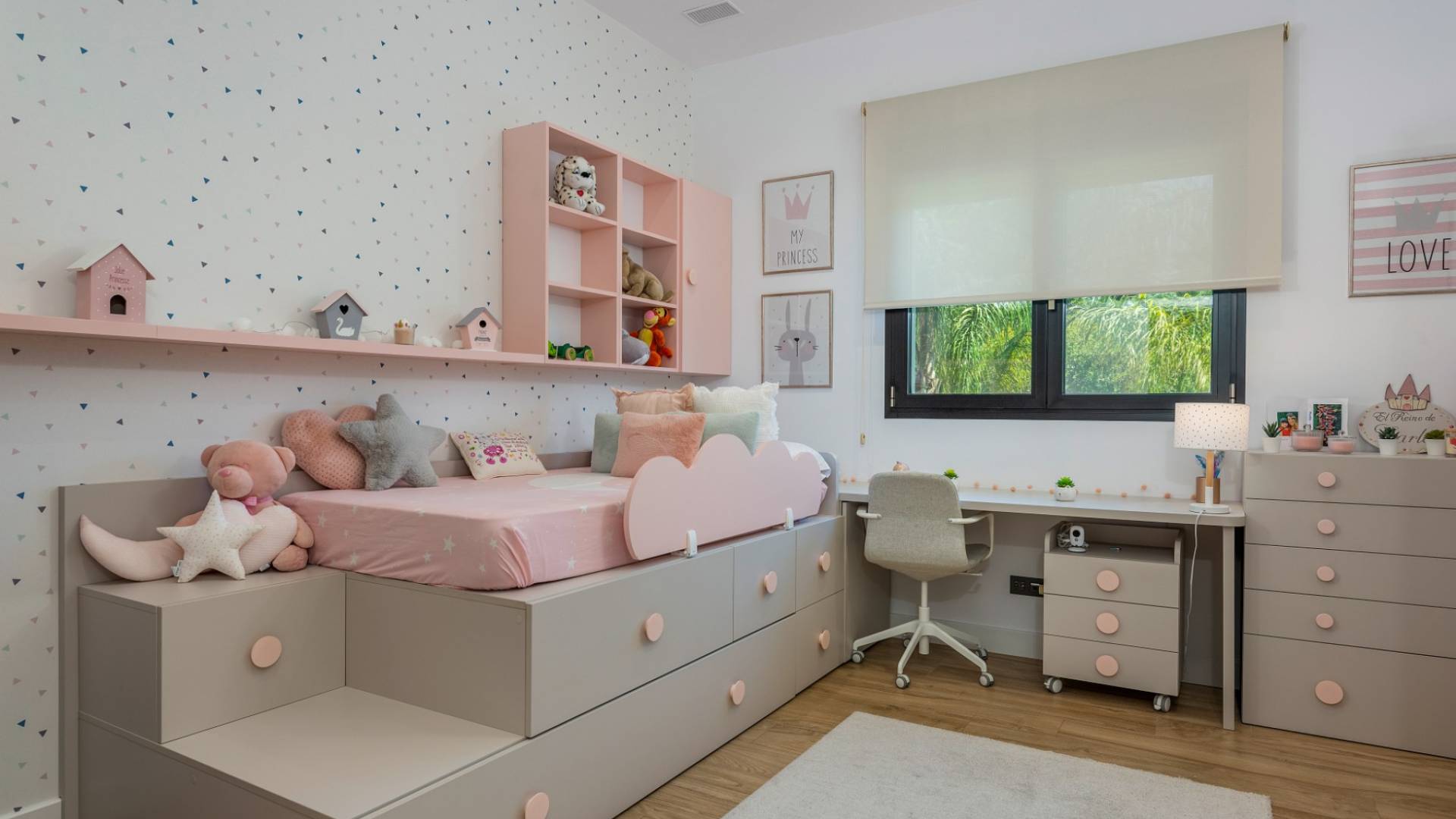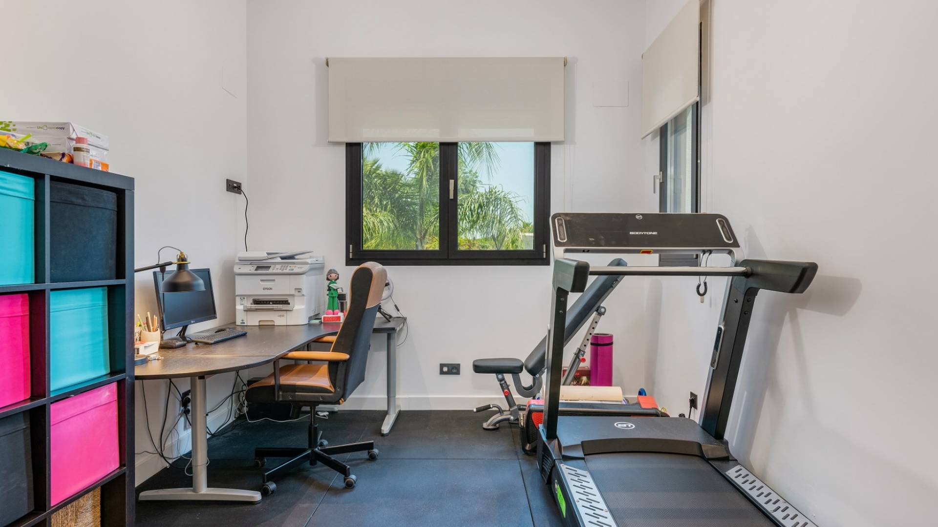 Willa posiada 5 przestronnych sypialni, w tym gabinet, siłownię i pokój zabaw dla dzieci. Główne sypialnie z garderobami i widokiem na ogród i basen.