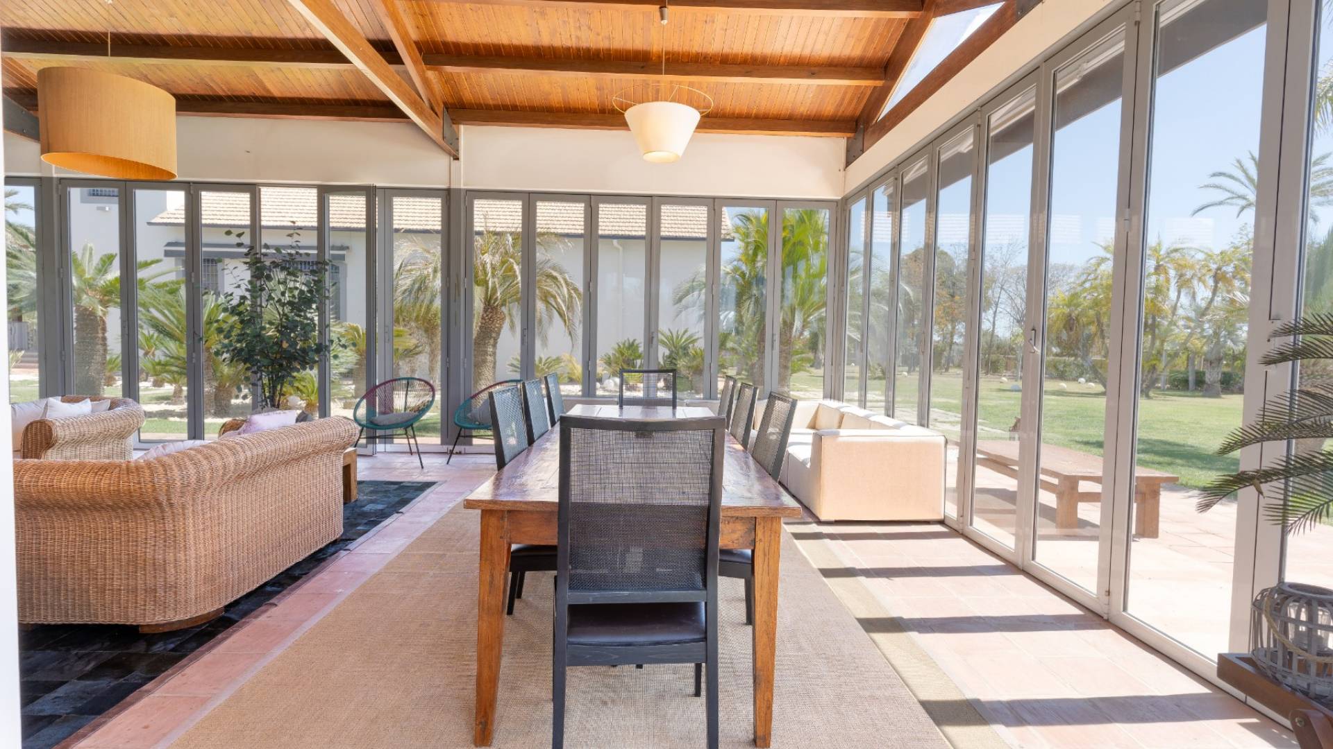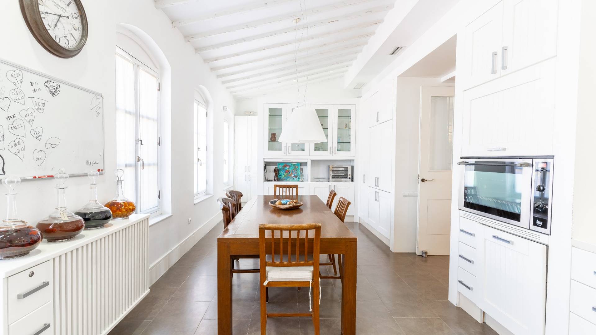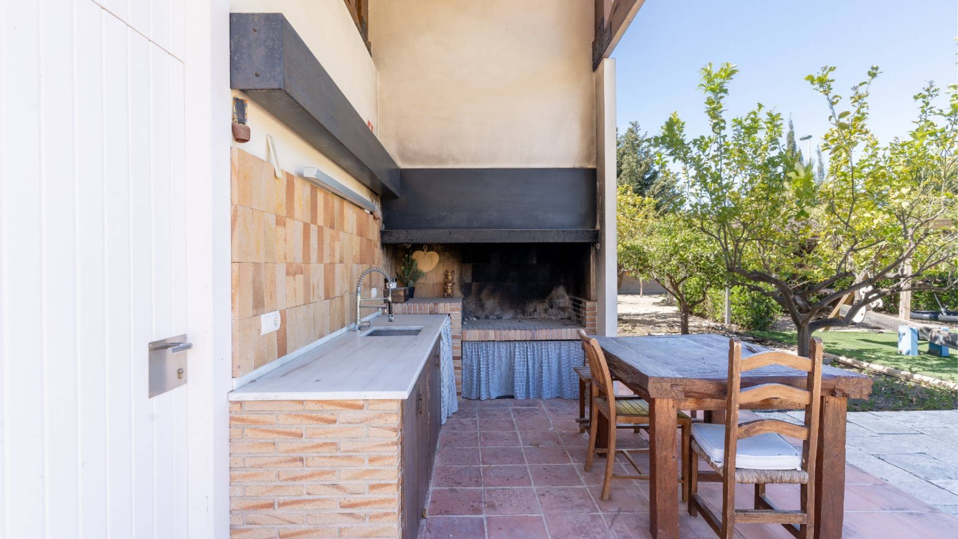 Główny dom: 7 sypialni z łazienkami, przestronny salon, nowoczesna kuchnia, pralnia oraz piwnica z wysokimi sufitami (ponad 4 metry). Wszystkie pomieszczenia wyposażone w klimatyzację Air Zone i ogrzewanie olejowe dla maksymalnego komfortu przez cały rok.