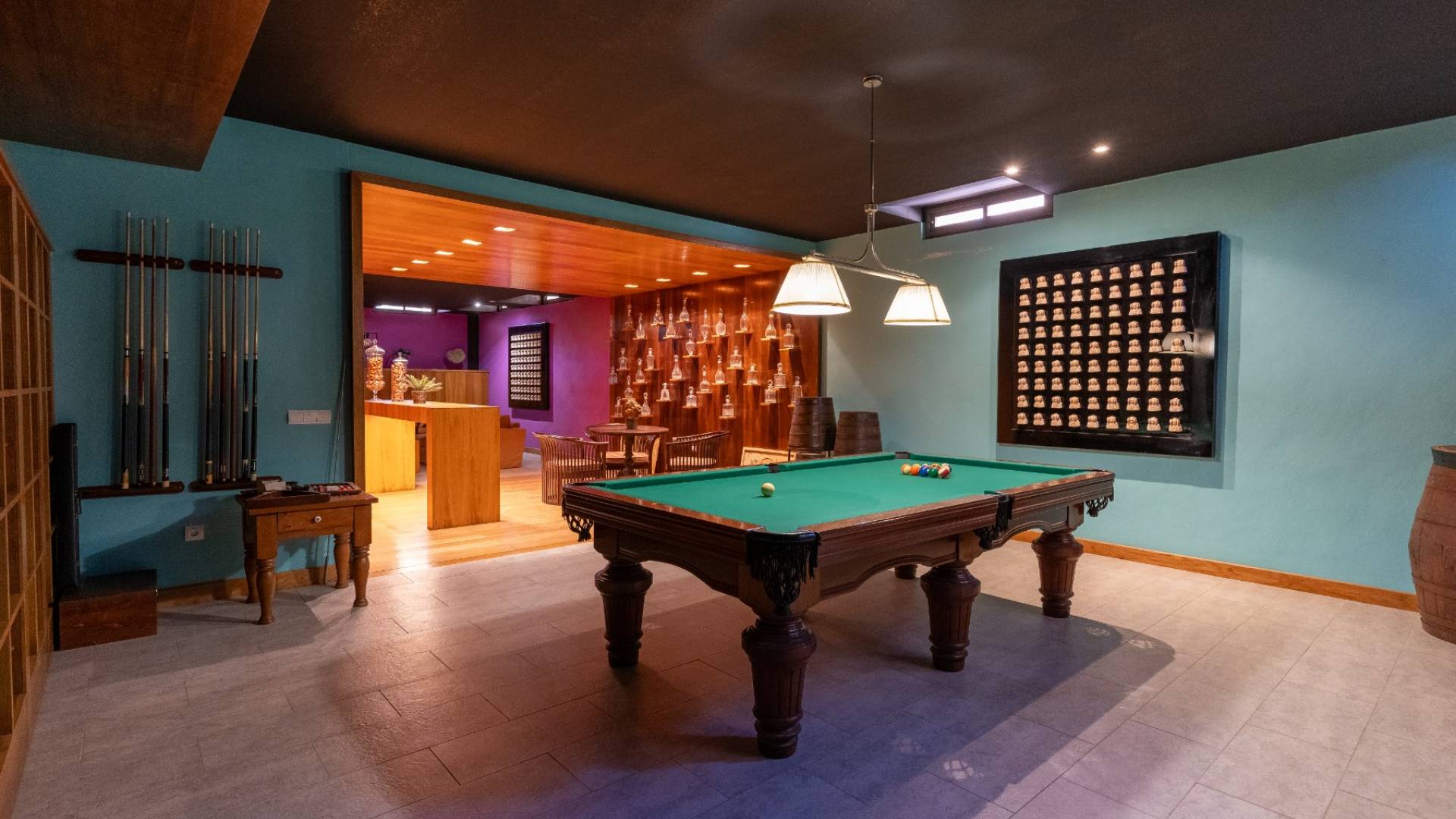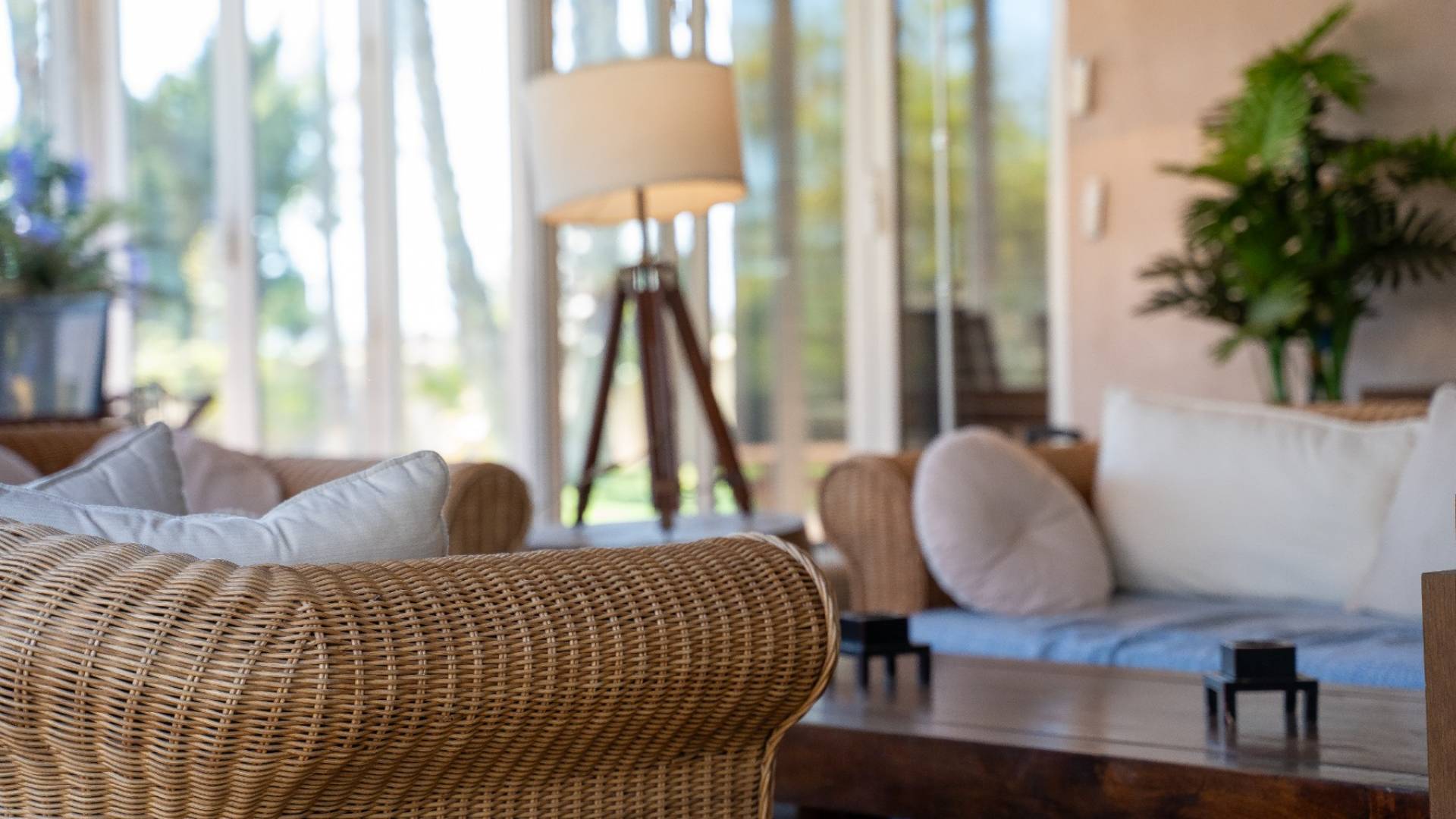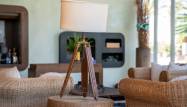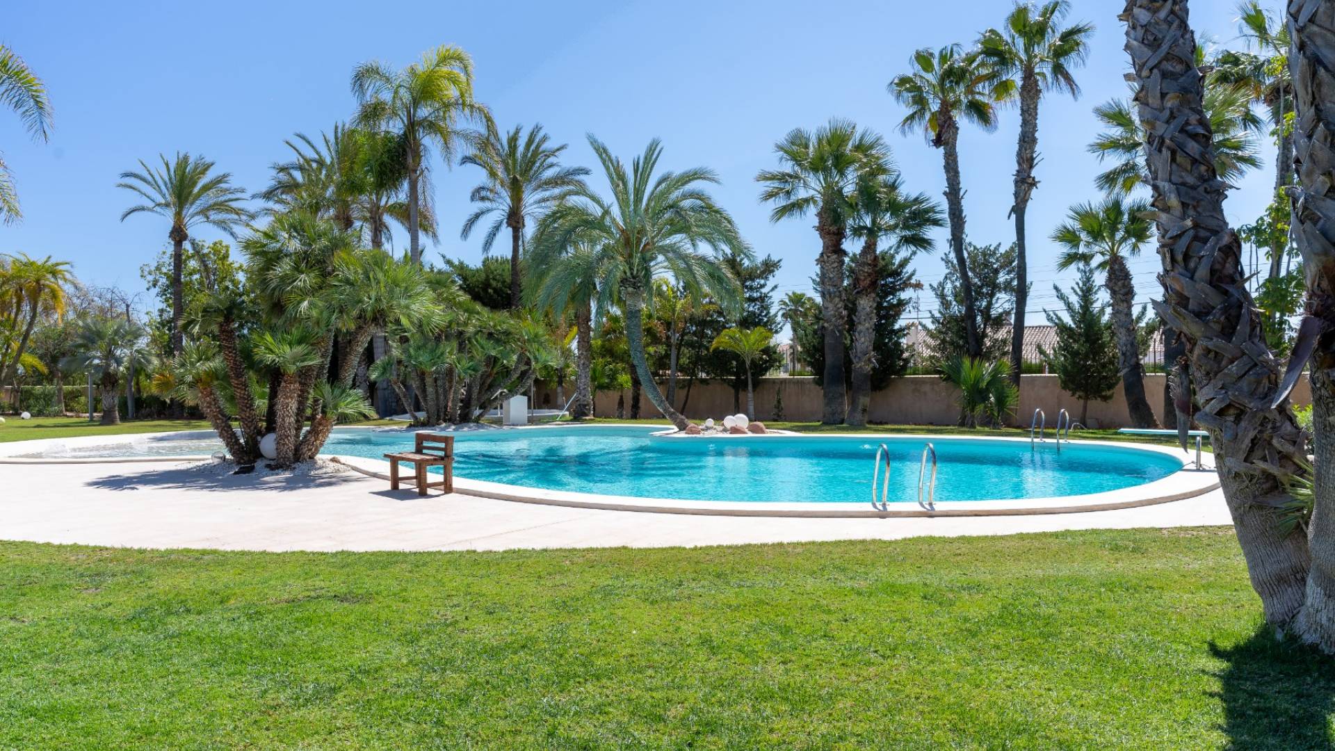 Przestronny ogród jest starannie pielęgnowany i zaprojektowany w stylu tropikalnym, idealny do relaksu i korzystania z klimatu śródziemnomorskiego. Na uwagę zasługuje imponujący basen otoczony palmami oraz jacuzzi na zewnątrz, mieszczące 12 osób, idealne na wydarzenia i chwile relaksu.