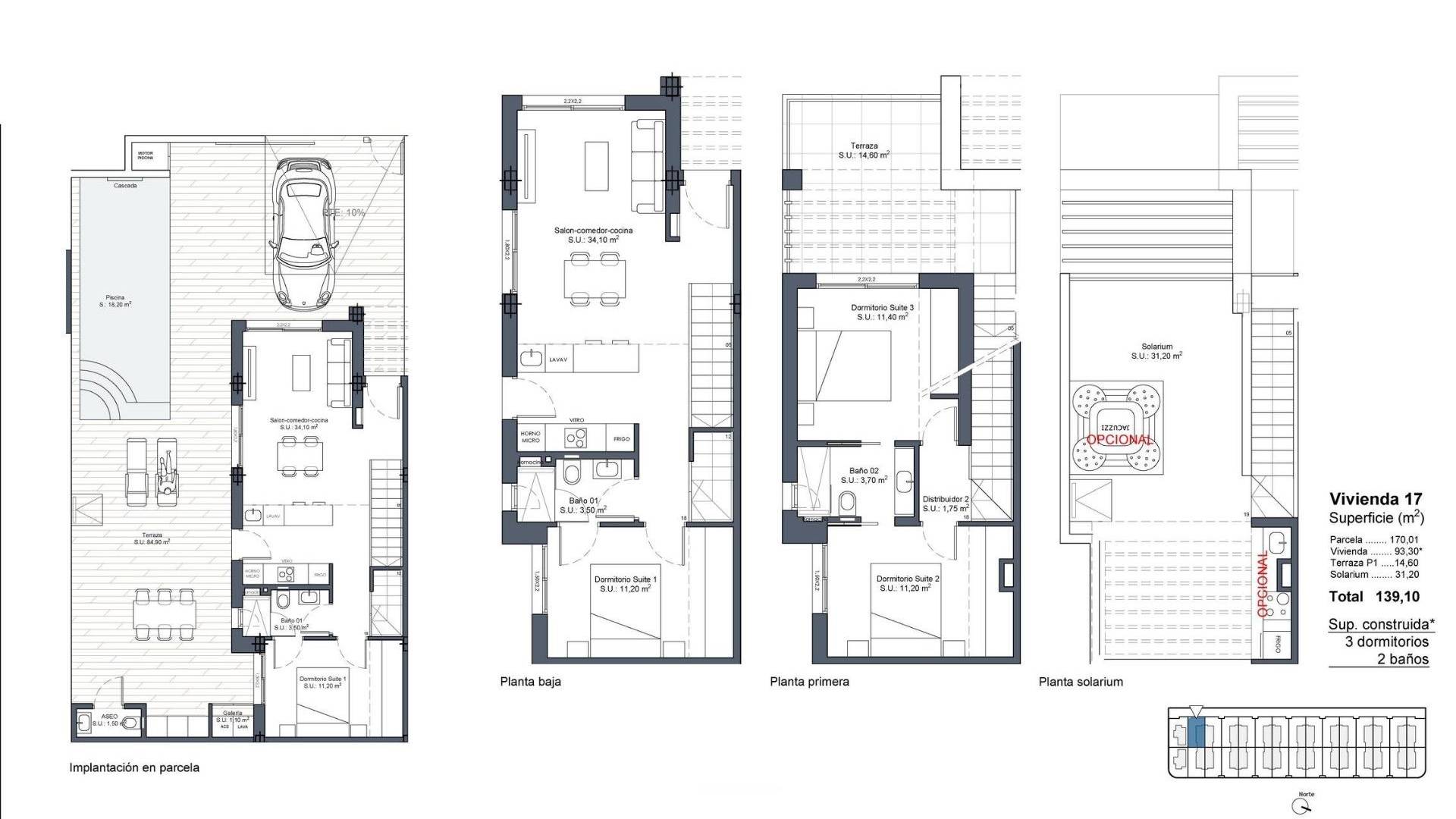 RYNEK PIERWOTNY QUADY W ROJALES Rynek Pierwotny Nowy projekt nowoczesnych quadów i willi z prywatnymi basenami w Rojales. Nowoczesne nieruchomości mają 3 sypialnie, 2 łazienki, toaletę dla gości, kuchnię na otwartym planie z częścią wypoczynkową, wbudowane szafy, solarium, prywatny ogród z basenem i miejsce parkingowe przy drodze. Przestrzenie zaprojektowane z myślą o zapewnieniu prywatności i komfortu, z dużymi ogrodami, które pozwalają cieszyć się świeżym powietrzem w całkowitym spokoju. Współczesny design z przestronnymi sypialniami i łazienkami wyposażonymi w wysokiej jakości wykończenia. Ogród idealny na spotkania rodzinne i z przyjaciółmi, z prywatnym basenem, aby cieszyć się słonecznymi dniami i zewnętrzną toaletą dla dodatkowej wygody podczas przyjmowania gości. Duże solarium i taras: Przestronne i dobrze połączone przestrzenie, aby cieszyć się śródziemnomorskim klimatem i panoramicznymi widokami. Wysokie standardy wykończenia i detali: Najwyższej jakości materiały i projekt z dbałością o szczegóły, oferujący elegancką i przyjazną atmosferę. Ekskluzywność i komfort w sercu Morza Śródziemnego w Rojales, Alicante, to wymarzone miejsce dla osób poszukujących jakości życia, spokoju i dostępu do najwyższej klasy usług. Ta ekskluzywna dzielnica mieszkaniowa oferuje doskonałe połączenie nowoczesności i natury, co czyni ją idealnym miejscem do życia. Strategicznie położona w dobrze ugruntowanym i cieszącym się dużym popytem obszarze, lokalizacja ta zapewnia dostęp do pełnej infrastruktury miejskiej, zachowując jednocześnie naturalne i spokojne otoczenie. Rojales znajduje się 15 minut jazdy od jednych z najpiękniejszych plaż Guardamar del Segura i Torrevieja. Bliskość tych plaż oferuje szereg korzyści i zalet, które sprawiają, że życie tutaj jest wyjątkowym doświadczeniem. Oprócz codziennej przyjemności, życie w pobliżu tych plaż oferuje możliwości aktywnego i zdrowego stylu życia. Sporty wodne, takie jak surfing, paddle surfing i nurkowanie są łatwo dostępne, podobnie jak spacery wzdłuż brzegu lub szlaki turystyczne przez pobliskie wydmy i parki przyrody. Główne lotniska: - Lotnisko Alicante-Elche (ALC): oddalone o około 38 km, dojazd samochodem zajmuje około 35 minut. Lotnisko Murcja-Corvera (RMU): Oddalone o około 65 km, dojazd samochodem zajmuje około 50 minut. Sieć drogowa: - Autostrada AP-7 i droga krajowa N-332 umożliwiają szybki i wygodny dostęp do głównych miast i atrakcji turystycznych w regionie. Transport publiczny: - Obszar ma regularne połączenia autobusowe łączące Ciudad Quesada z pobliskimi miastami i głównymi punktami zainteresowania.