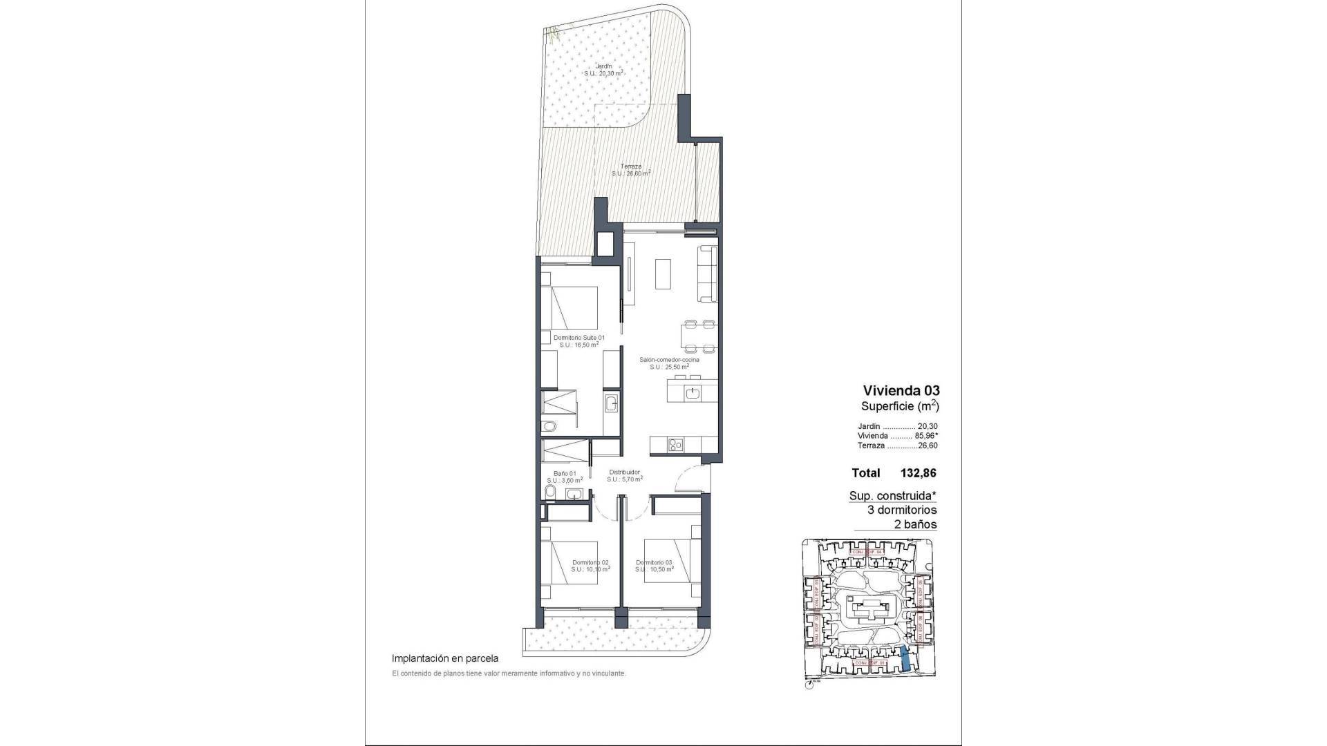 Ekskluzywne nowe nieruchomości w Lo Marabú, Ciudad Quesada Nowoczesny design i maksymalny komfort w śródziemnomorskim otoczeniu Odkryj ten spektakularny kompleks mieszkaniowy w Lo Marabú, Ciudad Quesada, składający się z 80 domów z 2 i 3 sypialniami i 2 łazienkami. Zaprojektowane z nowoczesnym i wydajnym podejściem, nieruchomości te oferują przestronne tarasy, wentylację krzyżową i wysokiej jakości wykończenia, aby zmaksymalizować komfort i efektywność energetyczną. Nieruchomości na parterze mają prywatne ogrody, podczas gdy nieruchomości na najwyższym piętrze mają prywatne solaria z wstępną instalacją jacuzzi i prysznicem na świeżym powietrzu. Ponadto osiedle posiada wspólne baseny otoczone ogrodami, tworząc idealne środowisko do relaksu i spotkań towarzyskich. Wysokiej jakości funkcje dla ekskluzywnego stylu życia Każdy dom został zaprojektowany tak, aby zapewnić maksymalny komfort, przy użyciu najwyższej jakości materiałów i nowoczesnego wzornictwa: Duże przesuwne okna aluminiowe z przegrodą termiczną. Zmotoryzowane rolety dla większego komfortu. Szyby Climalit 4+4/14/4/4+4 zapewniające izolację termiczną i akustyczną. Pancerne drzwi wejściowe z zamkiem bezpieczeństwa. W pełni wyposażona kuchnia z urządzeniami elektrycznymi. Łazienki z meblami, lustrami i parawanami prysznicowymi. System aerotermalny 150L do ciepłej wody. Kompletna instalacja klimatyzacji kanałowej (ciepło/zimno). Oświetlenie we wszystkich pokojach już zainstalowane. Miejsce parkingowe wliczone w cenę. Dzięki podwójnej fasadzie domy oferują naturalną wentylację krzyżową, zapewniając chłód latem i zmniejszając zużycie energii w klimatyzacji. Uprzywilejowana lokalizacja w Ciudad Quesada Lo Marabú to ekskluzywna dzielnica mieszkaniowa w Ciudad Quesada (Rojales), otoczona naturalnymi przestrzeniami i ze wszystkimi usługami w zasięgu ręki. Urbanizacja znajduje się bardzo blisko słonych jezior La Mata i Torrevieja, idealnego środowiska do cieszenia się przyrodą i poprawy samopoczucia. Z nowego domu będziesz miał szybki dostęp do głównych atrakcji w okolicy: Plaże Guardamar del Segura i Torrevieja - 10 km (15 minut jazdy samochodem). Lotnisko Alicante-Elche (ALC) - 38 km (35 minut jazdy samochodem). Lotnisko Murcja-Corvera (RMU) - 65 km (50 minut jazdy samochodem). Prestiżowe pola golfowe - mniej niż 5 km. Centra handlowe i restauracje - zaledwie kilka minut. Szybki dostęp do autostrad AP-7 i N-332, łączących się z całym wybrzeżem Costa Blanca. Idealny dom, aby cieszyć się Morzem Śródziemnym Dzięki połączeniu nowoczesnego designu, strategicznej lokalizacji i wyjątkowego naturalnego otoczenia, te domy w Lo Marabu są idealne na pobyt stały, dom wakacyjny lub nieruchomość inwestycyjną. Nie przegap tej wyjątkowej okazji. Skontaktuj się z nami już dziś, aby uzyskać więcej informacji lub umówić się na oglądanie swojego przyszłego domu w Ciudad Quesada.