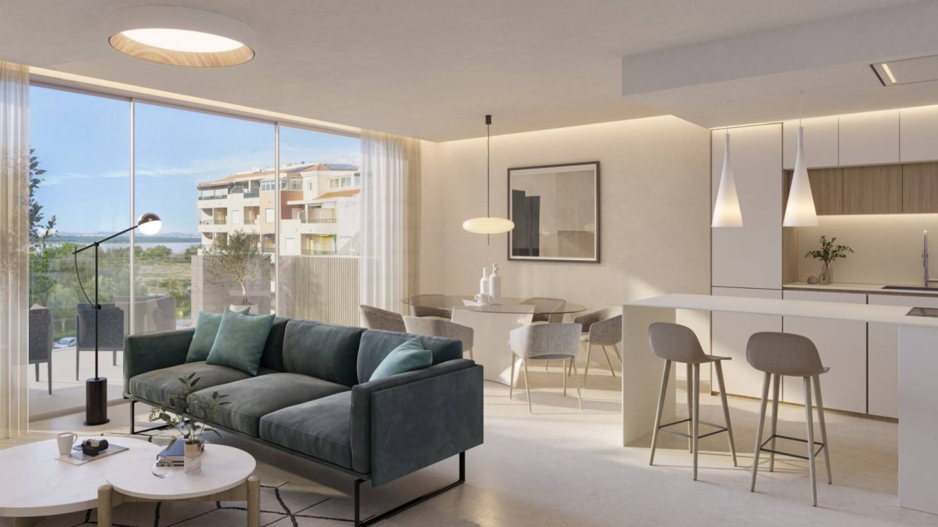 NOWE APARTAMENTY W PIERWSZEJ LINII W LA MATA Apartamenty New Build w La Mata, Torrevieja. Projekt New Build składa się z 12 apartamentów i 2 penthousów - wszystkie z dużymi tarasami, dwóch lokali handlowych na parterze i 11 podziemnych miejsc parkingowych. Projekt obejmuje również duży wspólny taras na dachu z jacuzzi i skierowanym na zachód widokiem na naturalne słone jezioro. Apartamenty z 3 sypialniami i 2 łazienkami, kuchnią na otwartym planie z częścią wypoczynkową, wyposażonymi szafami i mają bezpośredni widok na plac miejski, plażę i morze. Apartamenty typu penthouse mają również bezpośredni dostęp do własnego prywatnego tarasu na dachu o powierzchni 80 m2, z panoramicznym widokiem. Możesz wybrać, czy chcesz kupić jedno z 11 miejsc parkingowych w parkingu w piwnicy. La Mata znajduje się w pobliżu hiszpańskiego miasta Torrevieja w prowincji Alicante, na Costa Blanca. Znana jest z typowo śródziemnomorskiego klimatu i linii brzegowej. Posiada deptaki z kurortami wzdłuż swoich piaszczystych plaż. Plaża La Mata jest najdłuższą plażą w Torrevieja i jest otoczona urbanizacjami. Znajduje się ona w pobliżu parku Molino del Agua. Małe Muzeum Morza i Soli mieści wystawy dotyczące rybackiej i solnej historii miasta. W głębi, Park Naturalny Lagunas de La Mata-Torrevieja posiada szlaki i dwie słone laguny, jedną różową i drugą zieloną. Lotnisko w Alicante oddalone o 40 minut, a lotnisko w Murcji o około 1 godzinę drogi.