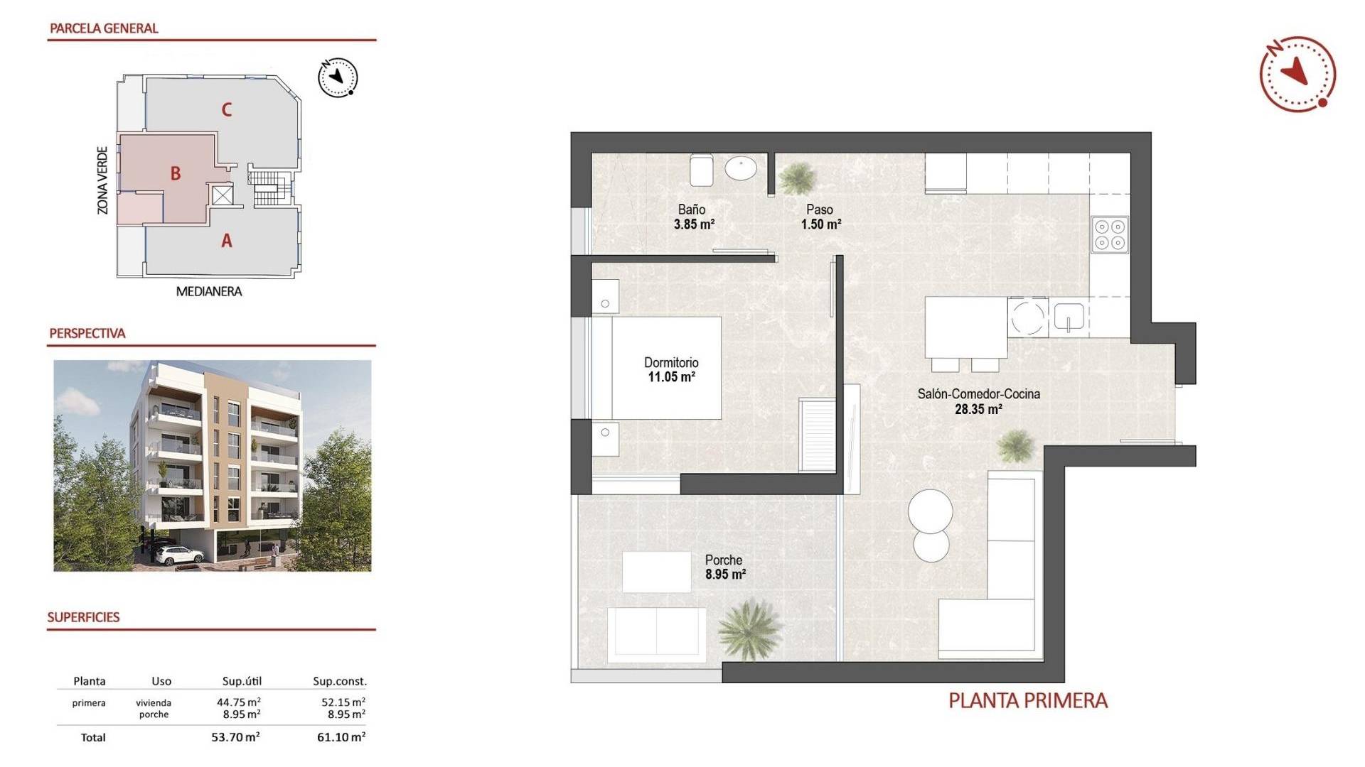 Apartamenty z licencją turystyczną w nowym budynku w pobliżu plaży w Lo Pagan San Pedro del Pinatar Nowoczesne życie nad morzem z dużym potencjałem wynajmu Ta ekskluzywna nowa inwestycja obejmująca 12 nowoczesnych apartamentów z licencją turystyczną znajduje się w Lo Pagan, popularnej nadmorskiej okolicy San Pedro del Pinatar, zaledwie 1 km od plaży. Położony nad brzegiem Mar Menor, projekt ten oferuje wyjątkową okazję do cieszenia się śródziemnomorskim stylem życia, a jednocześnie korzystania z doskonałego potencjału wynajmu wakacyjnego w bardzo poszukiwanej okolicy. Lo Pagan słynie z relaksującej atmosfery, naturalnych kąpieli błotnych, promenady pełnej restauracji i kawiarni oraz łatwego dostępu zarówno do Mar Menor, jak i Morza Śródziemnego. Jest to popularne miejsce dla miłośników plaży, entuzjastów sportów wodnych i rodzin poszukujących spokojnych, płytkich wód i słońca przez cały rok. Do wyboru apartamenty z 1 lub 2 sypialniami Projekt oferuje apartamenty z 1 sypialnią i 1 łazienką lub 2 sypialniami i 2 łazienkami, z których jedna jest łazienką przy sypialni. Każda nieruchomość posiada prywatny taras o powierzchni około 9 m2 i jasny, otwarty układ, w którym w pełni wyposażona kuchnia z urządzeniami płynnie łączy się z częścią dzienną. Wszystkie apartamenty posiadają prywatną komórkę lokatorską na dachu. Niektóre lokale posiadają miejsce parkingowe, a dodatkowe miejsca parkingowe są dostępne jako opcja. Wysokiej jakości wykończenia i nowoczesny komfort Mieszkania są w pełni wyposażone w wysokiej jakości materiały i wykończenia zaprojektowane z myślą o komforcie i trwałości: W pełni zainstalowana klimatyzacja kanałowa Wzmocnione drzwi wejściowe Elektryczne rolety w salonie i sypialniach System aerotermiczny do podgrzewania wody Oświetlenie LED Łazienki z meblami, kabinami prysznicowymi i elektrycznymi wieszakami na ręczniki Płytki porcelanowe firmy PORCELANOSA Wbudowane kuchnie z nowoczesnymi urządzeniami Wspólne obszary na dachu z basenem, siłownią i solarium Jedną z głównych atrakcji tej inwestycji jest wspólny obszar na dachu, do którego można łatwo dostać się windą. Mieszkańcy i goście mogą korzystać z basenu, w pełni wyposażonej siłowni i przestronnego solarium ze sztuczną trawą i leżakami, a wszystko to z otwartym widokiem na otaczające wybrzeże. Doskonała lokalizacja w pobliżu plaż, marin i usług Apartamenty znajdują się w odległości spacerowej od sklepów, restauracji i codziennych usług, dzięki czemu idealnie nadają się zarówno do użytku osobistego, jak i na wynajem wakacyjny. Odległości do najważniejszych punktów Plaża Lo Pagan 1 km Marina San Pedro 1,5 km Centrum handlowe Dos Mares 2 km Lo Romero Golf 10 km Międzynarodowe lotnisko w Murcji 35 km Lotnisko w Alicante 80 km Inteligentna inwestycja nad morzem Niezależnie od tego, czy szukasz domu wakacyjnego, inwestycji pod wynajem, czy też obu tych rzeczy, te apartamenty w Lo Pagan, posiadające licencję turystyczną, oferują bezkonkurencyjne połączenie lokalizacji, jakości i potencjału wynajmu. Skontaktuj się z nami już dziś, aby uzyskać więcej informacji lub umówić się na oglądanie tych wyjątkowych apartamentów nad morzem.