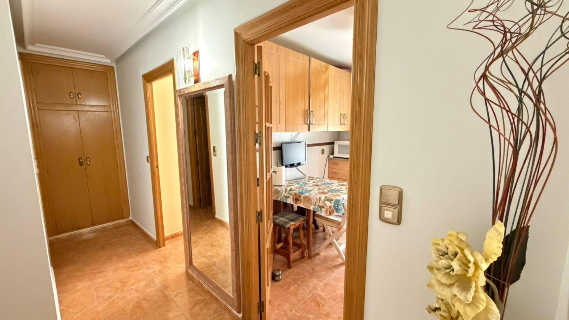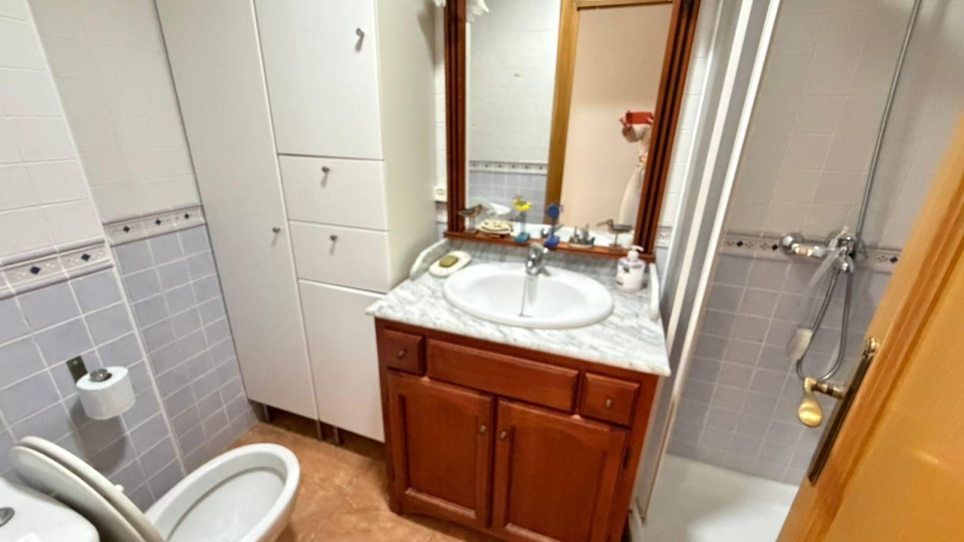 Przestronny apartament z 3 sypialniami i tarasem przy plaży w Torrevieja W cichym budynku położonym zaledwie 100 metrów od morza znajduje się ten jasny apartament z trzema sypialniami i dwiema łazienkami, z których jedna jest łazienką przy sypialni. Salon łączy się z przestronnym tarasem, z którego roztacza się spektakularny widok na morze; jest to idealne miejsce na spotkania z przyjaciółmi, kolacje na świeżym powietrzu lub po prostu na relaks przed błękitną linią horyzontu. W pełni wyposażona kuchnia posiada własny balkon. Trzy sypialnie, dobrze rozplanowane, są bardzo jasne. Główna sypialnia z łazienką zapewnia prywatność i komfort. Druga łazienka, w pełni wyposażona, służy pozostałym pokojom i gościom. Apartament ten oferuje nie tylko funkcjonalne i nowoczesne przestrzenie, ale także korzystną lokalizację: kilka kroków od plaży, co pozwala cieszyć się morzem o każdej porze dnia bez konieczności przemieszczania się samochodem. WAŻNE: wejście dla wózków inwalidzkich. LOKALIZACJA: Torrevieja znajduje się w prowincji Alicante (Costa Blanca). Słynie ze śródziemnomorskiego klimatu i wybrzeża. Nie możemy zapomnieć o promenadach, gdzie możemy znaleźć kilka restauracji wzdłuż pięknych piaszczystych plaż. Posiada również wiele doskonałych plaż, takich jak Playa de los Náufragos, Playa de los Locos i Playa de la Mata. Dlatego też jest uważane za niezwykłe miasto turystyczne, w którym środowisko zajmuje ważne miejsce jako ważna atrakcja turystyczna. Ponadto znajdziemy tu wiele centrów handlowych (Habaneras, La Zenia Boulevard), pól golfowych, ośrodków sportowych, szpitali (takich jak Hospital Universitario de Torrevieja) i lotnisk, takich jak lotnisko w Alicante (35 km) i międzynarodowe lotnisko w regionie Murcji (43 km). ODLEGŁOŚĆ OD MORZA: 50 m COMUNIDAD: 416 € IBI: 375 € Jeśli mają Państwo jakiekolwiek pytania, prosimy o kontakt!