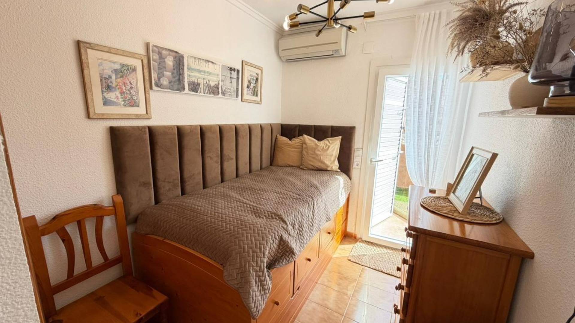 Wspaniały dom szeregowy z trzema sypialniami i prywatnym basenem w Torrevieja Mieszkanie, zorientowane na południe, cieszy się doskonałym doświetleniem naturalnym przez cały dzień i jest w idealnym stanie, gotowe do zamieszkania. Ma powierzchnię użytkową 85 m² na działce o powierzchni 80 m², a jego rozkład jest praktyczny i funkcjonalny. Znajdują się w nim trzy sypialnie, wszystkie wyposażone w klimatyzację, oraz dwie w pełni wyposażone łazienki, zapewniające komfort całej rodzinie. Oddzielna kuchnia zapewnia wygodę i przestrzeń, a przytulny salon z kominkiem tworzy ciepłą i przyjemną atmosferę o każdej porze roku. Na zewnątrz wyróżniają się dwa prywatne patio, idealne do cieszenia się śródziemnomorskim klimatem, organizowania spotkań na świeżym powietrzu lub tworzenia stref relaksu. Ponadto mieszkanie posiada prywatny basen, co stanowi doskonały atut pozwalający cieszyć się całkowitą prywatnością w domu. LOKALIZACJA: Torrevieja znajduje się w prowincji Alicante (Costa Blanca). Słynie ze śródziemnomorskiego klimatu i wybrzeża. Nie możemy zapomnieć o promenadach, gdzie możemy znaleźć kilka restauracji wzdłuż pięknych piaszczystych plaż. Posiada również wiele doskonałych plaż, takich jak Playa de los Náufragos, Playa de los Locos i Playa de la Mata. Dlatego też jest uważane za niezwykłe miasto turystyczne, w którym środowisko zajmuje ważne miejsce jako ważna atrakcja turystyczna. Ponadto znajdziemy tu wiele centrów handlowych (Habaneras, La Zenia Boulevard), pól golfowych, ośrodków sportowych, szpitali (takich jak Hospital Universitario de Torrevieja) i lotnisk, takich jak lotnisko w Alicante (35 km) i międzynarodowe lotnisko w regionie Murcji (43 km). ODLEGŁOŚĆ OD MORZA: 200 m Jeśli mają Państwo jakiekolwiek pytania, prosimy o kontakt!