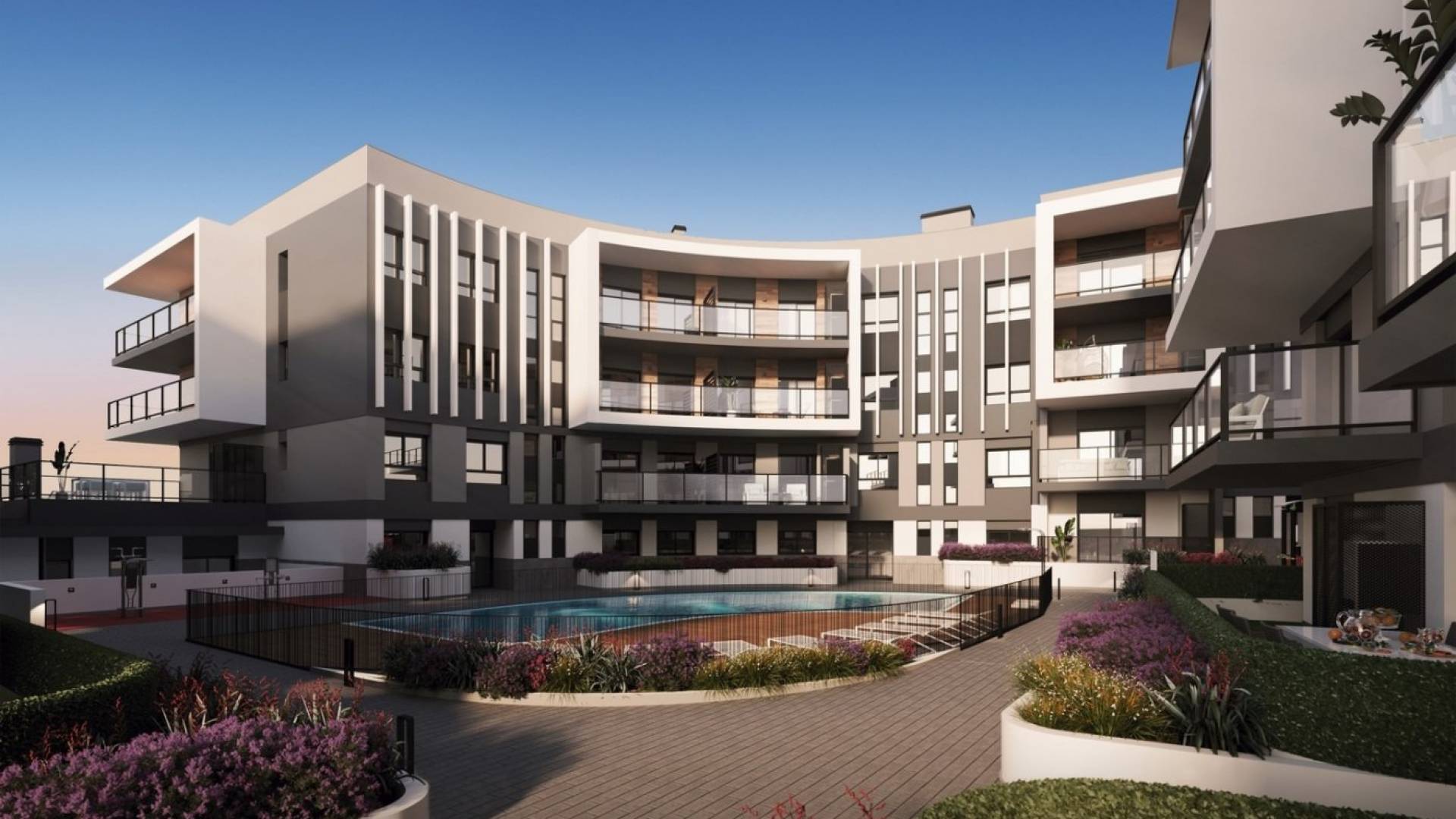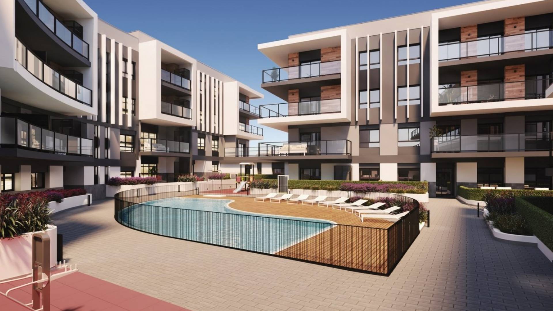 APARTMENTS FOR SALE, IN A RESIDENTIAL AREA WITH ALL THE SERVICES IN JÁVEA / XÀBIA New residential complex of 74 homes consisting of 2 and 3 bedroom apartments. All homes are built and finished with top quality materials. The communal areas are made up of swimming pools (adults and children) and gardens, creating a beautiful environment where you can enjoy comfort and relaxation. The houses have 2 bathrooms, open kitchen and living room. The large terraces are integrated into the bright living room thanks to the large windows. Each house includes an underground parking space. These newly built apartments are strategically located in Javea with walking access to both the center and the beach: 650 meters from the bus station and just 15 minutes walking to the beaches of Jávea and the marina. Walking also has access to all kinds of services: supermarkets and markets, banks, restaurants and cafes, gyms, schools (public and international) and post office. Thanks to its privileged location and having all kinds of services nearby, you will not need to use the car. These modern homes will allow you to live all year round in a quiet residential area, with all the comforts. It is also ideal to enjoy during the holidays and / on weekends. The houses include an air conditioning and heating system through ducts, a kitchen furnished and equipped with an oven and microwave, a ceramic hob and extractor fan. Estimated delivery date: March 2023