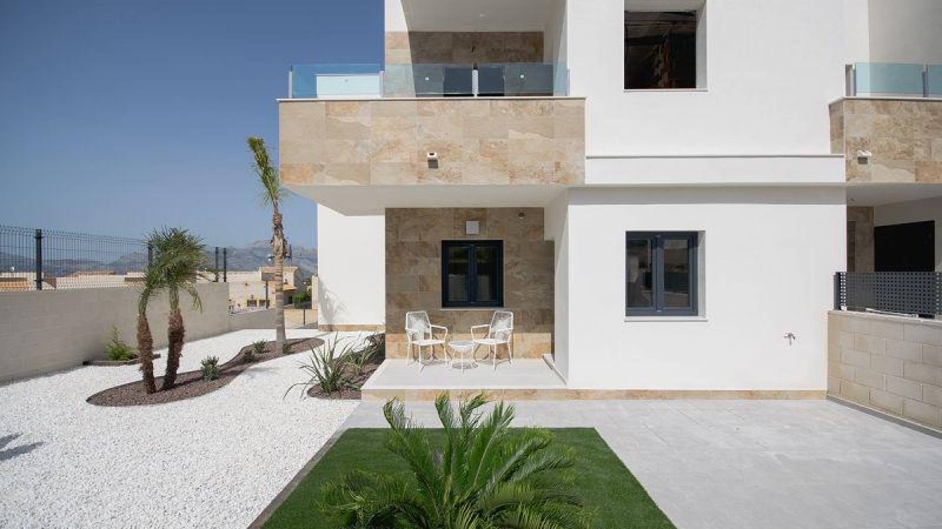 SMODERN TOWNHOUSE BETWEEN SEA AND MOUNT Semi-detached villas located next to Polop and facing East. The villas have 2 or 3 bedrooms and 3 bathrooms. With spacious open living-dining room and kitchen, terrace and views of the Mediterranean Sea and the mountains. Includes parking space on the plot. Excellent qualities and finishes: underfloor heating in all bathrooms, pre-installation of AACC, automated shutters, full alarm, hydromassage column in bathroom .. Access to a large community area with heated pool and sauna. The Residential has a heated community pool for enjoyment throughout the year. Both the climate and the great views of the natural setting This new Urbanization is located in the residential area of Polop, a scenic enclave between the Mediterranean Sea and the mountains. 15 minutes from the beaches of Benidorm and with quick access to all kinds of services, such as the many international schools in the area (Elian`s British School, Den norske skole Costa Blanca). Few places have as much charm and tourist attraction as this beautiful little corner of Alicante. And it is that, with beautiful natural spaces and an interesting heritage, this town is considered one of the most suggestive of the Valencian community. A perfect place to relax.