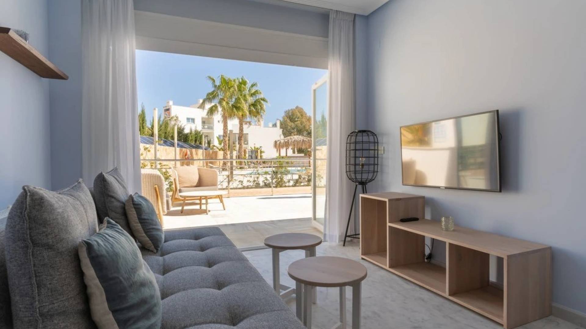 The 3-room apartment Mascarat is a spacious, very luxurious apartment on Dormio Resort Costa Blanca, suitable for 4 to 6 people. The living room consists of a dining area and a sitting area with a luxury sofa bed. There is a modern open kitchen with luxury built-in appliances. There are also 2 bedrooms, one of which has an en-suite bathroom with a bath with whirlpool position, sink, bidet and toilet. The other bathroom has a shower, sink, bidet and toilet. Across the entire width of the apartment you have - from the living room and one of the bedrooms - access to a spacious furnished terrace with a guaranteed beautiful view over the Mediterranean Sea. You have access to a parking space in the underground parking garage and an owner's storage room.