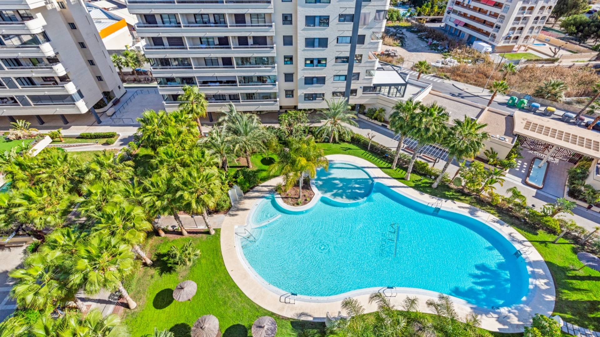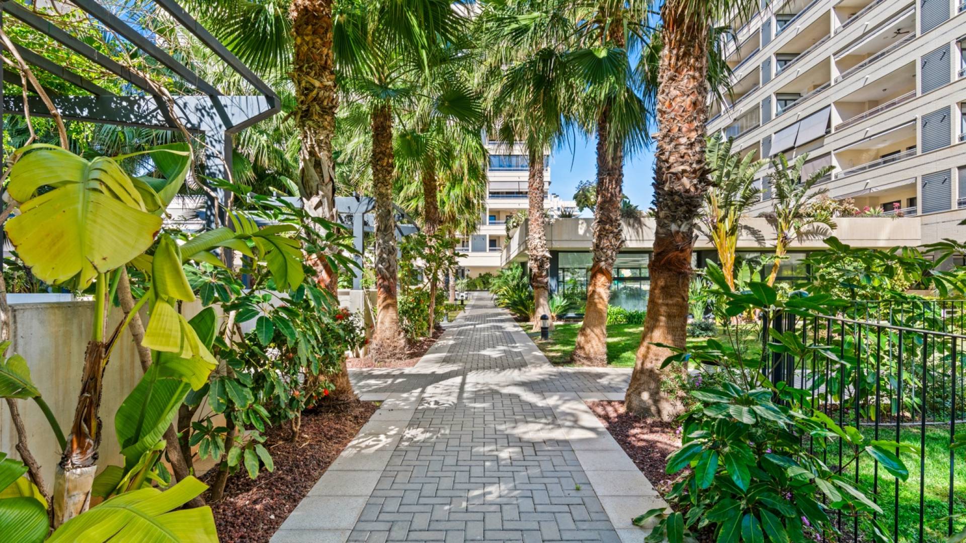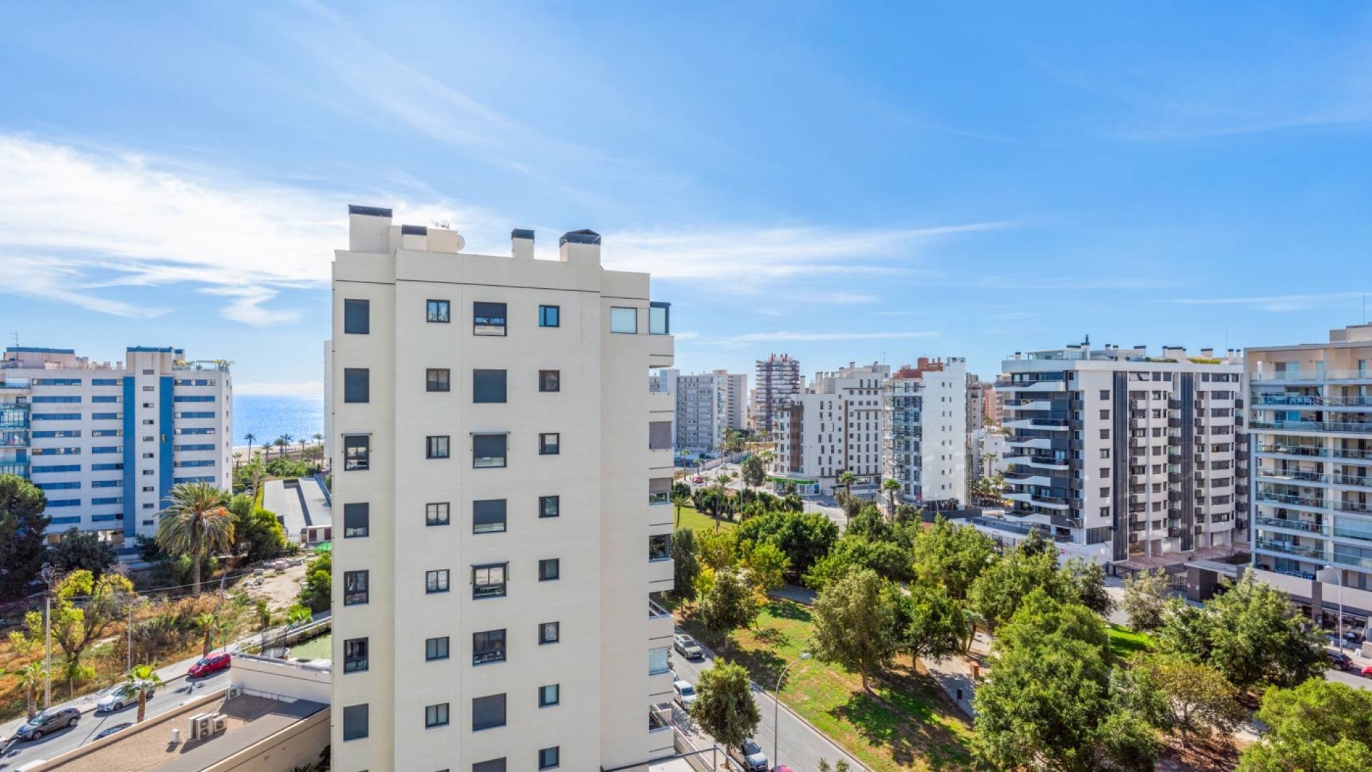 Beautiful 3 bedroom apartment with sea views in PAU 5 in Playa San Juan, Alicante. The apartment has a total living area of 133 m2 and consist of 3 double bedrooms with fitted wardrobes and 2 bathrooms, where one of them is en-suite to the master bedroom. Furthermore the apartment consists of an entrance area with a fitted wardrobe, a fully equipped kitchen with utility / storage room and a large living and dining room with breathtaking sea views. From the living room you have direct access to a terrace where you can enjoy the views. The apartment is equipped with central heating on gas, central air condition, alarm system and security front door. It is located on the 8th floor with access by elevator. The apartment includes two parking spaces and two storage rooms in the garage. In the beautiful residential complex, Parque Mariola, you can find a large outdoor pool, an indoor heated pool, a gym, a restaurant/café, a playground, a social club with kitchen, a kids playroom, tennis court, padel court and football/basketball court. The apartment is located just a short walk from the lovely beach of Playa San Juan, and also within immediate proximity to several amenities such as supermarket, restaurants, shops, cafés, pharmacy and much more.