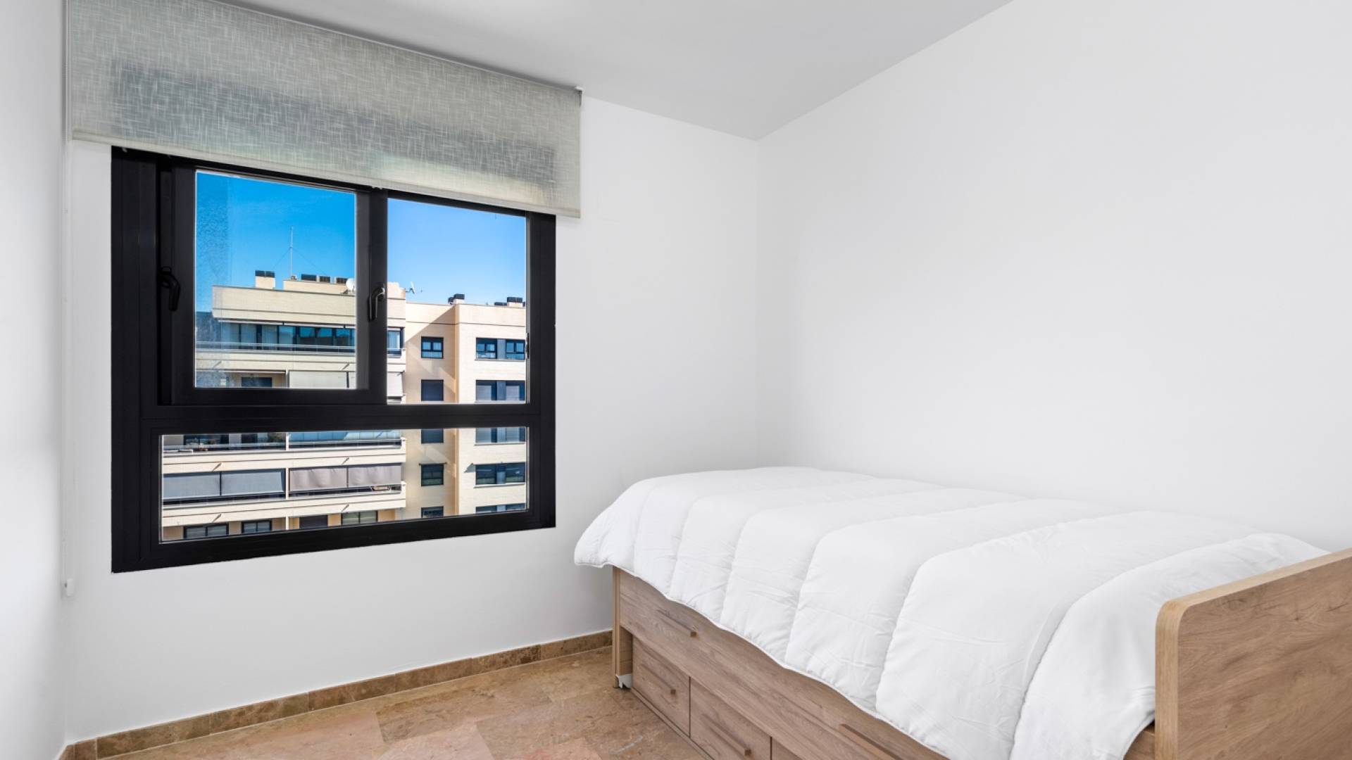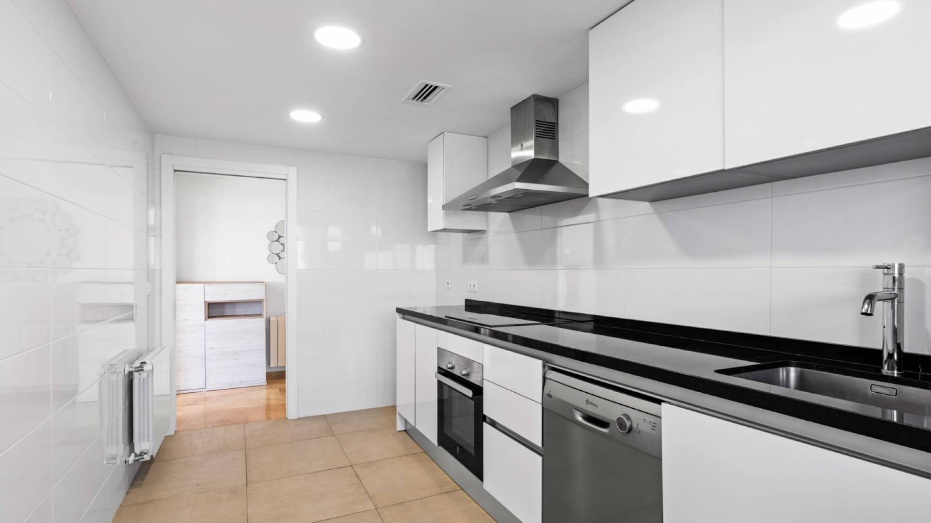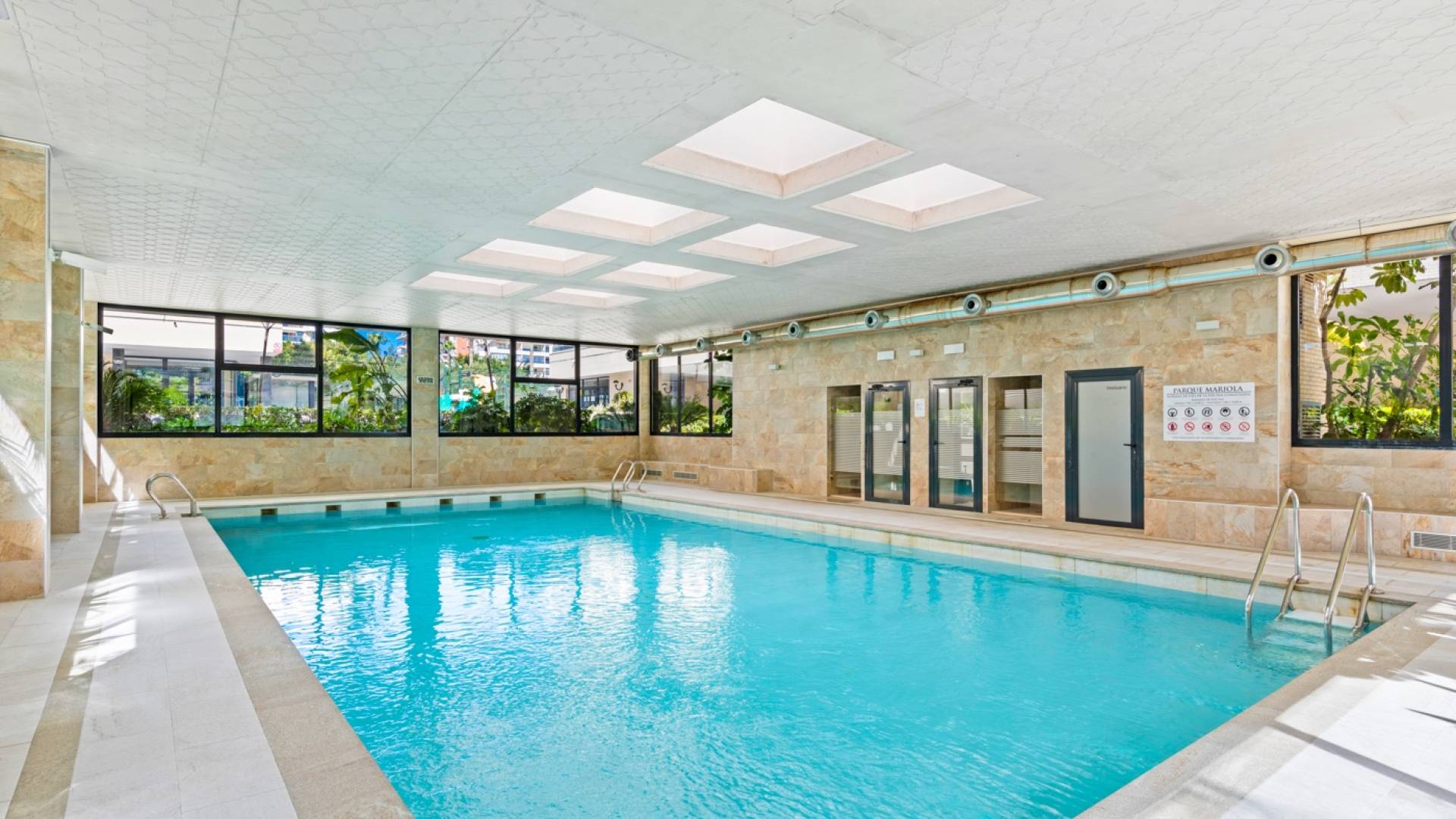 Beautiful 3 bedroom apartment with sea views in PAU 5 in Playa San Juan, Alicante. The apartment has a total living area of 133 m2 and consist of 3 double bedrooms with fitted wardrobes and 2 bathrooms, where one of them is en-suite to the master bedroom. Furthermore the apartment consists of an entrance area with a fitted wardrobe, a fully equipped kitchen with utility / storage room and a large living and dining room with breathtaking sea views. From the living room you have direct access to a terrace where you can enjoy the views. The apartment is equipped with central heating on gas, central air condition, alarm system and security front door. It is located on the 8th floor with access by elevator. The apartment includes two parking spaces and two storage rooms in the garage. In the beautiful residential complex, Parque Mariola, you can find a large outdoor pool, an indoor heated pool, a gym, a restaurant/café, a playground, a social club with kitchen, a kids playroom, tennis court, padel court and football/basketball court. The apartment is located just a short walk from the lovely beach of Playa San Juan, and also within immediate proximity to several amenities such as supermarket, restaurants, shops, cafés, pharmacy and much more.