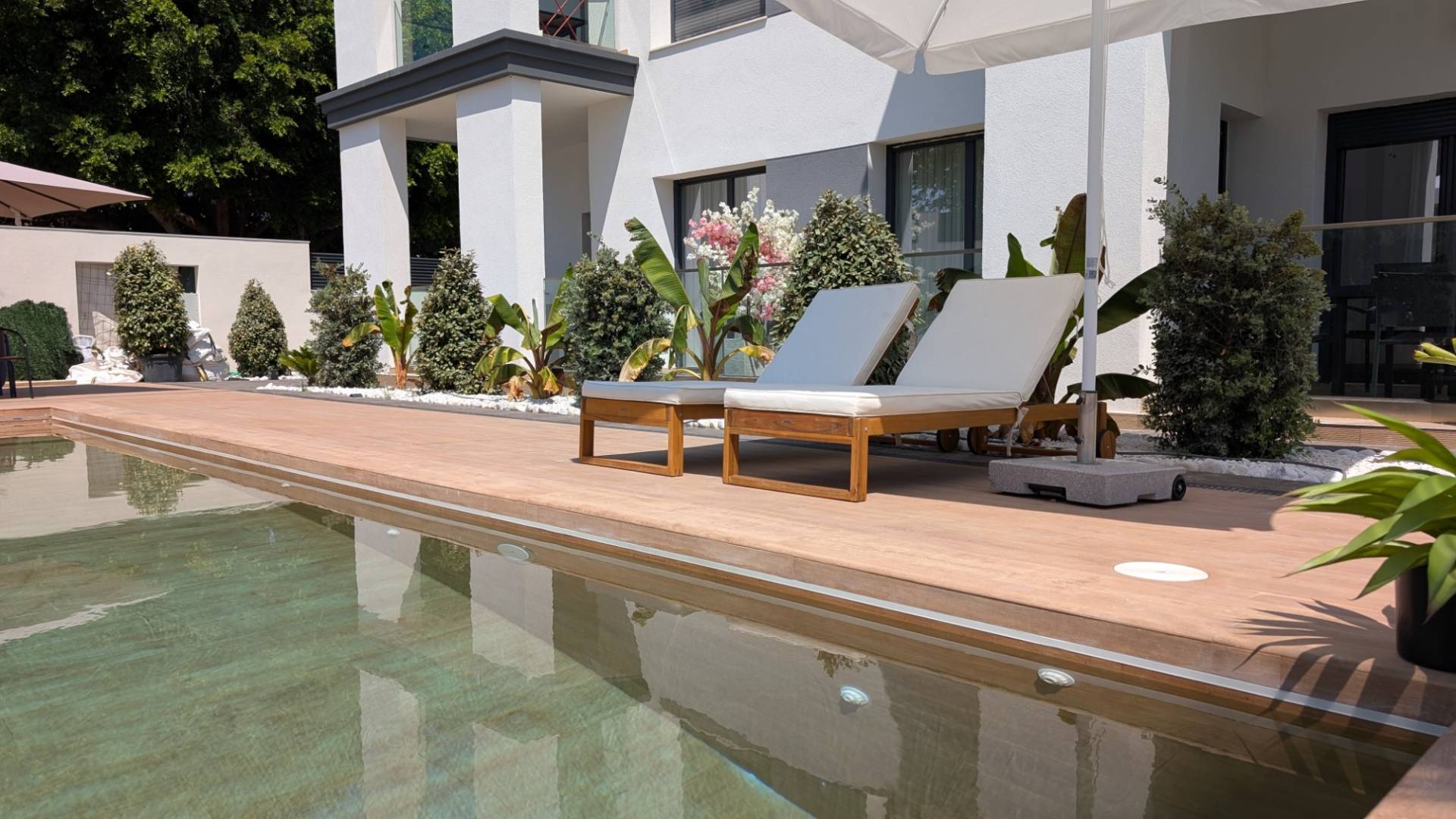 Modern swimming pool, perfectly integrated into the surroundings, ideal for enjoying the Mediterranean sun.