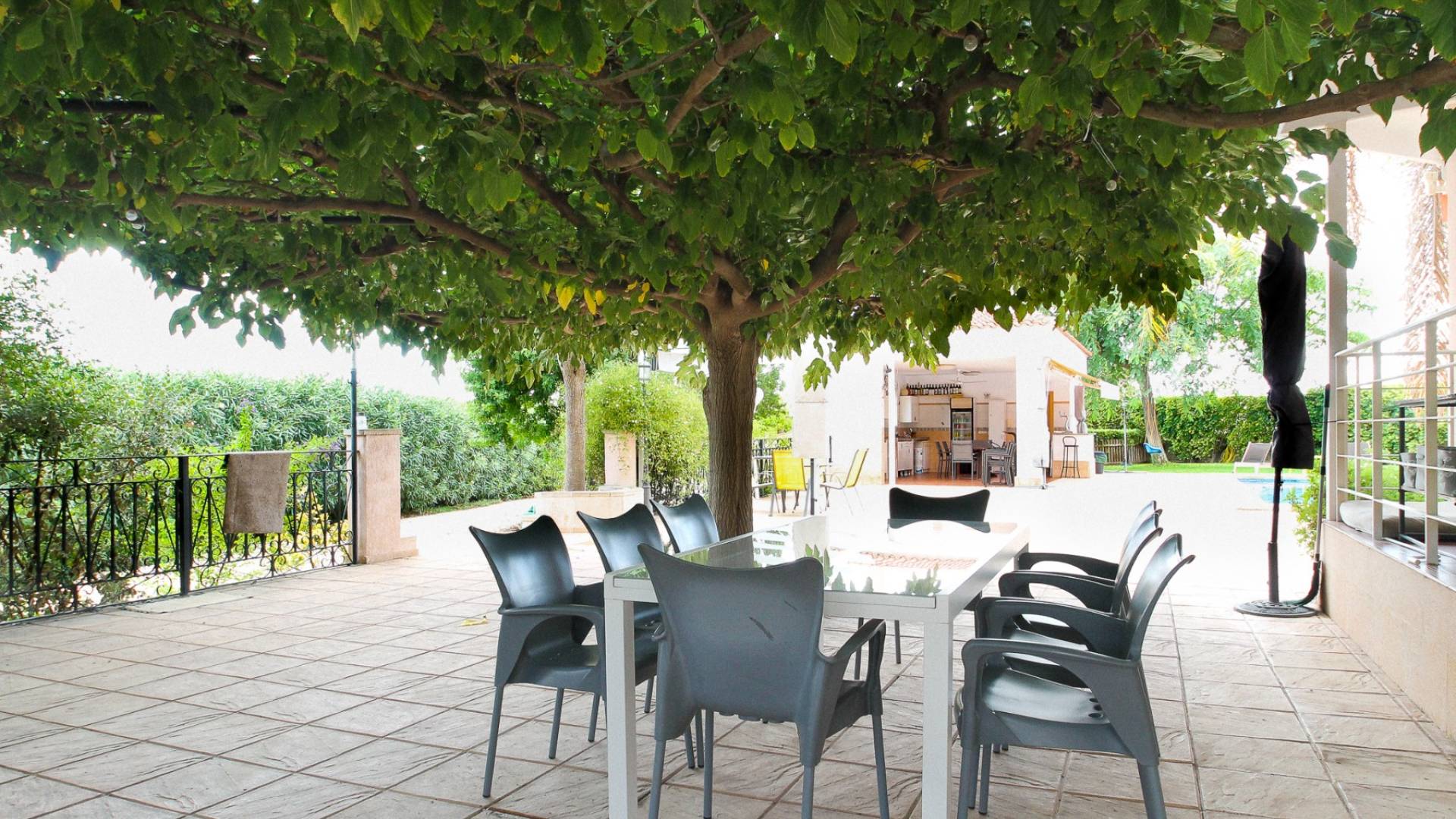 The main house includes six bedrooms, three full bathrooms and two spacious living-dining rooms, offering bright, well-distributed spaces ideal for family living and relaxation.
