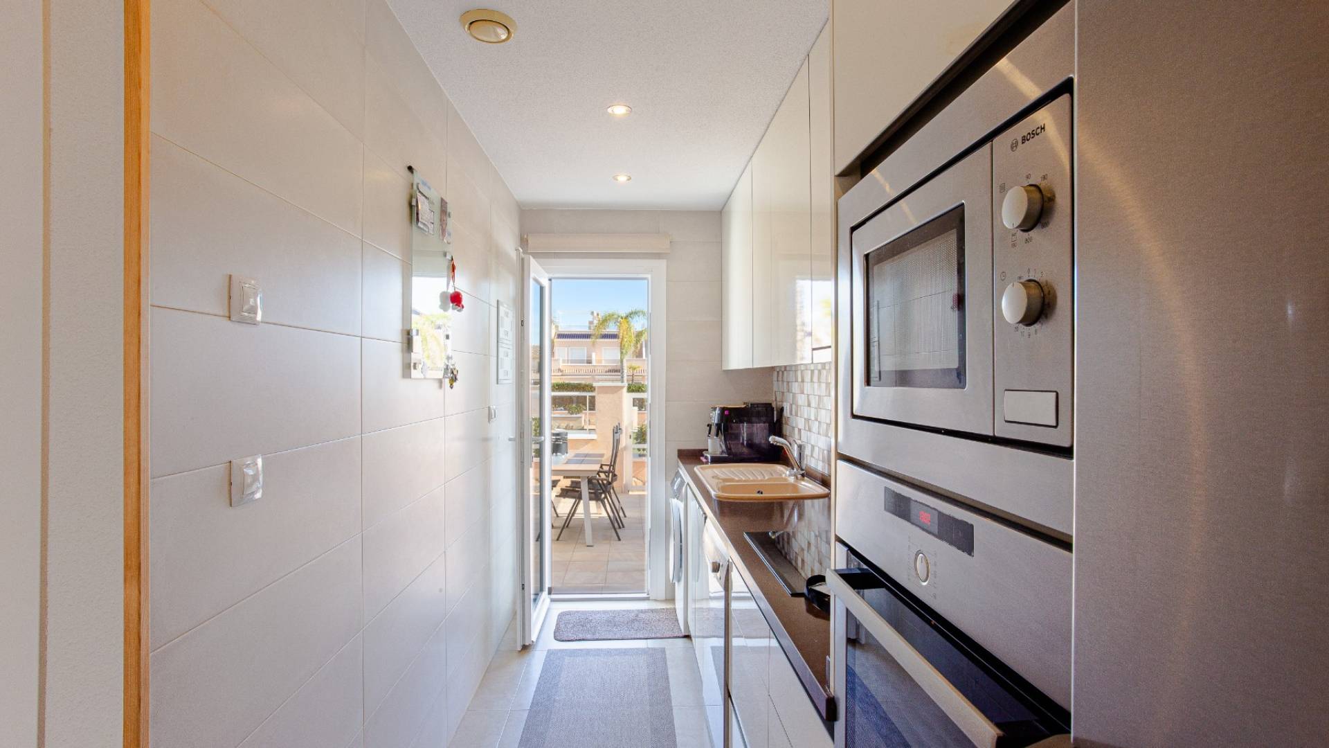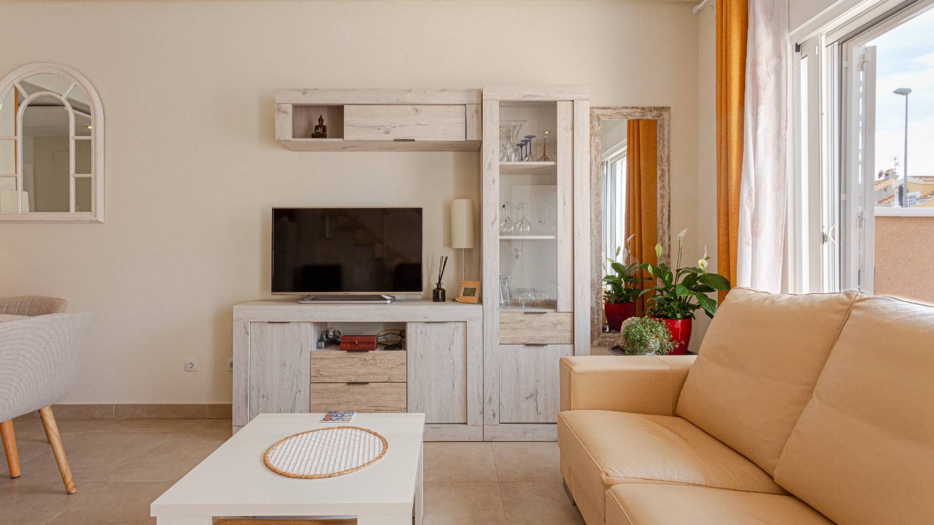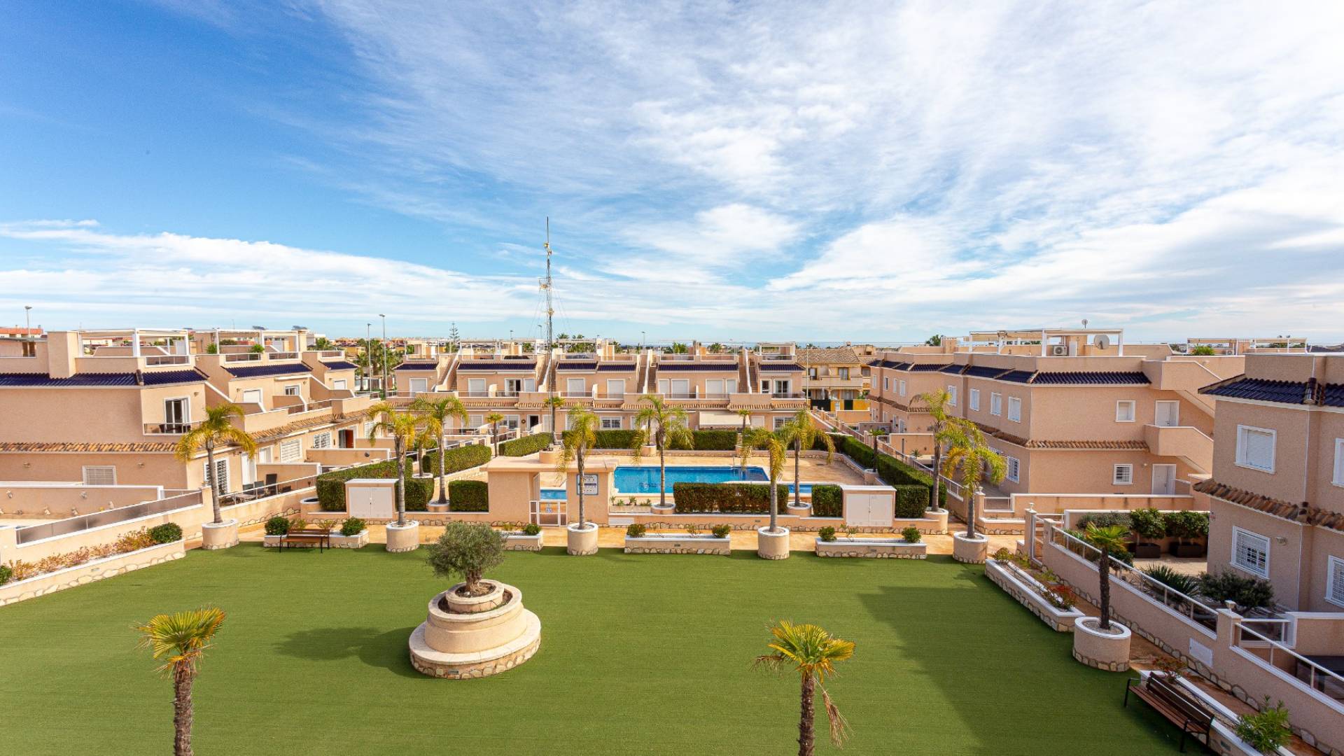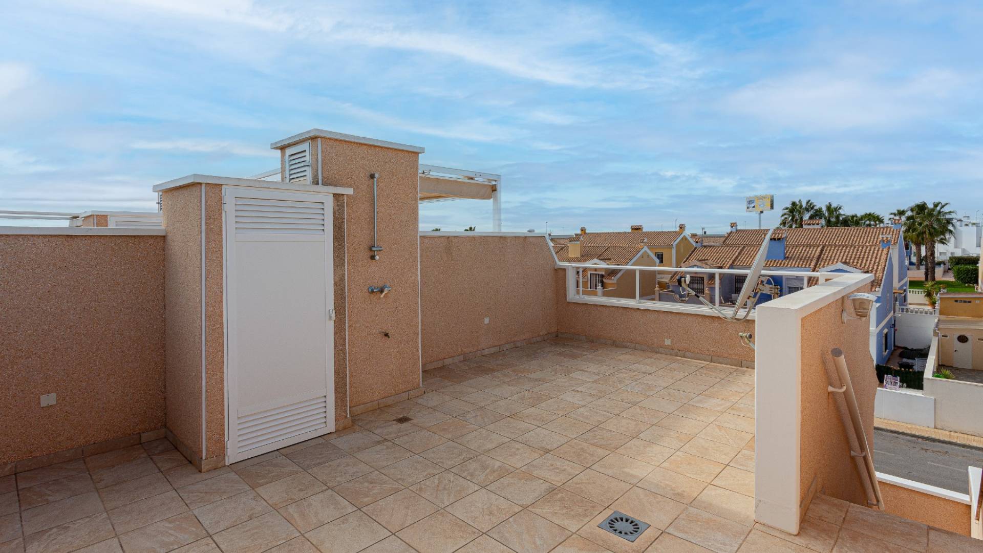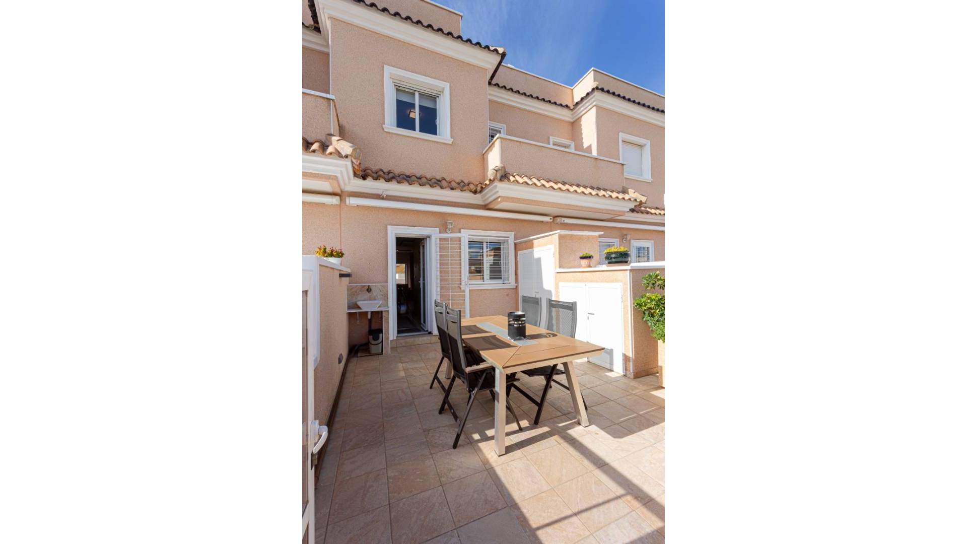 Townhouse for sale in Orihuela Costa, located in the well-established residential area of Lomas de Cabo Roig, in the south of the Costa Blanca. This property is set in a quiet environment, yet very close to all services, beaches and golf courses, making it ideal for permanent living, holidays or investment.The property offers 3 bedrooms and 2 bathrooms and is sold fully furnished and equipped, including Bosch appliances. It features underfloor heating in the bathrooms and living room, as well as multiple outdoor spaces to enjoy the Mediterranean climate all year round.The townhouse is distributed over two levels and benefits from generous terraces, a private solarium and modern comfort features throughout the home.Lomas de Cabo Roig is a highly sought-after residential area of Orihuela Costa, known for its proximity to the beaches of Campoamor, its excellent access to golf courses and its wide range of nearby services.This townhouse is ideally located close to beaches, golf courses, shopping centres and all essential amenities, making it a solid option for both private use and rental investment.Prime location in Lomas de Cabo Roig, Orihuela CostaThis townhouse is located in Lomas de Cabo Roig, a consolidated residential area close to the beaches of Campoamor, Cabo Roig and La Zenia, as well as several renowned golf courses such as Campoamor Golf, Las Ramblas and Villamartín Golf.The area offers excellent infrastructure, a peaceful residential atmosphere and quick access to all daily services, making it one of the most attractive locations in Orihuela Costa.Townhouse with terraces and functional layoutOn the ground floor, the property features two spacious terraces, one at the front entrance and another at the rear of the house, both ideal for outdoor dining, relaxing or entertaining.This level also includes a bright living-dining area with underfloor heating, a fully equipped kitchen with Bosch appliances, and a bedroom of 8.6 m² with built-in wardrobe and air conditioning by split unit. The ground floor is equipped with infrared heating for added comfort.First floor with bedrooms, bathroom and terraceThe first floor offers a spacious bathroom with bathtub, radiator heating and natural light through a window. There is a second bedroom of 8 m² with built-in wardrobe, as well as a main bedroom of 10.1 m² with air conditioning and direct access to a private terrace of 9.1 m².From this terrace, stairs lead up to a private solarium of approximately 30 m², providing an excellent outdoor space to enjoy the sun, create a chill-out area or install sun loungers.Close to beaches, golf and shopping centresThe property is just a short drive from the beaches of Campoamor and Cabo Roig, offering fine sandy beaches and clear waters. Several top golf courses are also nearby, making this area especially popular with golf enthusiasts.Supermarkets, restaurants, bars and pharmacies are all within easy reach, while the popular :contentReference[oaicite:0]{index=0} shopping centre is only a few minutes away by car.An ideal property for living or investmentThanks to its location, outdoor spaces and full equipment, this townhouse in Lomas de Cabo Roig is perfect as a permanent residence, holiday home or high-demand rental investment in Orihuela Costa.Properties in this area continue to show strong demand and long-term value, making this home a safe and attractive investment on the Costa Blanca South.