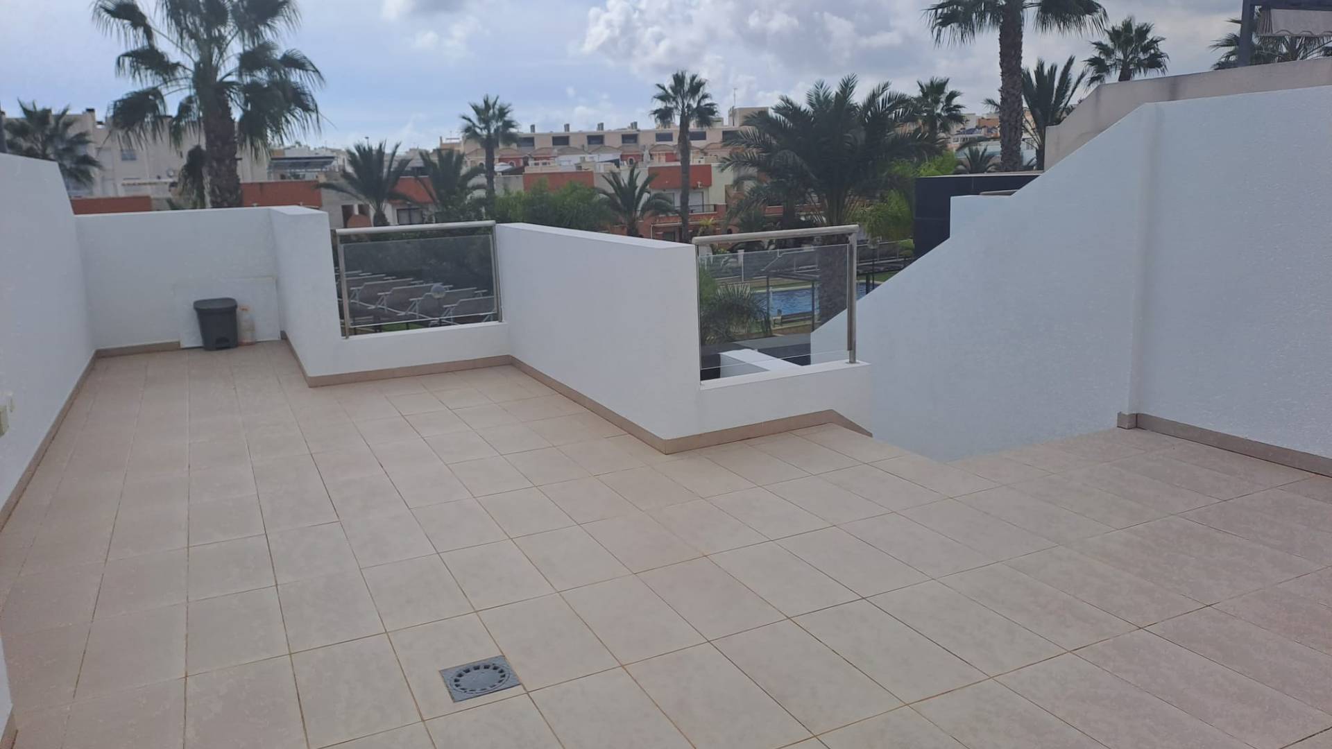 A modern townhouse for sale with a built area of 197 m². The duplex offers three bedrooms, three bathrooms, and an open-plan kitchen combined with the living room. The kitchen has access to a private patio, while from the living room there is a staircase leading down to the basement level, where the garage is located. A rooftop solarium is situated on the roof, and there is an additional terrace at the entrance to the house.The residential complex features two swimming pools (a standard pool and a heated pool).The distance to the sea is 3 km.Online reservation is available, as well as mortgage financing from the bank at an annual interest rate of 4–6%.