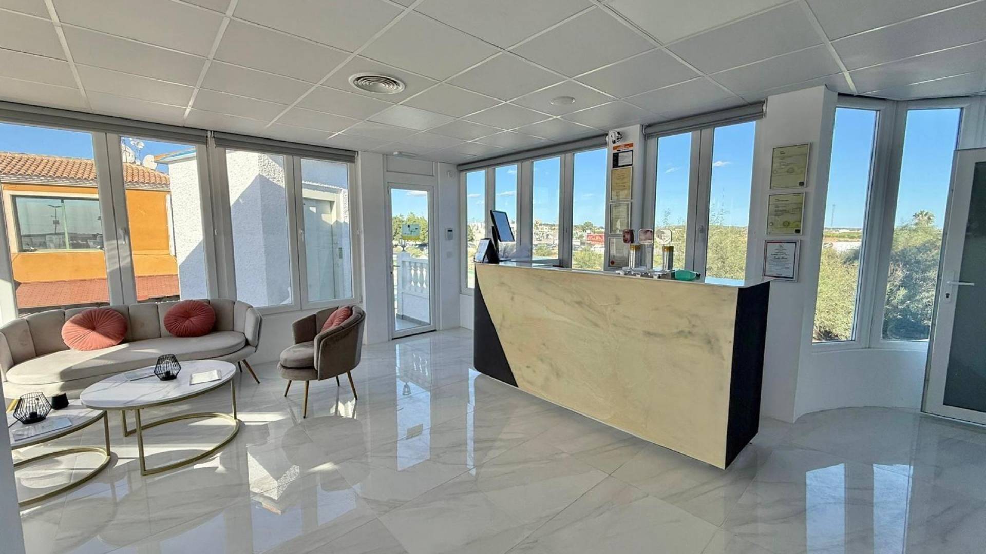 Located in a business center very close to the four-star La Laguna Hotel. The location is excellent, directly in front of the La Laguna Aparthotel and just a few meters from the main hotel. Covering approximately 120 m², the clinic features a spacious reception area, five treatment rooms, two bathrooms, one restroom equipped with two showers, a large terrace of about 35 m² with beautiful views of the lagoon—perfect as an outdoor waiting area—along with a changing room and kitchen. Access is available via both stairs and elevator. The clinic is equipped with security cameras, an alarm monitoring system, and ducted air conditioning with control panels throughout the premises. It is rented with a valid operating license and complies with all accessibility requirements for clients with reduced mobility. The clinic is fully furnished, both in the reception area and in the treatment rooms. Medical equipment is not included in the rental price but can be purchased separately. Interested parties may request the list of available equipment and corresponding prices. Financial conditions: -Rental price: €3,200 per month. -Initial payment: €60,000, of which €50,000 are refundable as a security deposit. -No transfer fee applies. -Long-term lease agreements of 15 years or more are available. For further information or to arrange a visit, please contact us. We will be pleased to provide all the necessary details.