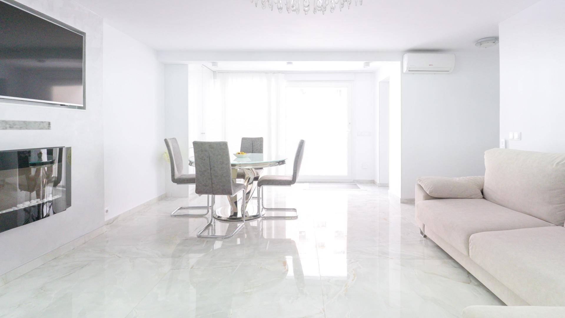 I present to you this semi-detached house with private pool and garage “Two in One” – it consists of two connected but independent houses, ideal for a large family. It is located in Punta Prima, Orihuela Costa, just 400 meters from the sea. Orihuela Costa stands out as a coastal destination with excellent weather and beautiful beaches. This semi-detached house has something special: 2 modern, furnished kitchens and 2 living rooms. It features 4 bedrooms and 3 bathrooms, all with large windows. The southeast orientation of both the bedrooms and the rest of the house allows natural light to fill every room. Additionally, it has a bright terrace with incredible views of the garden and pool. Outside, you’ll find a magnificent heated private pool with sun loungers, perfect for sunny summers, a barbecue area, and a parking space. The entire garden and terrace are equipped with night lighting, creating a magical atmosphere under the stars. Another highlight of this semi-detached house is its solar panels and fireplaces: one traditional and one electric. It’s perfect for a large family! Don’t miss this opportunity! Contact us to arrange a visit! We invite you to see it!