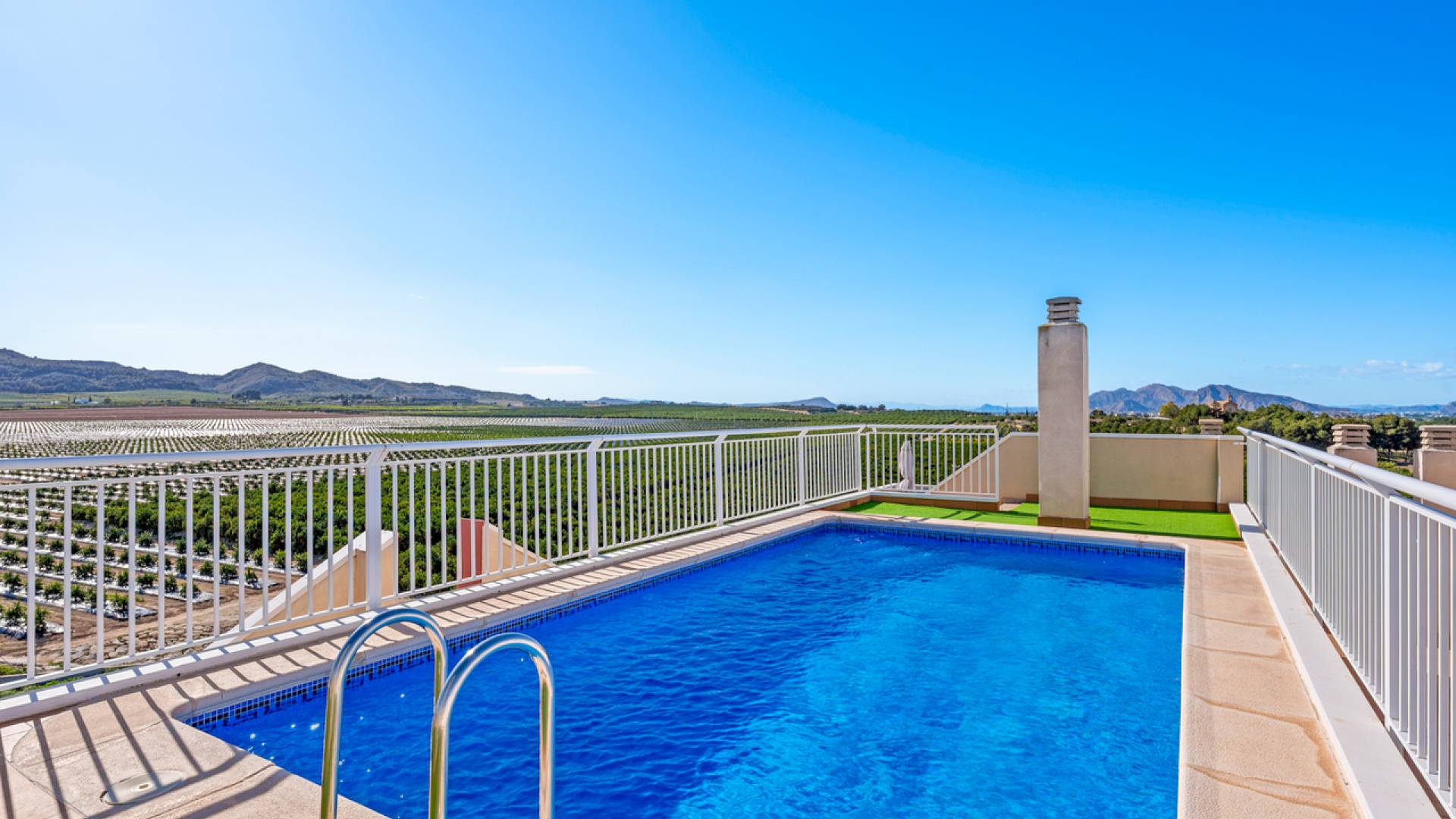 This charming two-bedroom apartment with stunning countryside views is located in the centre of Algorfa, Alicante.The property features a bright living/dining room, a fully equipped semi-open kitchen, two bedrooms with fitted wardrobes, a bathroom with a bathtub, a south-facing terrace with fantastic views of the surrounding countryside and mountains, and there is also a private rooftop terrace/solarium for making the most of the sun and the views.
