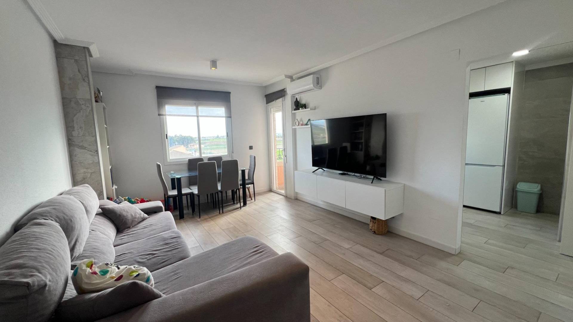 Spectacular 98 m² apartment designed to offer a welcoming and functional living space. This property comprises three bedrooms that provide comfort for the whole family, as well as a bright living-dining room perfect for creating unforgettable moments. The separate kitchen is fully equipped to meet all your culinary needs. It also features a full bathroom, a utility room ideal as an additional living area, and both a balcony and a private SOLARIUM; perfect for relaxing outdoors and enjoying the beautiful Mediterranean climate. The building boasts additional amenities: it has an elevator and a communal swimming pool, the perfect complement during the warmer months. Thanks to its privileged location on a high floor with excellent orientation, this apartment offers stunning, unobstructed views of Santa Pola and Guardamar, guaranteeing abundant natural light throughout the day. This property is perfect not only for its generous spaces but also because it offers the desired combination of interior spaciousness and outdoor amenities, ideal for families or individuals who value living comfortably surrounded by nature.