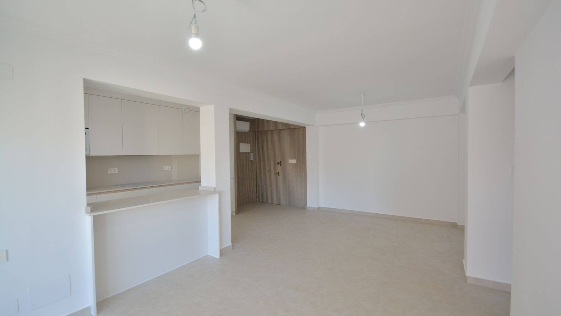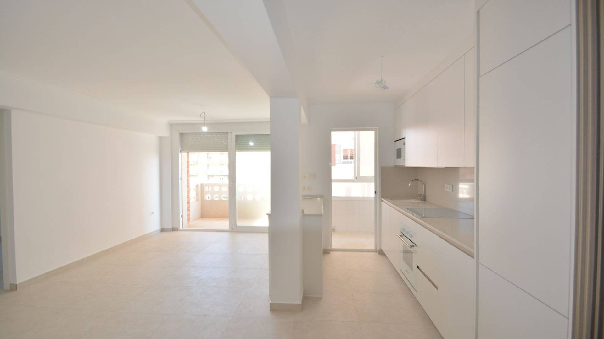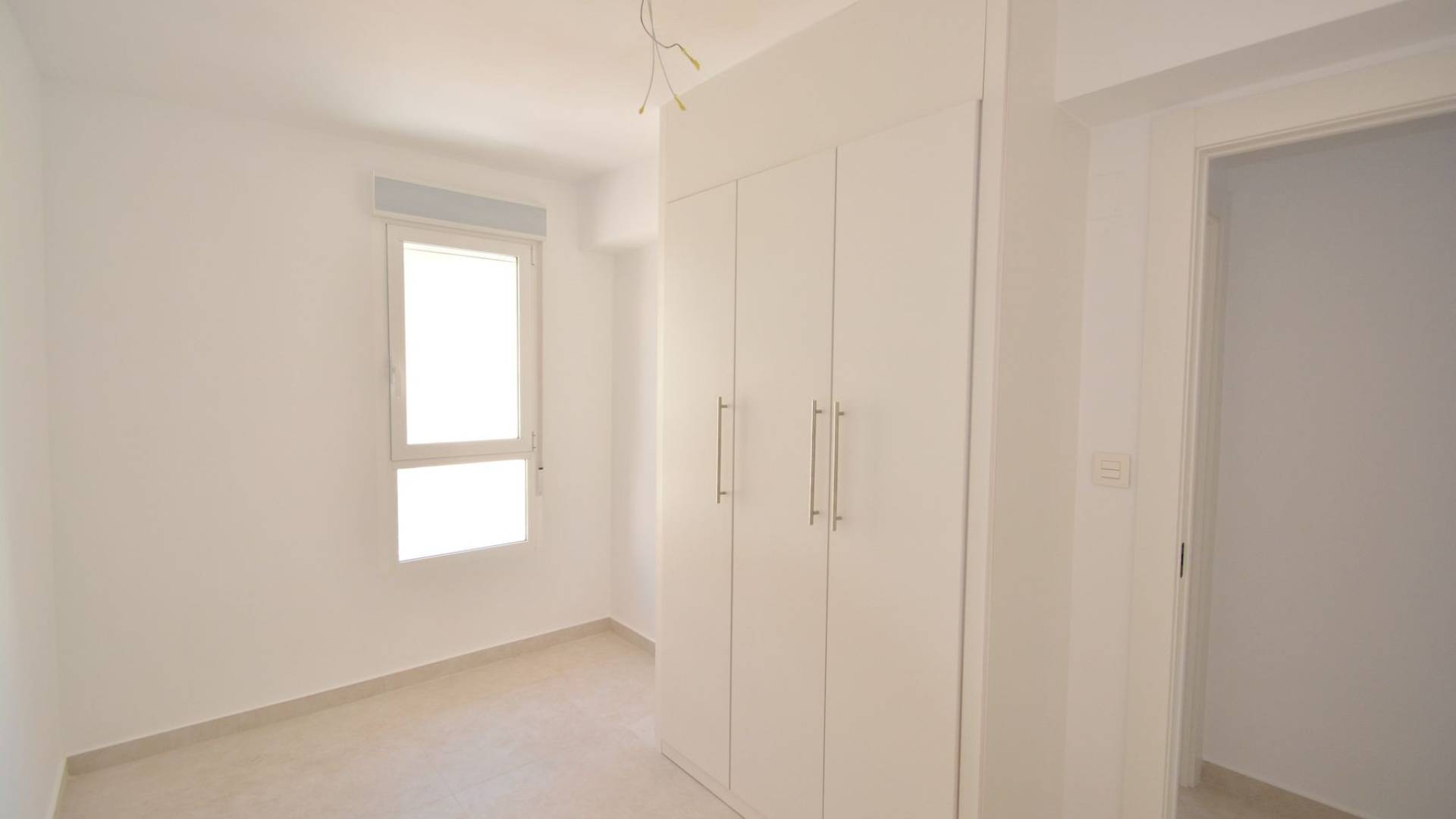 This beautifully renovated apartment in La Mata, Torrevieja, is ready to move in and offers an exceptional opportunity near the beach. Located on the top floor of a building from 1982, the apartment spans 85 m² of living space, including a 4 m² terrace with pleasant views of the surrounding area. The property now features an open modern kitchen fully equipped with appliances, seamlessly integrated into the living space. The apartment has been completely renovated with new plumbing, wiring, floors, windows, and smooth white walls. There are built-in wardrobes in two bedrooms, a fully renovated bathroom with all new sanitary fixtures, and air conditioning installed for year-round comfort. Sold as seen in the photos, the apartment is unfurnished, allowing you to personalize it to your taste. Natural light fills every room thanks to the exterior-facing layout. The building includes an elevator for convenience, and there is open-air parking available on a first-come, first-served basis. Best of all, the property is just 150 meters from the sandy shores of La Mata Beach, perfect for enjoying the Mediterranean lifestyle. Taxes and additional purchase costs are not included. Contact us today to arrange a viewing and experience this modern coastal retreat.