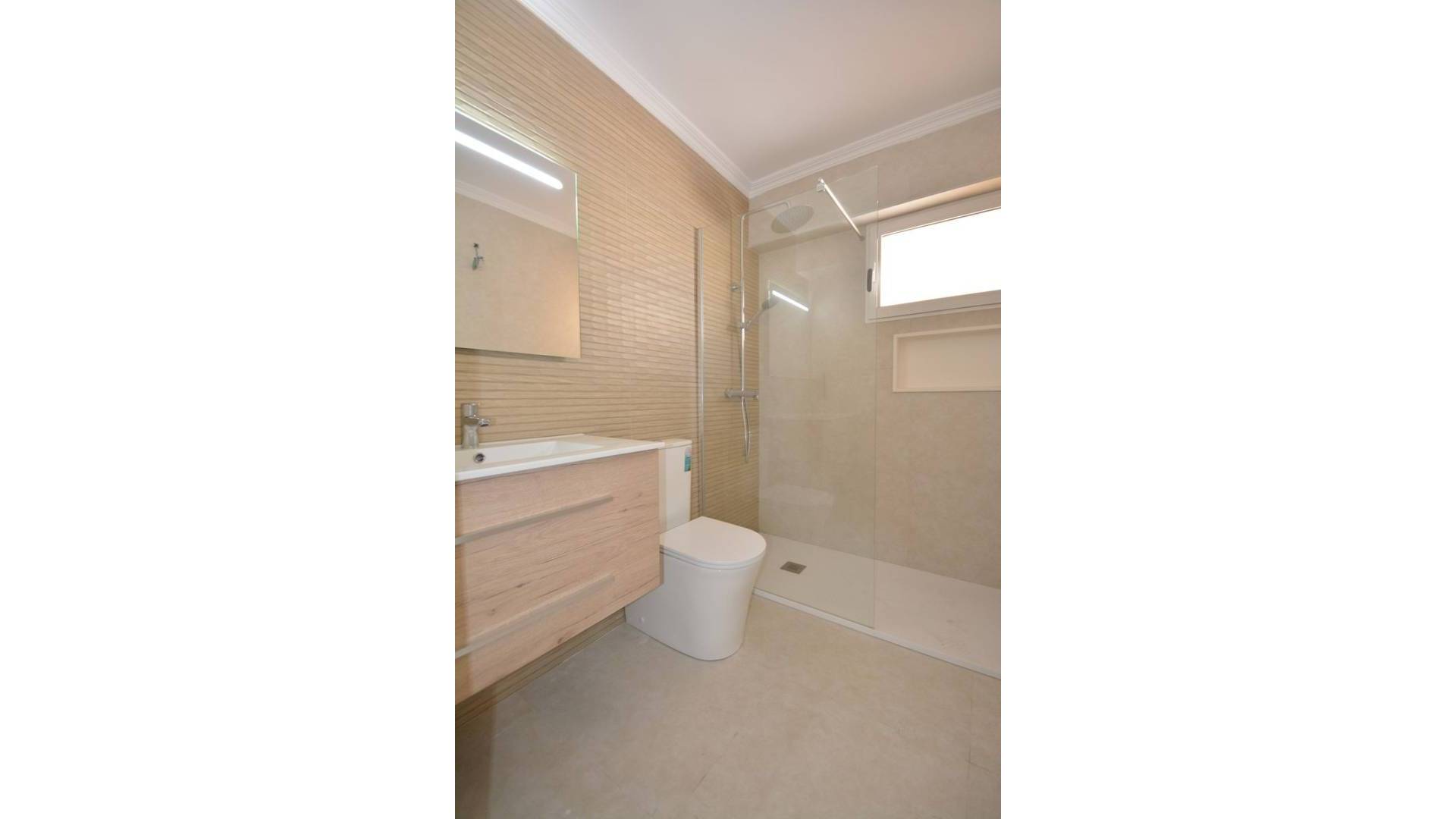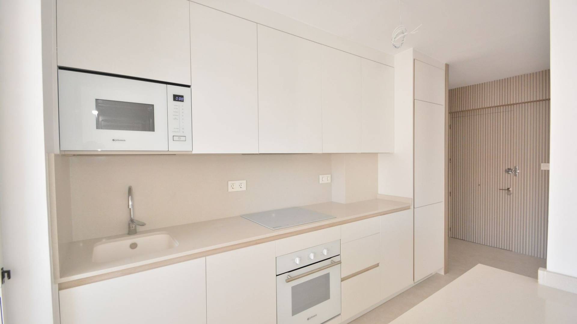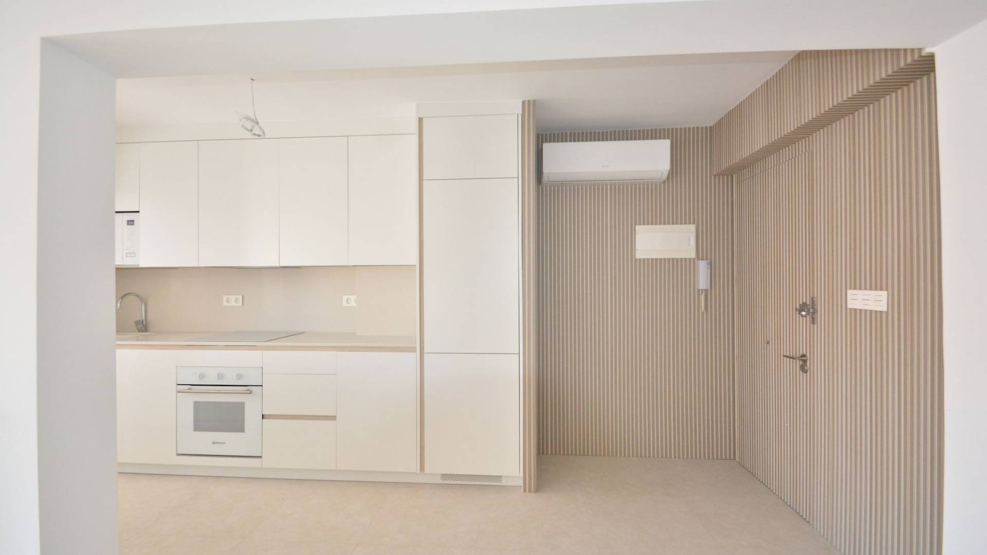 This beautifully renovated apartment in La Mata, Torrevieja, is ready to move in and offers an exceptional opportunity near the beach. Located on the top floor of a building from 1982, the apartment spans 85 m² of living space, including a 4 m² terrace with pleasant views of the surrounding area. The property now features an open modern kitchen fully equipped with appliances, seamlessly integrated into the living space. The apartment has been completely renovated with new plumbing, wiring, floors, windows, and smooth white walls. There are built-in wardrobes in two bedrooms, a fully renovated bathroom with all new sanitary fixtures, and air conditioning installed for year-round comfort. Sold as seen in the photos, the apartment is unfurnished, allowing you to personalize it to your taste. Natural light fills every room thanks to the exterior-facing layout. The building includes an elevator for convenience, and there is open-air parking available on a first-come, first-served basis. Best of all, the property is just 150 meters from the sandy shores of La Mata Beach, perfect for enjoying the Mediterranean lifestyle. Taxes and additional purchase costs are not included. Contact us today to arrange a viewing and experience this modern coastal retreat.