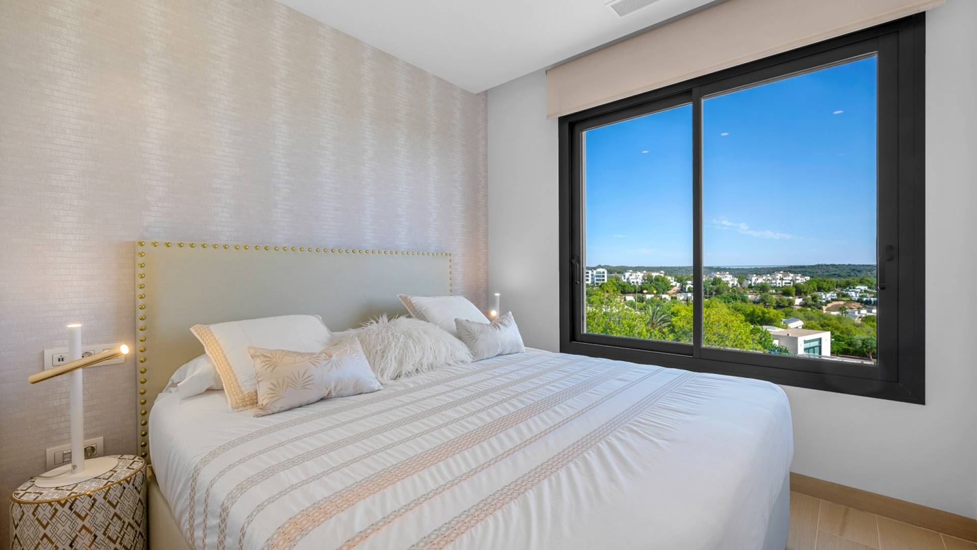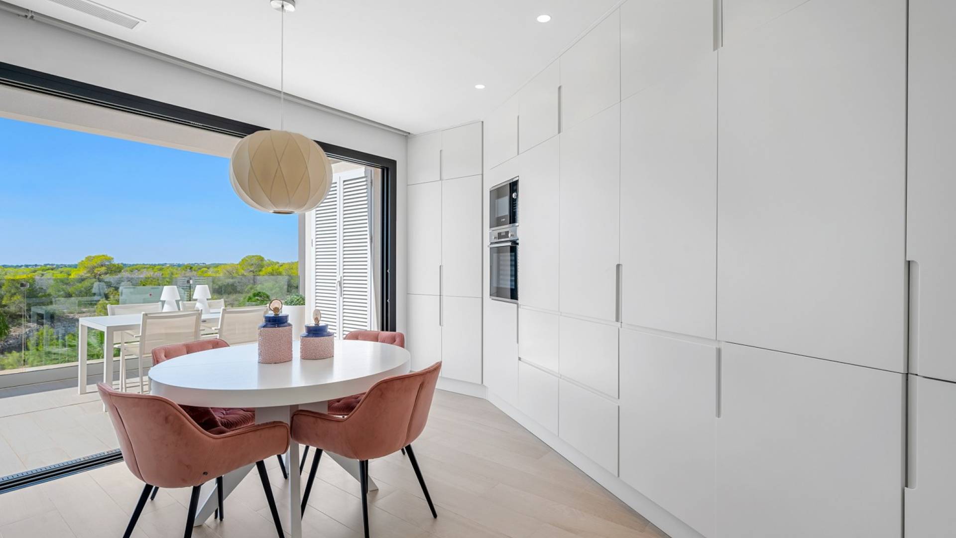 Discover this fantastic apartment located on the edge of the renowned, award-winning Las Colinas Golf Resort. Move in immediately: fully furnished and equipped with high-quality Bosch appliances, kitchenware, stylish décor, and even bed linen. The home features a sleek, modern design with an open-plan kitchen that can be closed off to disappear seamlessly, a unique feature you have to see in person. The bright living room is bathed in natural light thanks to floor-to-ceiling sliding doors, creating a perfect connection between indoor and outdoor living. Step onto the 20 m² south-facing terrace and enjoy endless sunshine and breathtaking views over the surrounding natural park. With nothing ever to be built in front, these panoramic views are yours to keep forever. The apartment offers two spacious double bedrooms, including a master suite with ensuite bathroom and built-in wardrobes. Imagine waking up to sweeping views of the resort right from your bed. All windows are fitted with electric blinds and curtains, so you can control sunlight while still enjoying the scenery. Both bathrooms are in pristine condition, fitted with underfloor heating for extra comfort during the cooler Spanish winter days, and fully equipped with modern fixtures. Additional highlights include: A large private underground parking space Two generous storage units Direct access to your front door via elevator Community poolAccess to the WOW Beach by Las Colinas beach club in Dehesa Campoamor Life at Las Colinas Golf Resort means exclusive access to first-class amenities: a luxurious clubhouse with panoramic views, a wellness centre, tennis courts, and three restaurants offering both international and local cuisine. Whether you’re looking for a permanent residence, a smart investment, or a private retreat for sunny getaways, this apartment offers the perfect blend of luxury, comfort, and exclusivity in one of Spain’s most sought-after resorts.