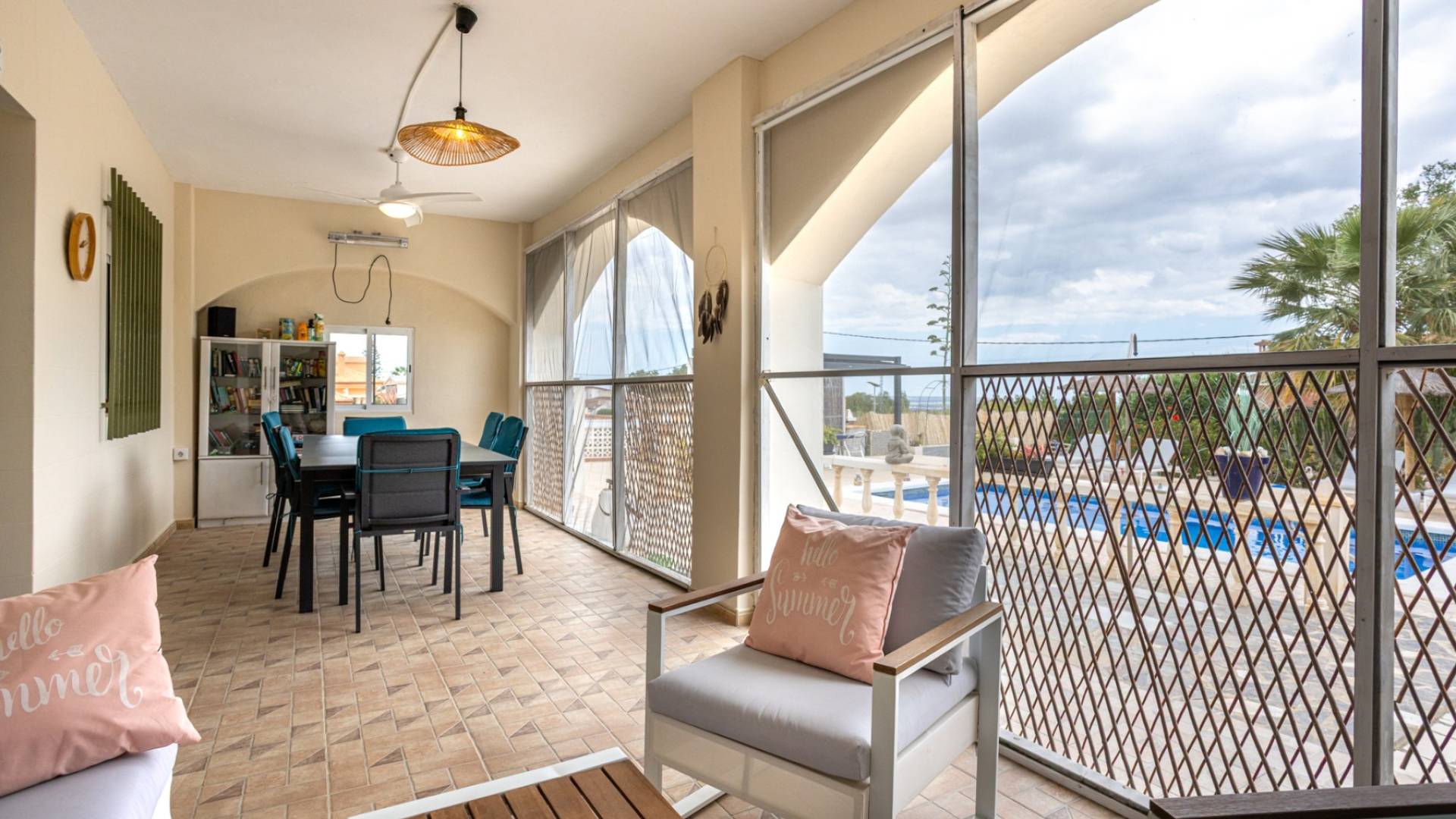 Looking for space, peace, nature and possibilities? Then this beautiful finca in Albatera is exactly what you're looking for. Located on a hillside in a small residential area, this fully fenced plot of 2000 m² includes not one, but two fully registered homes – ideal for dual living, rental, guest accommodation, or investment. ** Main house – Space, comfort and breathtaking views The main home (117 m²) offers: - 3 bedrooms (1 master with en-suite bathroom) - 1 additional bathroom - Open modern kitchen and spacious living area - Large storage room and extra shed - Covered veranda with 40–50 km panoramic views from Alicante to Guardamar! Enjoy the landscaped garden, lush greenery and illuminated 8x4 m pool with solar shower. South-east orientation for optimal sun. Includes: AC, ceiling fans, heaters, mosquito nets, mains water & electricity, and a new BIO septic tank. ** Second house – Ideal for rental or guests This 85 m² home has: - 2 bedrooms - 1 spacious bathroom - Open kitchen - Large living area with veranda - Own garden and access - Separate storage room ** Location: - Albatera center: 5 min - Elche: 15 min - Alicante & airport: 25 min - Beaches: 25 min - Murcia: 50 min ** Why this finca is unique: - 2 fully independent homes - 2000 m² fenced land - Exceptional views - Mature garden, privacy, peace - Pool, terraces, multiple options - Great for private use and/or rental (Airbnb) Interested? Request for more pictures. Rare opportunity for space, freedom, and potential close to everything.