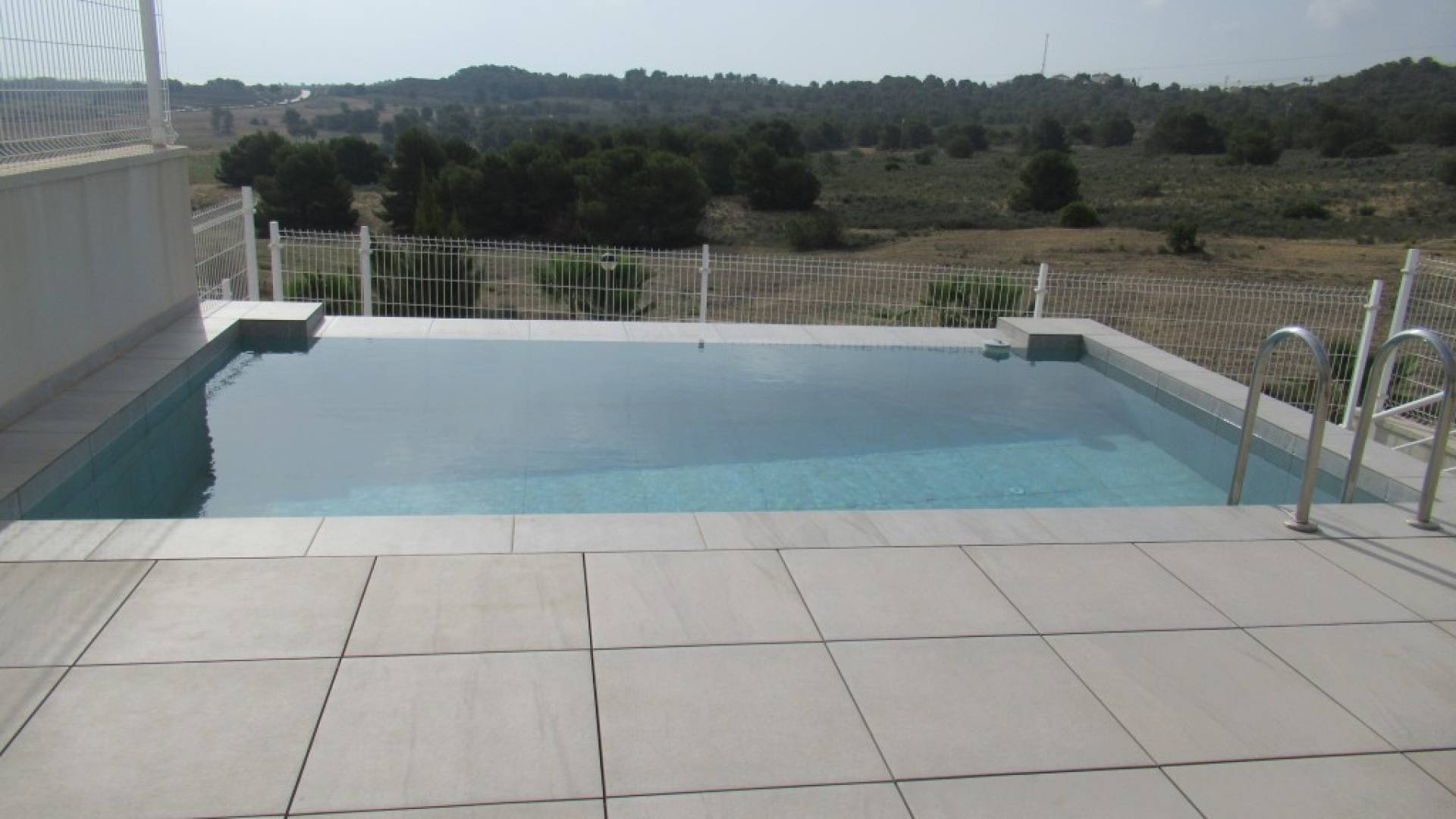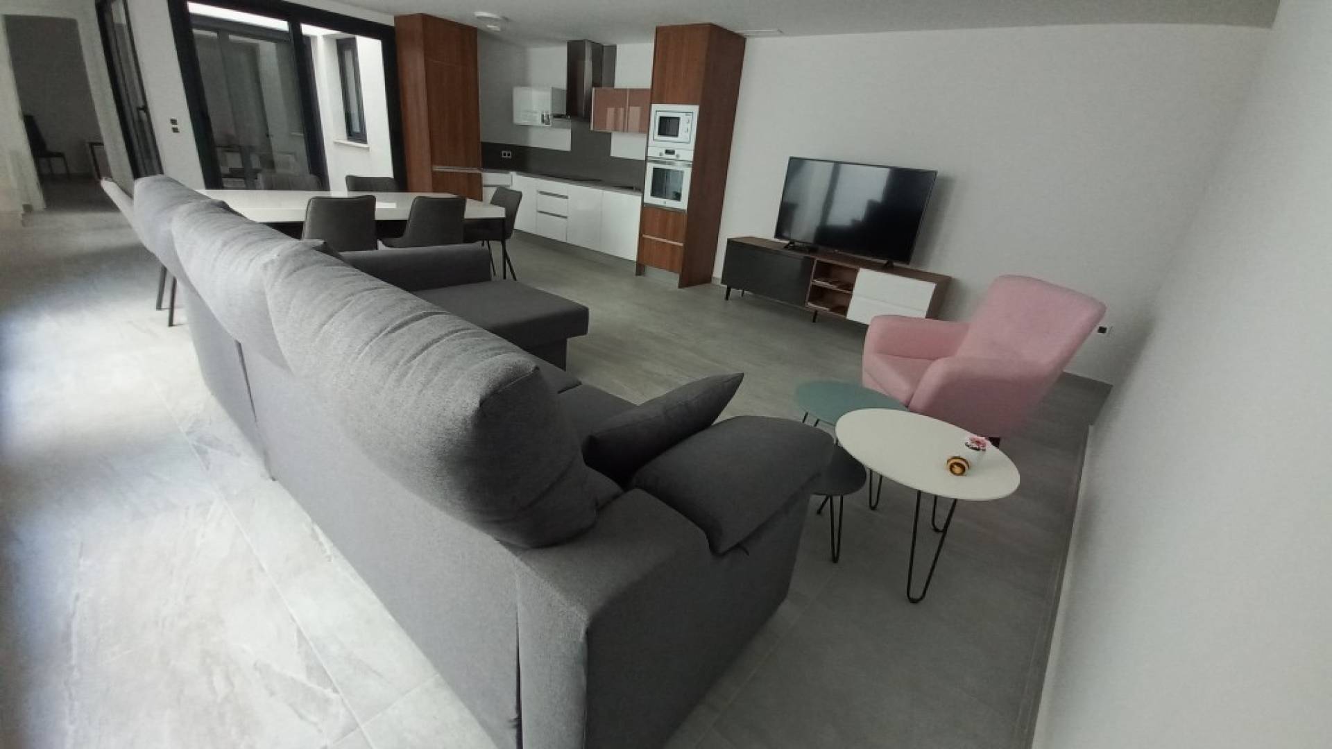 5 bedroom villa with guesthouse. Beautiful ready-to-live villa with completely separate guesthouse. This with beautiful open views over the salt lakes and the Mediterranean Sea. Spacious furnished villa with 3 bedrooms and fitted wardrobes, 2 bathrooms and separate guest toilet, fully equipped kitchen, private swimming pool, covered terrace, air conditioning, intercom, roof terrace. At the front of the house you have your own parking space which offers enough space for 2 cars. This parking lot is closed with an electric gate. The many glass areas and large sliding windows, which not only provide a lot of natural light, make it seem as if the indoor and outdoor space form one whole. In the building you will find a fully autonomous guesthouse with separate entrance, a fully equipped kitchen, a living room and dining room, 2 spacious bedrooms with fitted wardrobes and both with an en-suite bathroom and a storage/laundry room These villas are located in San Miguel de Salinas. Located 10 minutes drive from the beaches of Punta Prima, Playa Flamenca, Cabo Roig and Campoamor. Close to the golf clubs of Las Ramblas Golf, Villamartin Golf, Las Colinas Golf & Country Club and Lomas De Campoamor Golf as well as close to supermarkets, restaurants and the shopping center of La Zenia Boulevard.