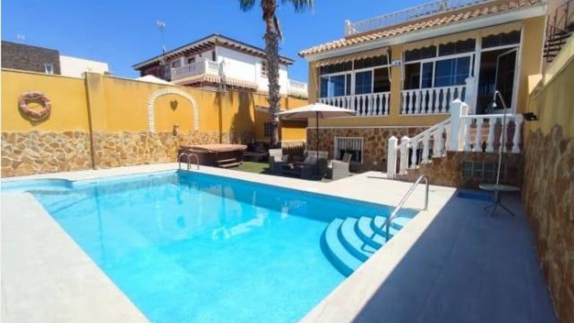 Discover your new home in Aguas Nuevas! This stunning detached house/villa, set on a 400m² plot, offers everything you need to live in luxury and comfort. With a constructed area of 350m² spread over three floors, this home stands out for its design and functionality. On the ground floor, you will find a spacious living room perfect for family gatherings, a fully equipped independent kitchen, two cosy bedrooms and two full bathrooms. In addition, it has two large terraces, one of them overlooking the private pool and jacuzzi, ideal for enjoying the Mediterranean climate. The first floor houses a 30m² master bedroom with a dressing room and access to a large terrace, providing an intimate and relaxing space. The private solarium offers unobstructed views, perfect for quiet moments. Floor -1 is a true oasis of entertainment with a 60m² bar equipped with a bar, billiards, table football and a film projector. In addition, this floor has a second independent home with three bedrooms and two full bathrooms, ideal for guests or family. The house is fully furnished and equipped with high quality materials, including wooden floors and an elegant marble staircase. Ducted air conditioning and two pellet fireplaces ensure comfort at any time of the year. Located close to all local amenities and just 2 km from La Mata beach, this property is perfect for those looking for a balance between tranquility and accessibility. Don't miss the opportunity to live in this real estate gem. Contact us for more information and to schedule a visit!