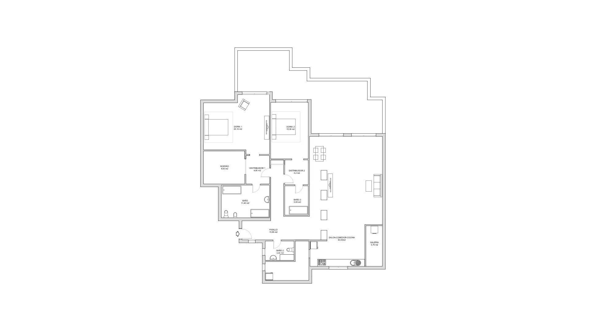 Discover this fantastic top floor apartment for sale in Lomas de Campoamor Golf. It is a really privileged location, as this massive ( 196 sqm) apartment enjoys some really amazing views.With a whopping habitable surface of 196 sqm and offering 2 bedrooms / 2 bathrooms, you can already imagine the sheer volume of the different spaces. It is also possible to provide a third bedroom.The entrance hall with guest toilet set the tone. A roomy feeling, leading to a bright living room. This area has an adjacent open plan kitchen. On both sides of the kitchen there are utility rooms. One used for laundry and another is a pantry room.From the window in the kitchen you even have distant sea views.But that is nothing compared to the views from the terrace. This outside space of 55 sqm really offers you to live al fresco.Partly covered, partly with sunscreens, much needed as it has a South-West orientation.But the view! Did we already mention that it is AMAZING? Really, this is not exaggerated it is truly a fantastic view. Overlooking the fairways of Campoamor Golf, the pine trees of Las Ramblas golf and great distant views to the Mediterranean Sea and Mar Menor.Further, this property offers 2 ample bedrooms. The master bedroom has a ensuite walking dressing and bathroom with shower and multi-jet bath.The secondary bedroom has a separate hall with built-in closets and ensuite bathroom with large shower.It is a unique property, in search for a new unique owner.