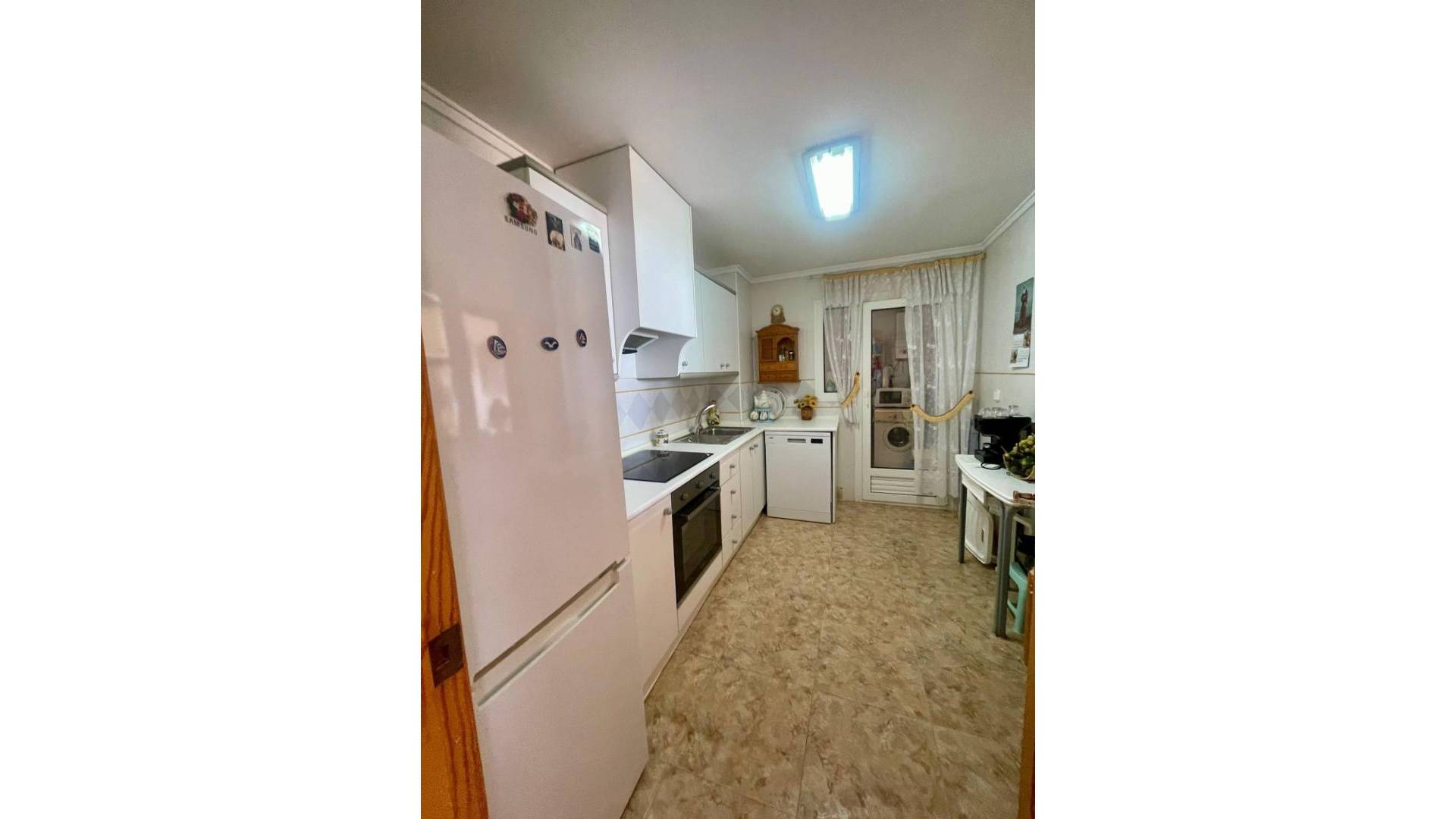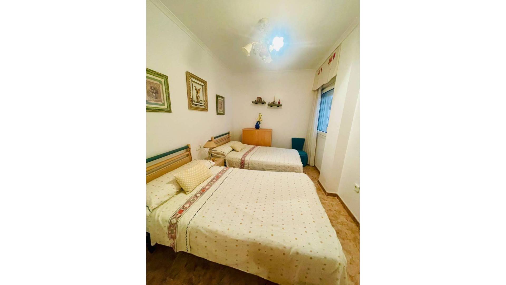 This spectacular first floor apartment is located on the first line of La Playa de La Mata, with impressive frontal views of the sea and the beach. It has three bedrooms, two bathrooms, living room and separate kitchen, offering a cozy and functional environment. In addition, it has a large patio of 25 m2 for individual use and a large terrace/balcony of 18 m2. The garage space is included in the price. Located in a central area, this apartment is surrounded by all the necessary services for a comfortable and practical life. Built in 1992, this apartment on the first floor is exterior and has an elevator. Its east orientation provides pleasant natural light, and also includes air conditioning for greater comfort. Don't miss this opportunity to live in front of the sea in a unique place!