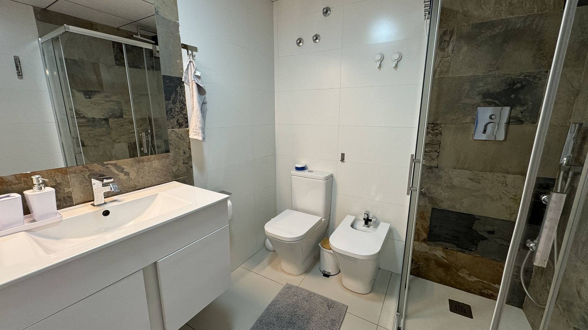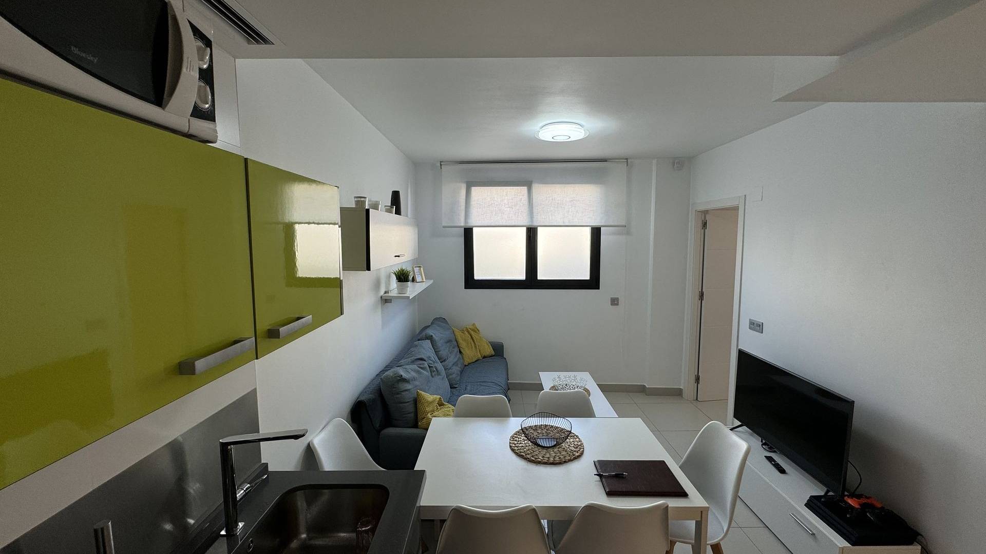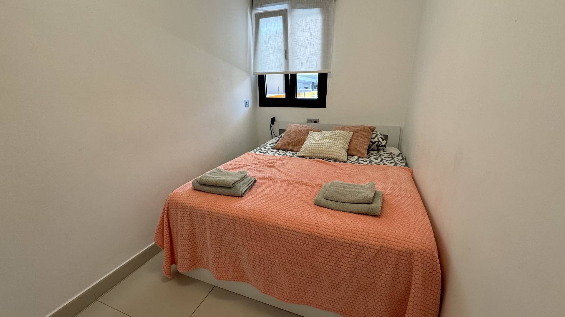 APARTMENT IN TORREVIEJA. Come visit a beautiful two-bedroom ground-floor apartment in the “Alegria 1” residence in Torrevieja, Spain. It is conveniently located just five minutes from the beaches of the Mediterranean, in the city centre and close to all amenities. The building has an underground parking space as well as a rich infrastructure. The ground floor has a comfortable recreation area with a large swimming pool, sauna and playground. You can also enjoy the sun on the communal roof terrace. It has an open kitchen with a living area, fitted wardrobes and a swimming pool open all year round. The common areas include a communal solarium with a BBQ, a relaxation area and a children's playground. The building is just 700 meters from the city beach and close to all services (supermarkets, town hall, bus station, health centre). Golf courses are only a few kilometres away, and sandy beaches with natural pine forests are only 2 km away. Torrevieja is a quiet city; all services, such as restaurants, bars, shops, banks, leisure areas, etc., are available all year round. Every Friday, a market is organised in the city, and many people buy local products. Torrevieja has a large marina with activities all year round, a large sports centre with paddle tennis, tennis, and football, and a large heated swimming pool open all year round. There is also a library with free Wi-Fi and computers. Torrevieja is only 45 km from Alicante-Elche Airport (El Altet), from where, due to the demand for tourists on the Costa Blanca, many flights depart daily with connections to the main European cities.