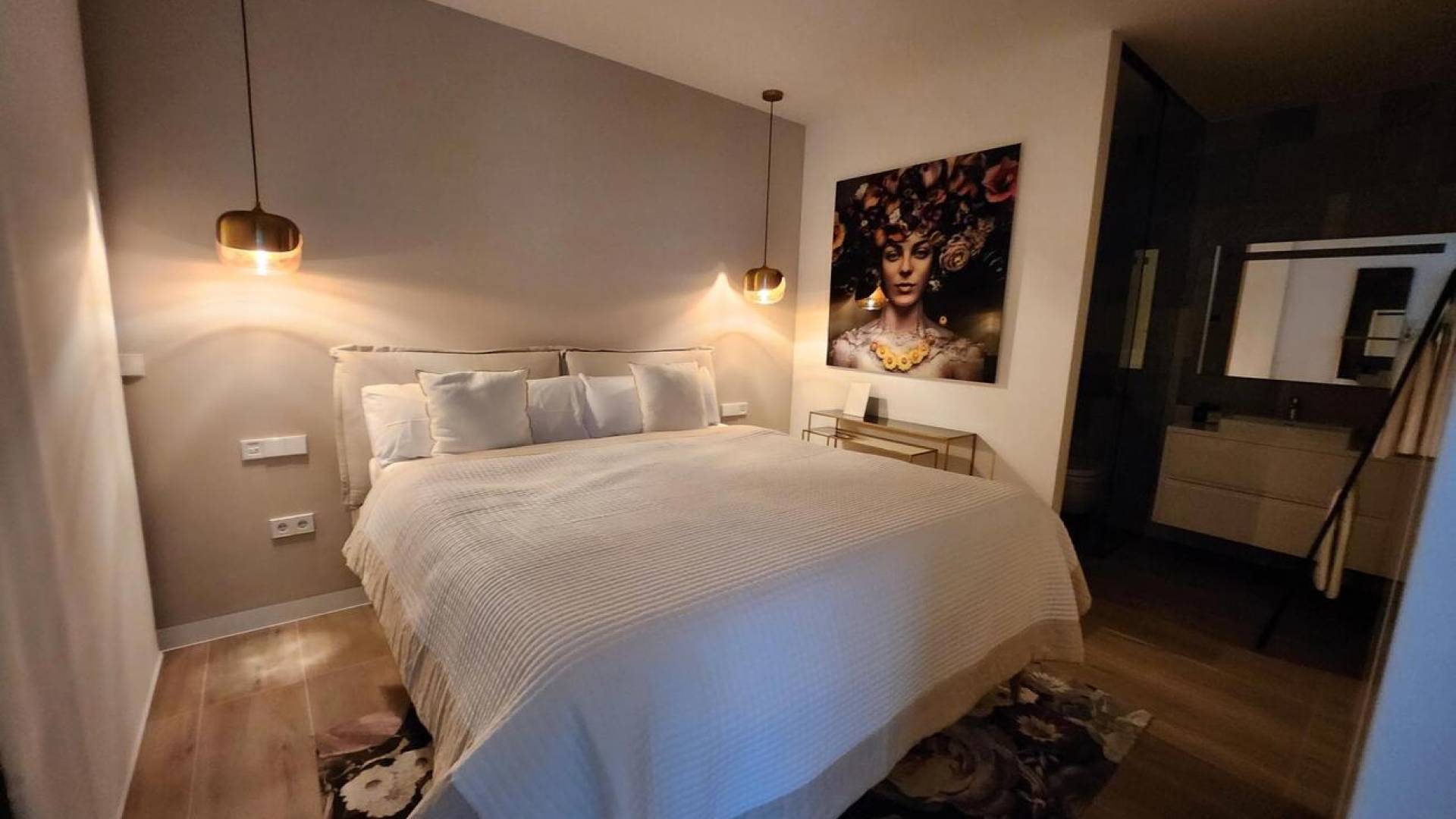 Dit gloednieuwe, luxueus ingerichte penthouse met spectaculair uitzicht is gelegen op het prestigieuze Las Colinas golfresort. De drie ingerichte slaapkamers, ruimtelijke en stijlvolle woonkamer, terras en solarium in combinatie met een prachtige mediterrane landschap en beschutte ligging maken dit droomappartement tot een uitstekende keuze als woon of buitenverblijf in Spanje. Door te kiezen voor lichte kleuren en een elegante inrichting ademen alle 3 slaapkamers (waaronder 1 met een eigen badkamer) serene rust en comfort uit. De woonkamer met open keuken, barhoek en ruim terras (23m2) biedt een magnifieke uitkijk over het golfresort. De modern compleet uitgeruste keuken met inbouwkasten beschikt over een vaatwasser met comfortlift-technologie, waterfiltersysteem, inductiekookplaat, wijnkoeler enz. In elke kamer zijn er elektrische binnen rolluiken geïnstalleerd voor meer sfeer en privacy. Een optimaal binnenklimaat is gegarandeerd d.m.v. een energie-efficiënte warmtepomp-luchtbehandelingssysteemcombo en kan voor elke kamer apart geregeld worden. De woning heeft ondergronds een private parkeerplaats waar desgewenst nog een laadpaal geïnstalleerd kan worden, een ruime berging en prachtig gemeenschappelijk zwembad. Het Spaanse vakantiegevoel kan ten allen tijde ervaren worden op het royale dakterras van liefst 100 m2! met een buitenkeuken, pergola, jacuzzi en 360 graden onverhinderd zicht over het natuurlijke landschap en de Middellandse zee. De buitenkeuken (3x3,6m2) beschikt over veel kastruimte, een granieten werkblad, inductieplaat, vaatwasser en koelkast. Het schuifdak van de aluminium pergola (5x3m2) is elektrisch bedienbaar en creert een ideale schaduwplek. Om uw verblijf helemaal te vervolledigen kunt u het ultieme gevoel van het genieten in uw eigen jacuzzi ervaren: 5 personen, 102 hydrojets, ledverlichting en speakers!Hoe heerlijk zou het wel niet zijn om de dag te beginnen met een verse kop koffie aan de bar of te eindigen met een heerlijk cocktail bij zonsondergang op uw eigen dakterras in een mediterrane omgeving!