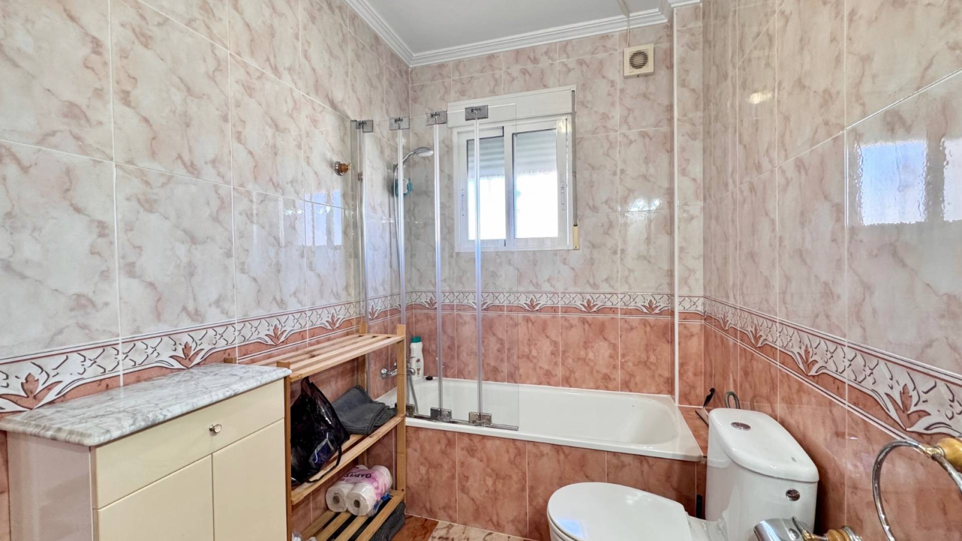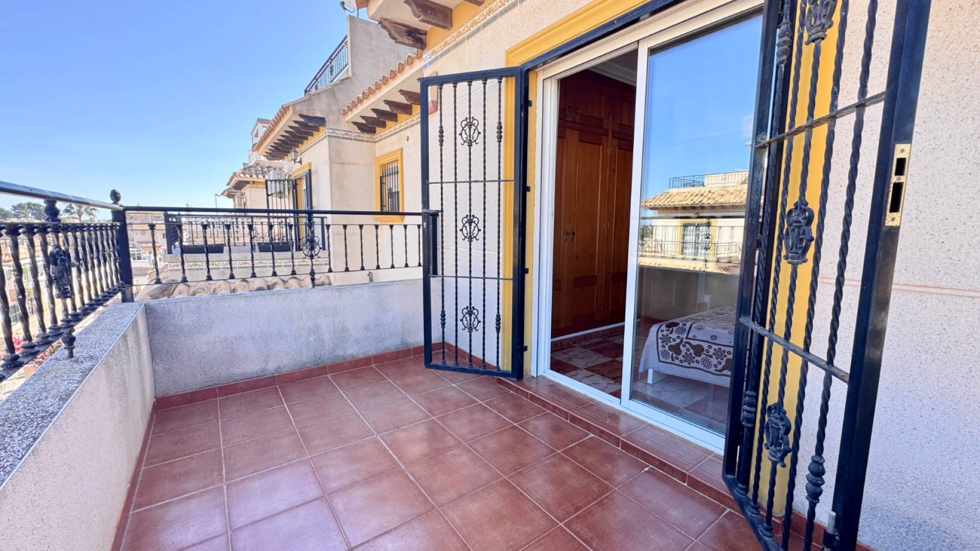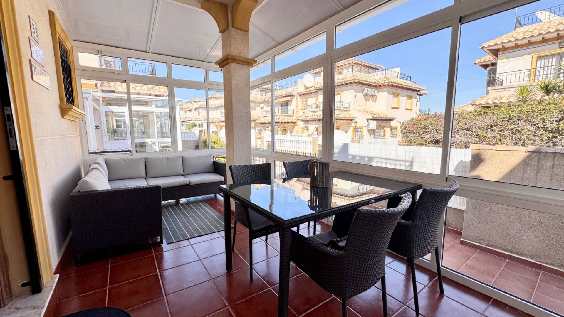Located in the sought-after area between La Fuente, Las Filipinas, and Villamartín Golf Course, within the PINADA GOLF II residential complex, this two-sided, northwest-facing house enjoys a peaceful and impeccably maintained setting, complete with a beautiful communal swimming pool. Just a 10-minute walk from Villamartín Plaza and a few minutes from the prestigious EL LIMONAR INTERNATIONAL SCHOOL (ELIS), the location is ideal for both a primary residence and a vacation home. The beaches of La Zenia and Campoamor are less than a 10-minute drive away. The house features a beautiful, nearly new, bright and spacious veranda, perfect for enjoying natural light year-round. Outside, a private driveway provides parking for up to two vehicles and there is also a storage area at the entrance. On the ground floor: A spacious and adaptable living room, with the possibility of easily creating a bedroom or an office. A semi-equipped kitchen. A toilet. Air conditioning. On the first floor: Two bedrooms with reversible air conditioning. Large built-in wardrobes. A full bathroom with bathtub/shower, toilet, bidet and sink. On the second floor: A pleasant solarium offering a magnificent sea view, perfect for enjoying the sun and the Mediterranean climate. A versatile house, ideally located and ready to be enjoyed immediately. Don't hesitate to visit!