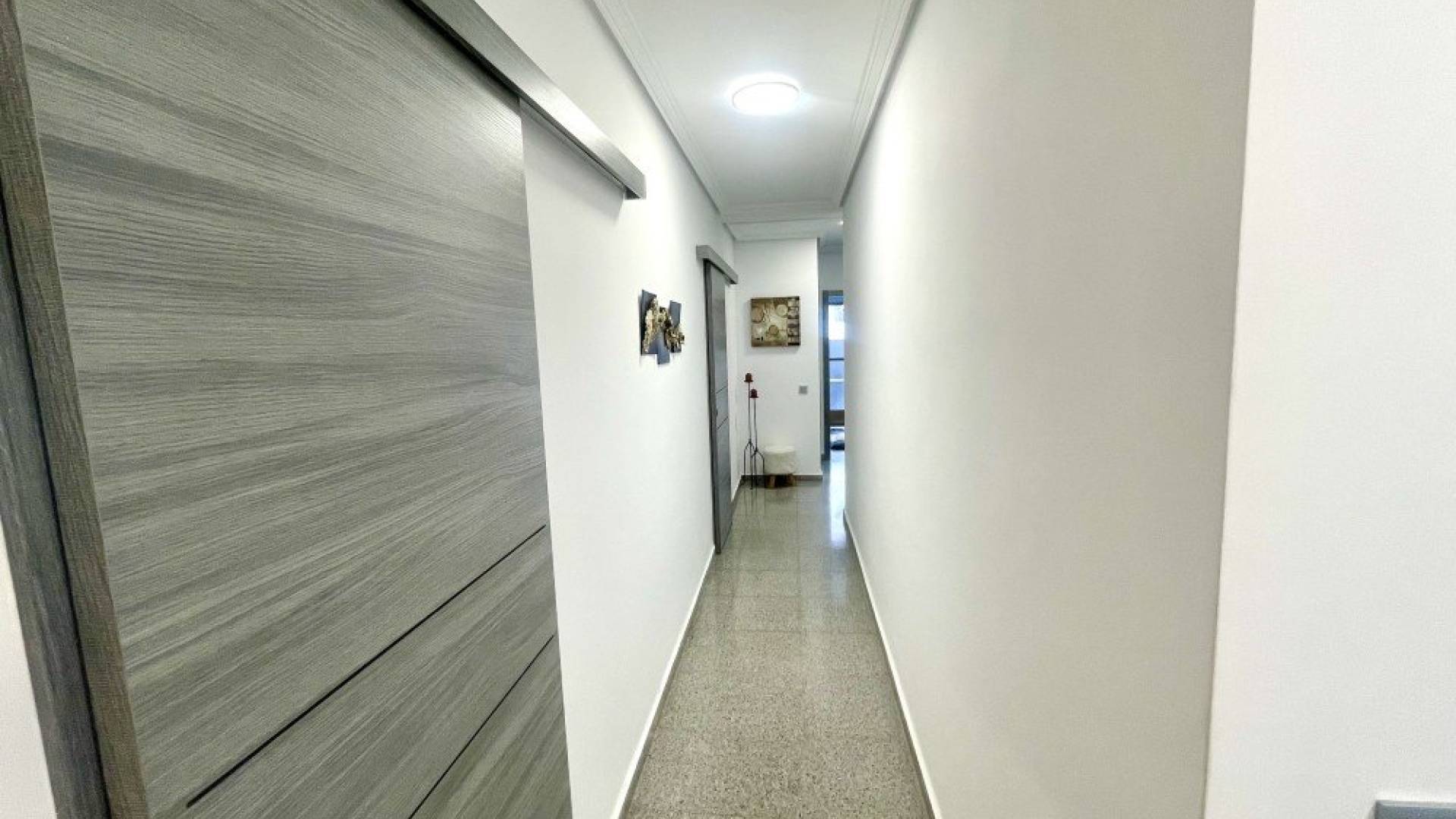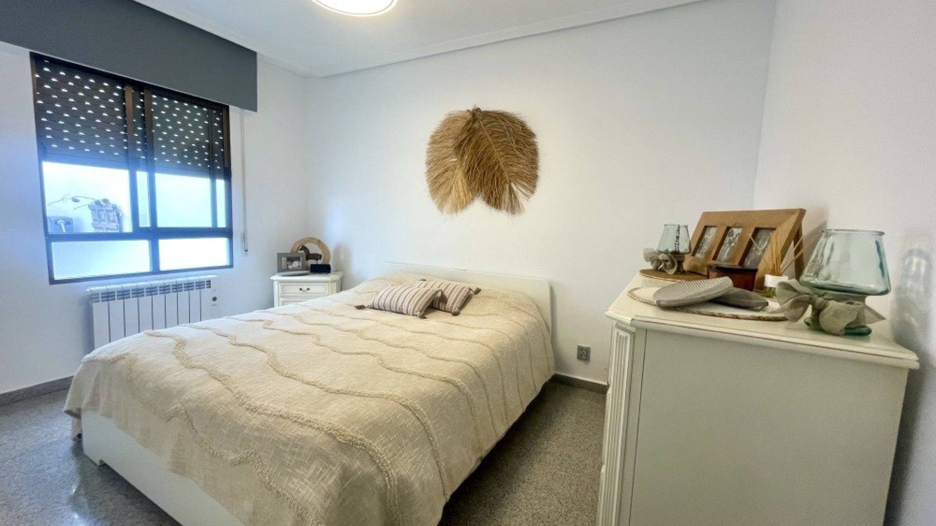 wp:paragraph We are delighted to present this beautifully refurbished ground-floor apartment located in Torremendo, Orihuela, a charming and peaceful village with local shops and few minutes walking from the Public Pool. The property is situated on the ground floor, with no need for a lift, and has been fully renovated, ready to move into. It offers bright and spacious living areas, including a large and luminous living room, a dedicated dining area with a generous table and chairs, and a large window providing access to a balcony, perfect for enjoying daily meals. The separate kitchen is brand new and fully equipped, and benefits from a spacious utility/laundry room, ideal for storage as well as household tasks. The apartment features two large bedrooms, both with built-in wardrobes, a modern fully fitted bathroom, and an additional room currently used as an office, which can easily be adapted to other uses. There is also a large walk-in dressing room with a big window leading to a lovely terrace, ideal for outdoor dining with friends and family while enjoying the tranquillity of the area. From this space, there is access to a large independent studio, offering a wide range of possibilities: a gym, professional workspace (beauty salon, yoga studio, hairdresser, etc.), or it could be renovated and converted into a separate guest accommodation. All rooms are equipped with ceiling fans and electric radiators. The living room and master bedroom have air conditioning, while the bathroom and office are fitted with heaters. The property is sold furnished, excluding personal belongings and some appliances such as the washing machine and tumble dryer. A municipal swimming pool is located just a few metres from the building, and there is ample on-street parking available nearby. This is a unique opportunity to purchase a property where no work is required — simply bring your suitcases and start enjoying your new home. /wp:paragraph