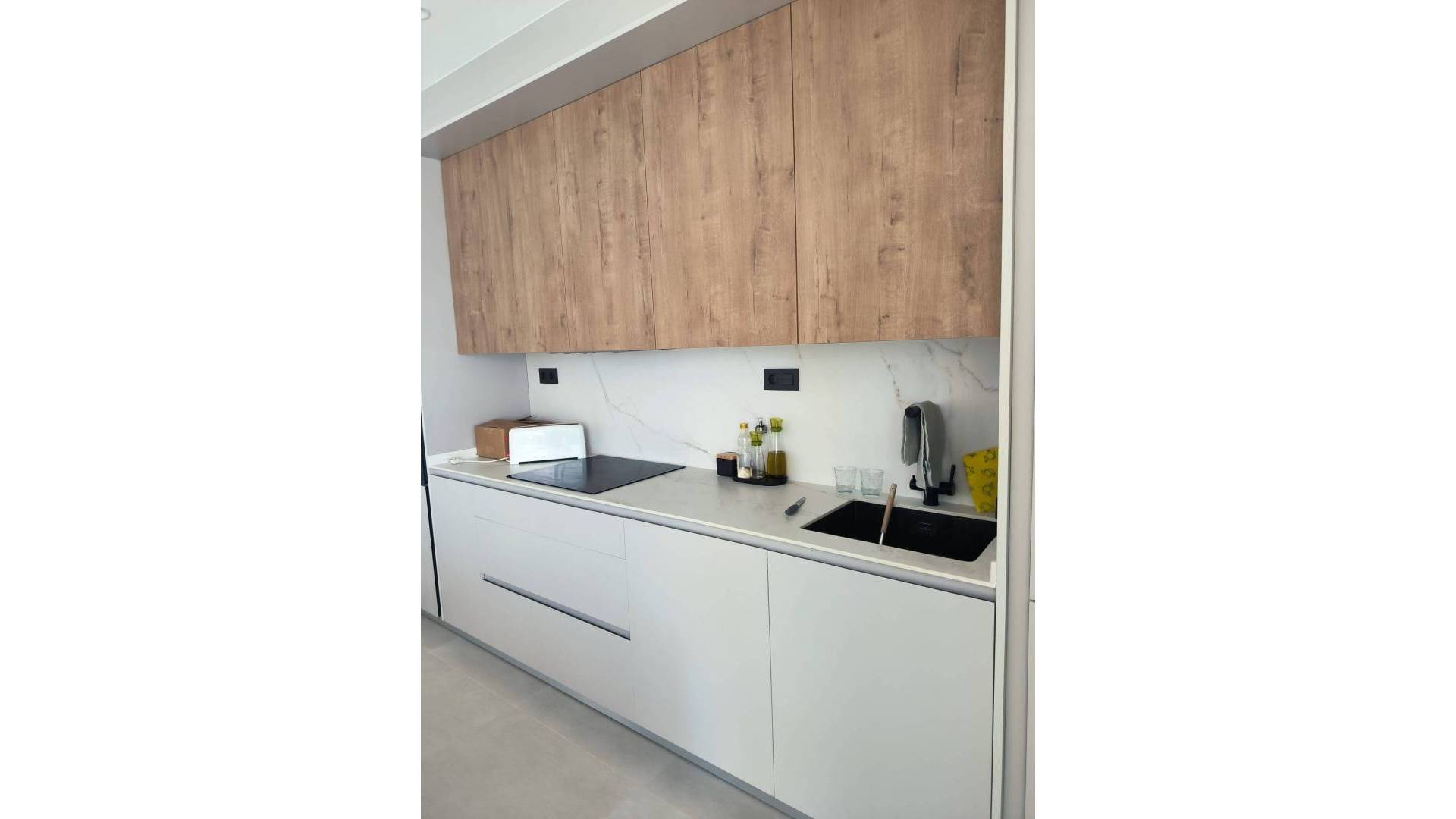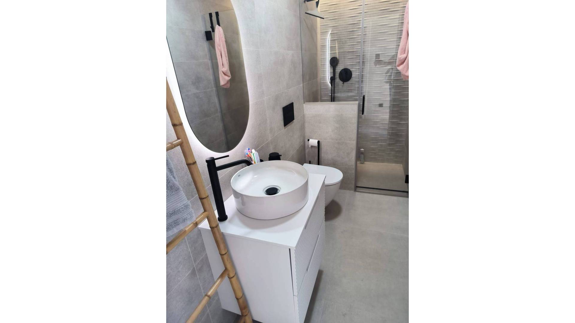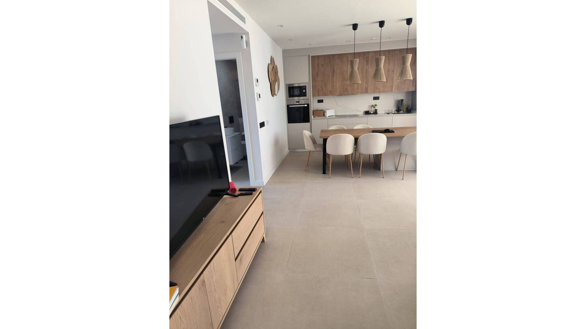 Bungalow in Pilar de la Horadada, El Mojón area, 73 m² surface, 300 m² from the beach, 3 bedrooms, 2 bathrooms, new property, equipped kitchen, PVC interior carpentry, southeast orientation, marble floor, double-glazed exterior carpentry. Extras: water, central air conditioning, built-in wardrobes, garden, bright, light, furniture, patio, pergola, communal pool, private pool, TV, high ceilings, terrace, buses, trees, shopping centers, medical centers, schools, coast, golf, hospitals, parks, supermarkets, children's areas